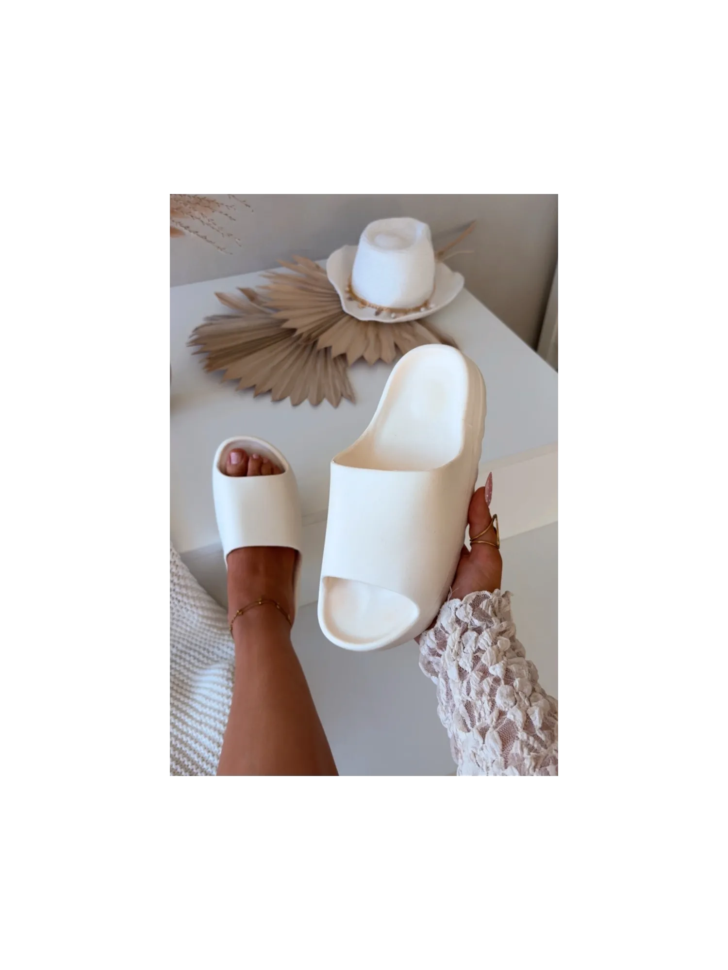 Practical and stylish women's slides made from durable rubber material are the perfect solution for summer days. The lightweight design and comfortable platform provide comfort and stability while walking. Slides are great for relaxing by the pool, in the garden, on the terrace, or during summer trips. Please refer to the size chart when choosing your size. When choosing a size, please refer to the size chart.
