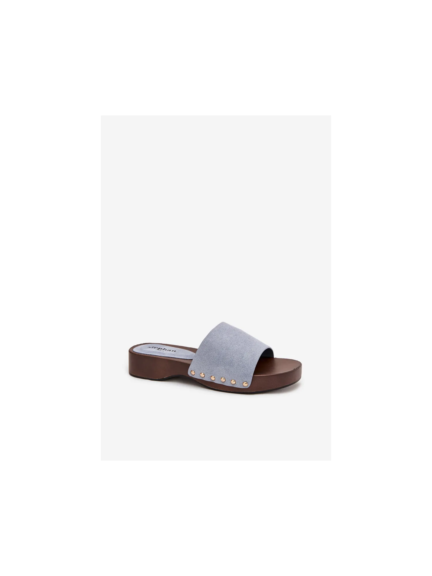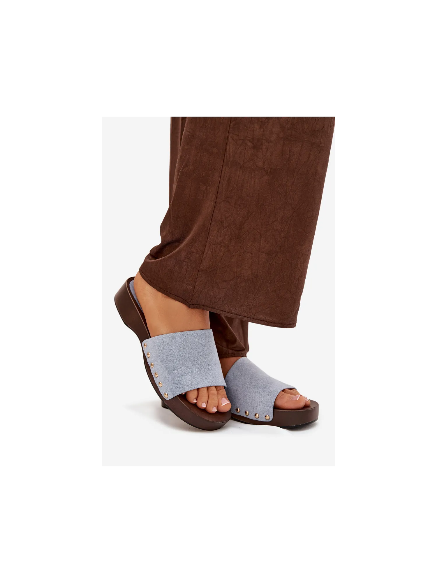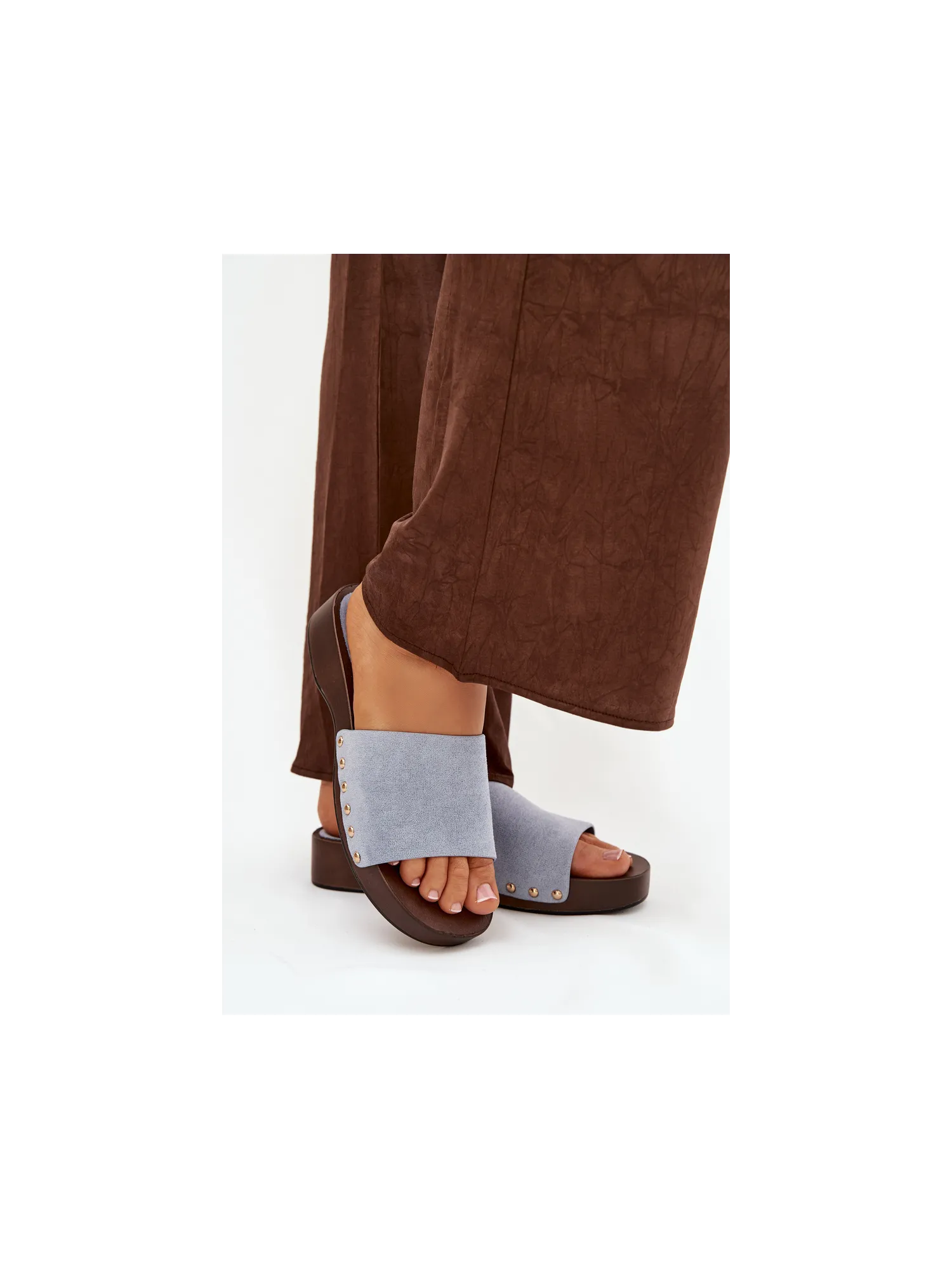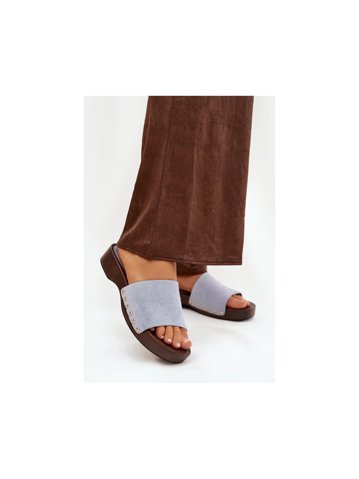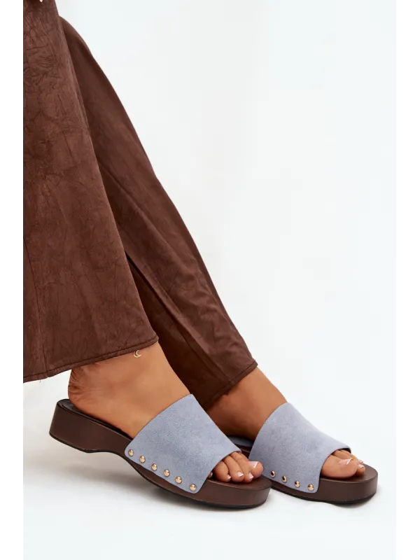 Moteriškos šlepetės su auksiniais kniedėmis, mėlynos Ferinna