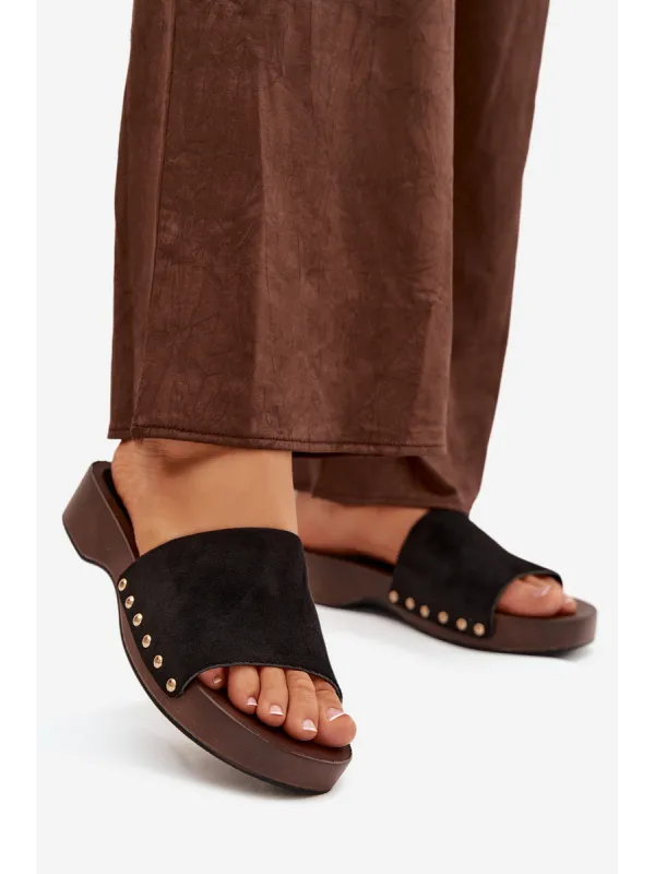 Moteriškos šlepetės su auksiniais kniedėmis, juodos Ferinna