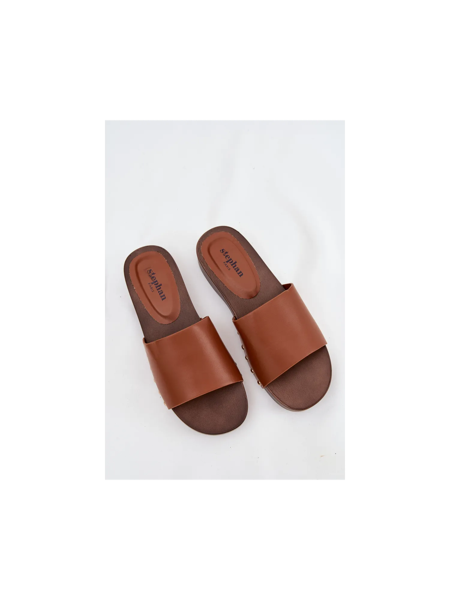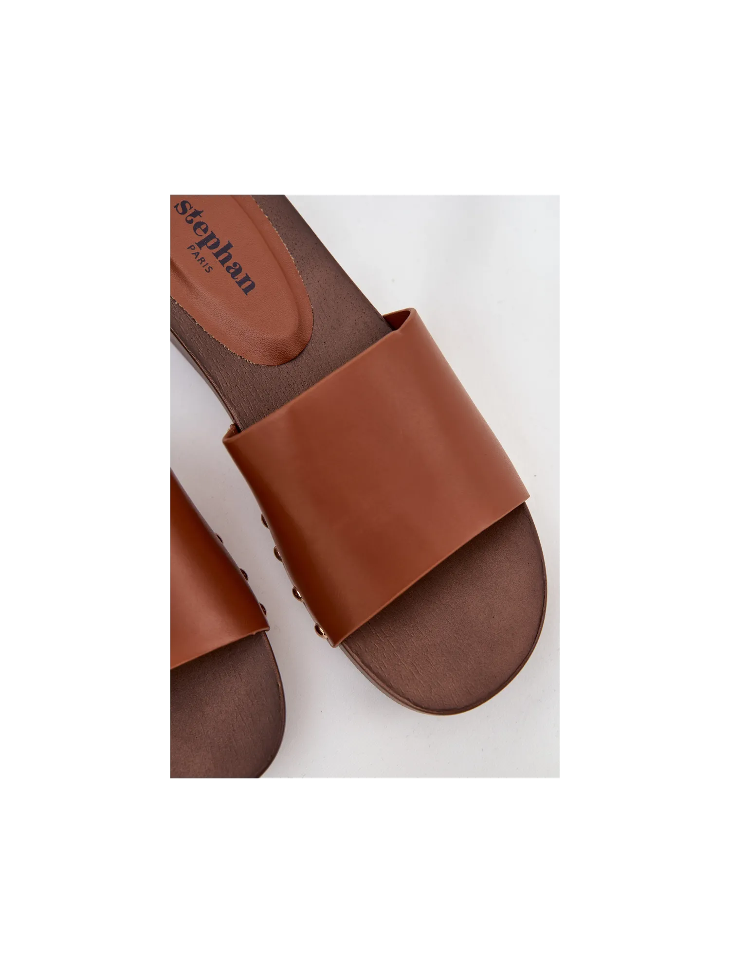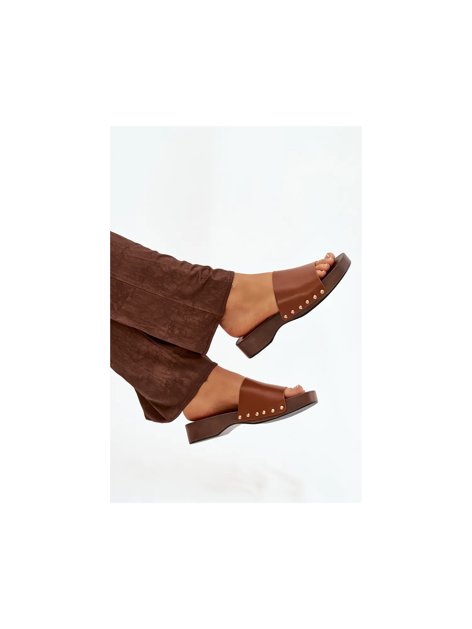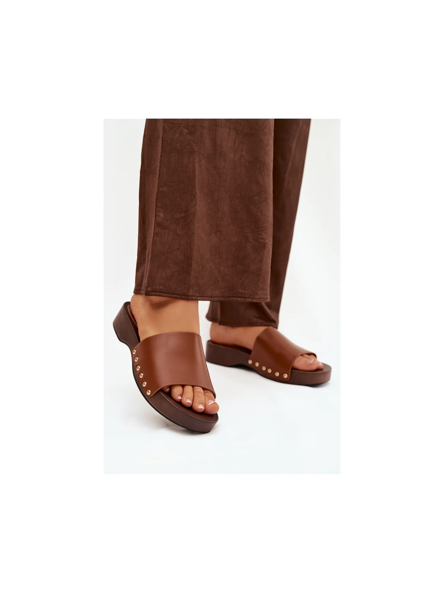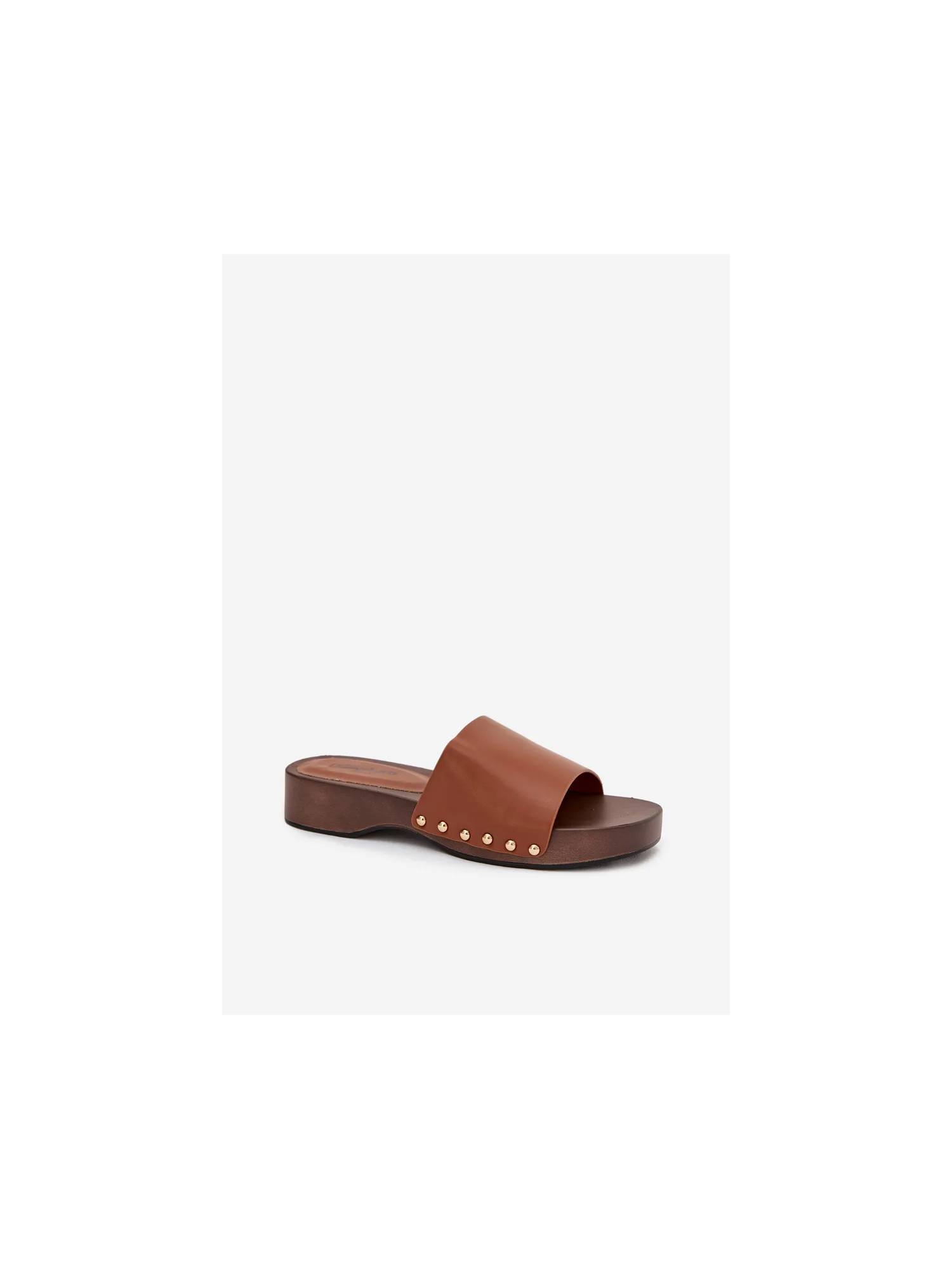 Stylish women's slippers made from eco leather are a comfortable and fashionable option for everyday wear. The delicate platform provides comfort and slightly elevates the silhouette, while ensuring stability while walking. The side gold studs add a subtle accent. The model is perfect for daily stylings – with jeans, dresses, or summer sets. An ideal choice for women who value comfort combined with a trendy detail. When choosing the size, please refer to the size chart. When choosing a size, please refer to the size chart.