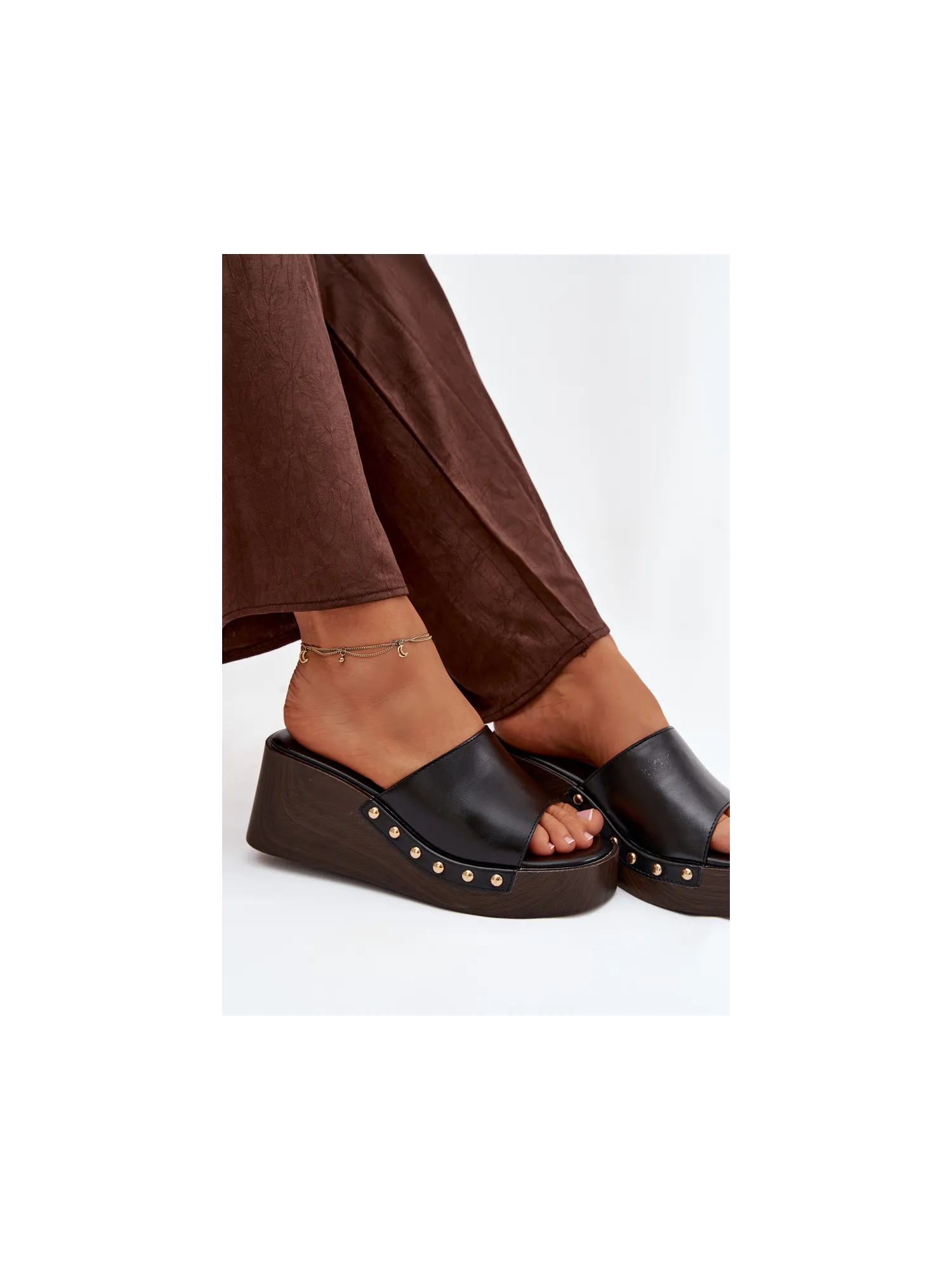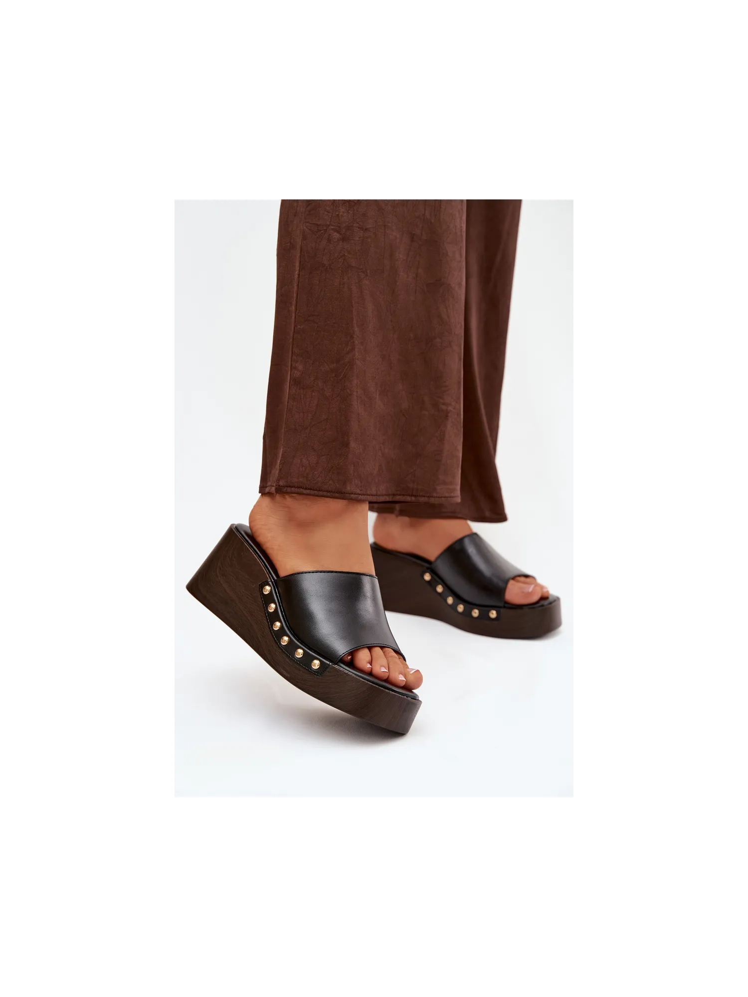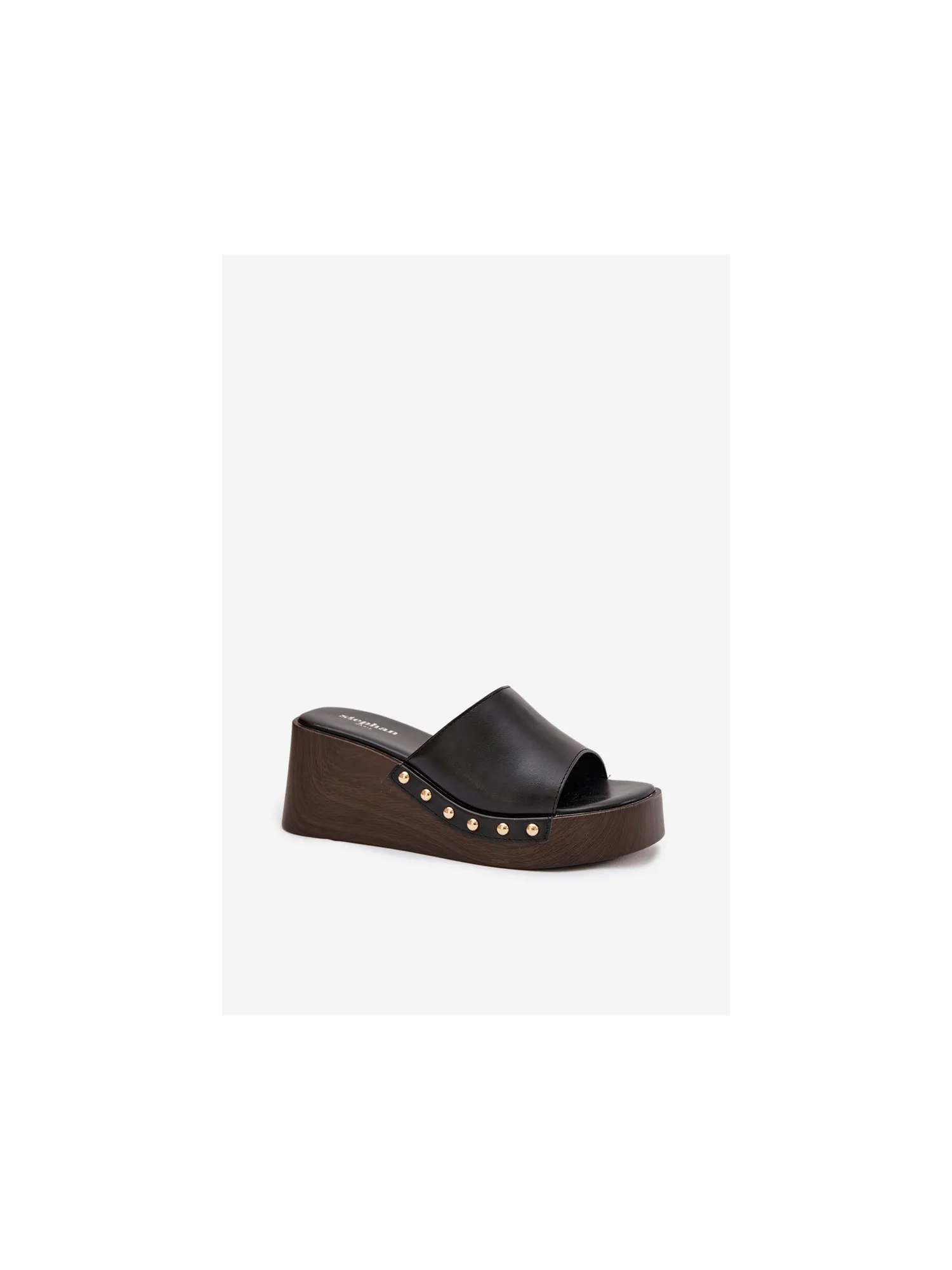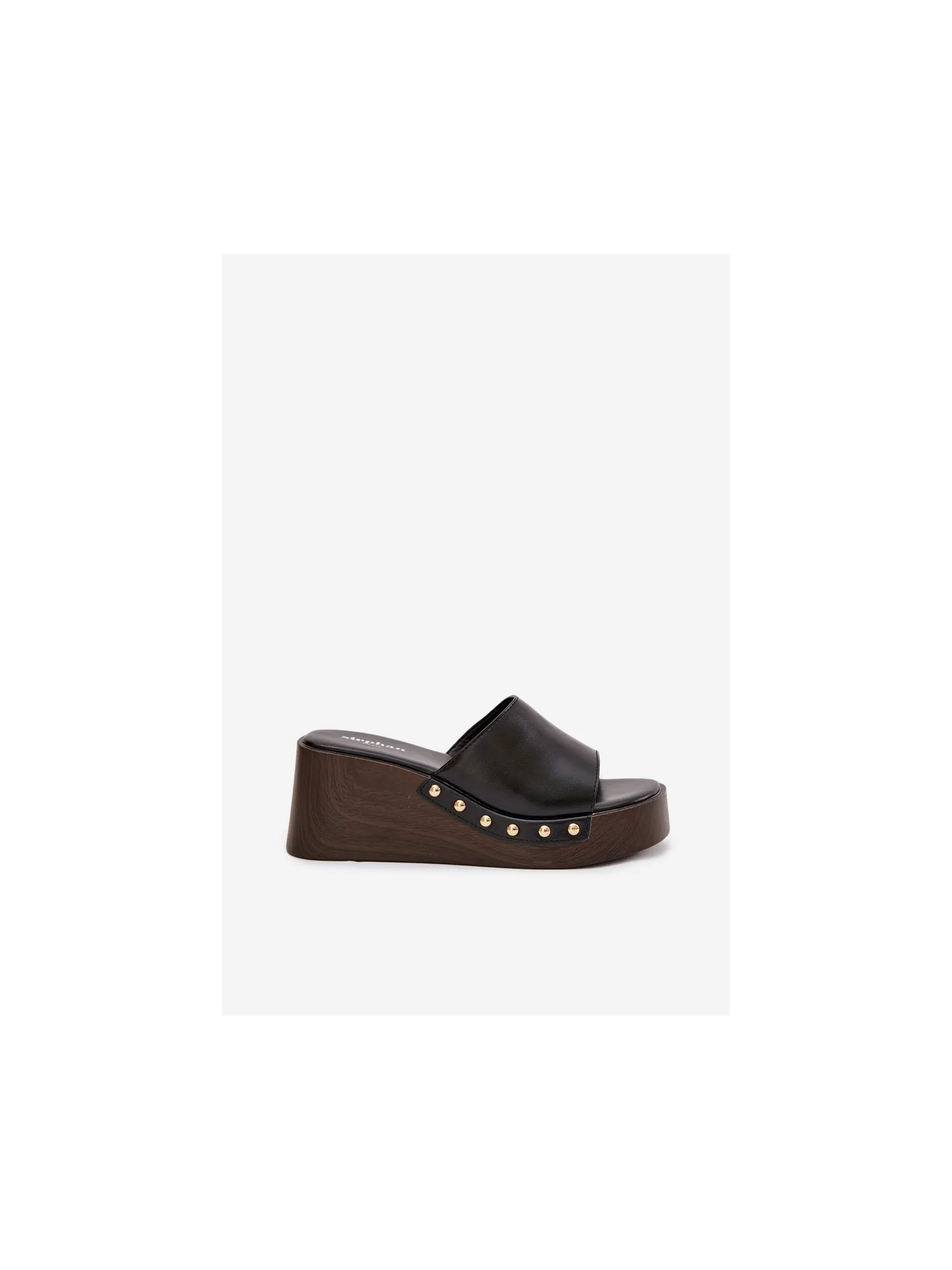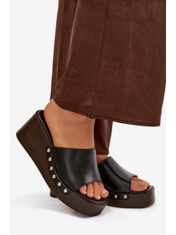 Moteriškos platforminės šlepetės su auksiniais kniedėmis, juodos Arionne