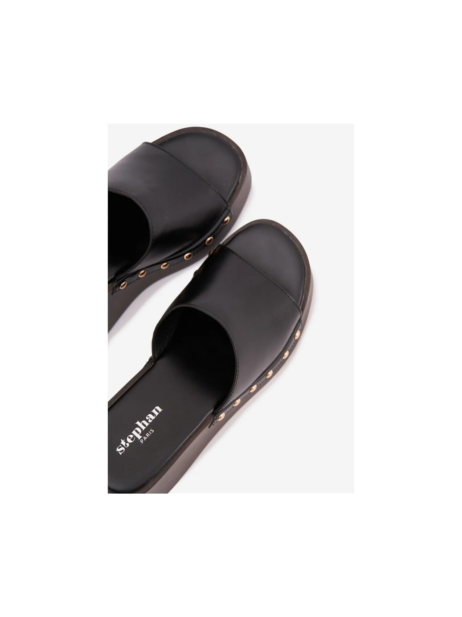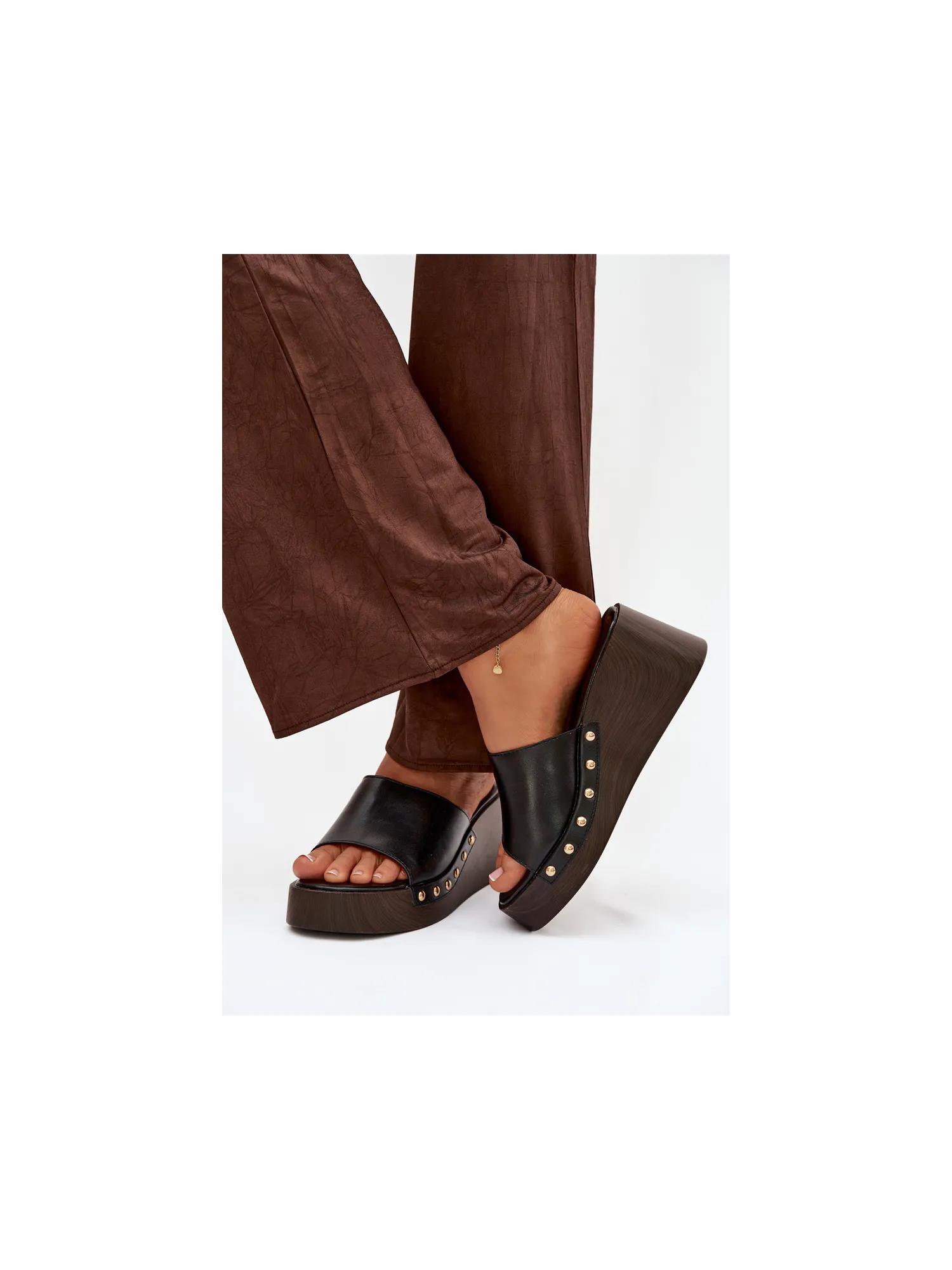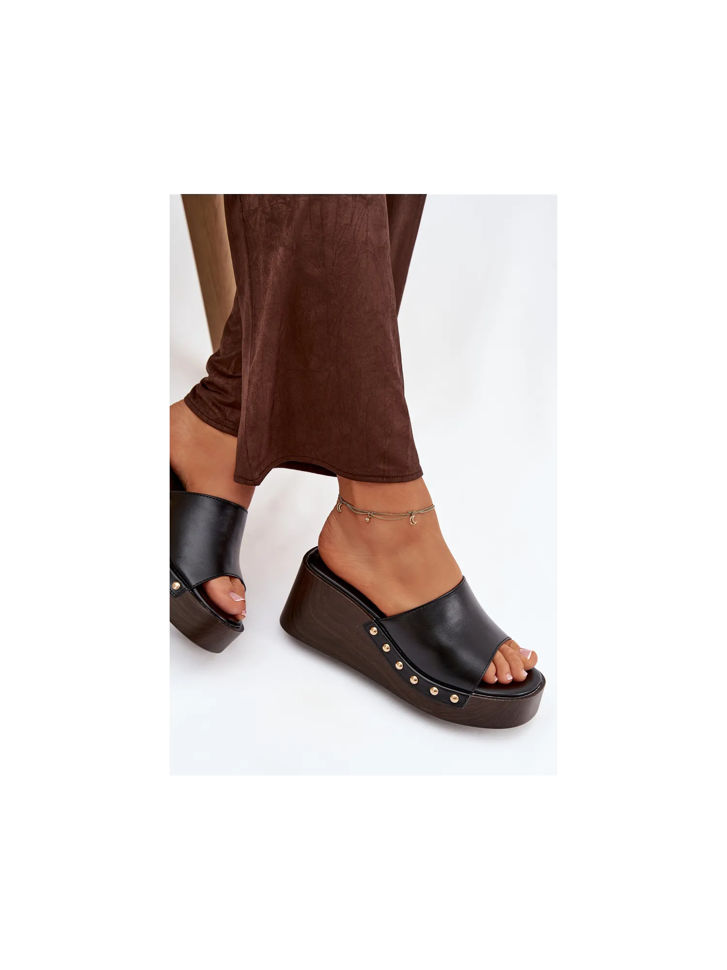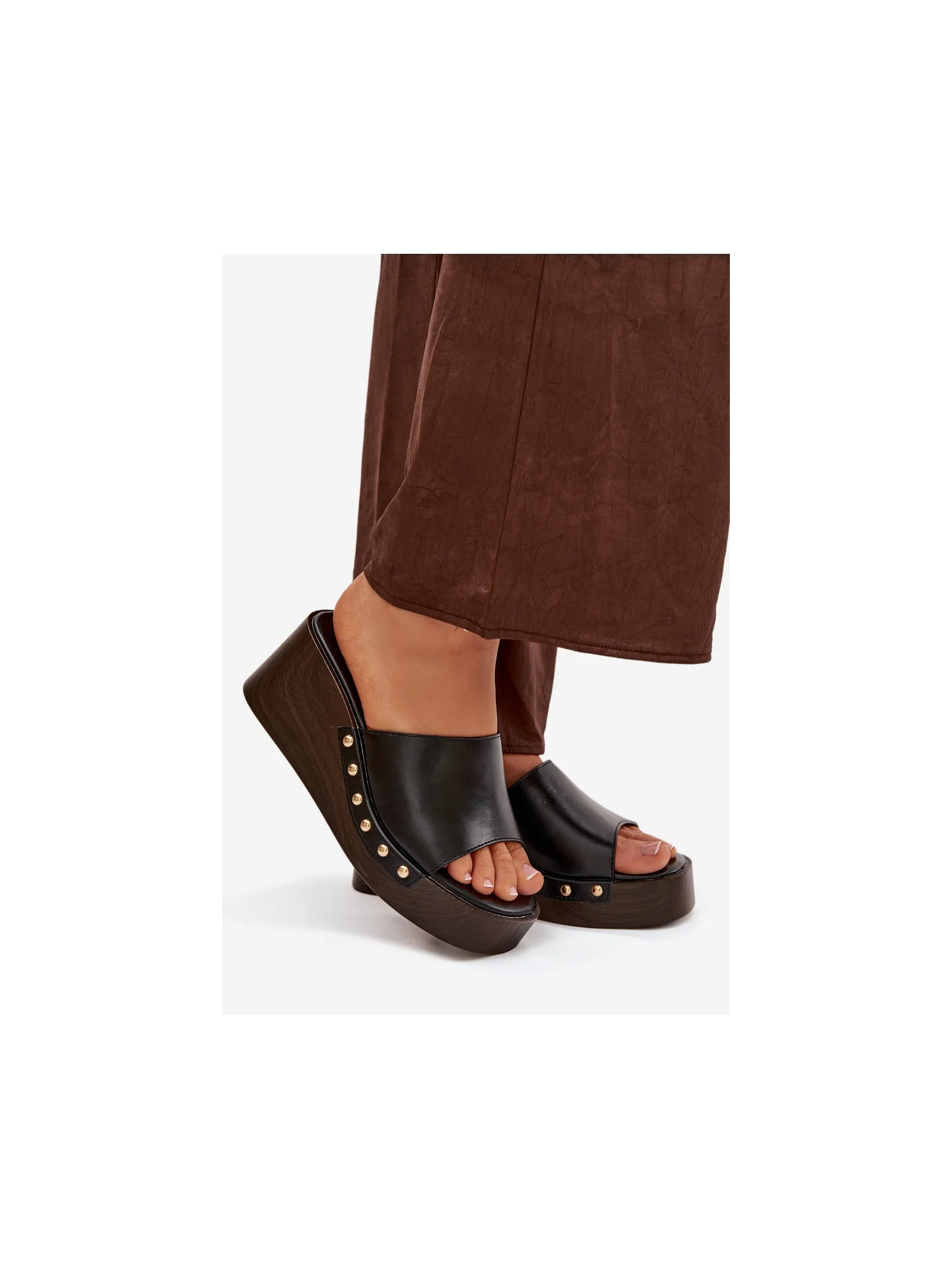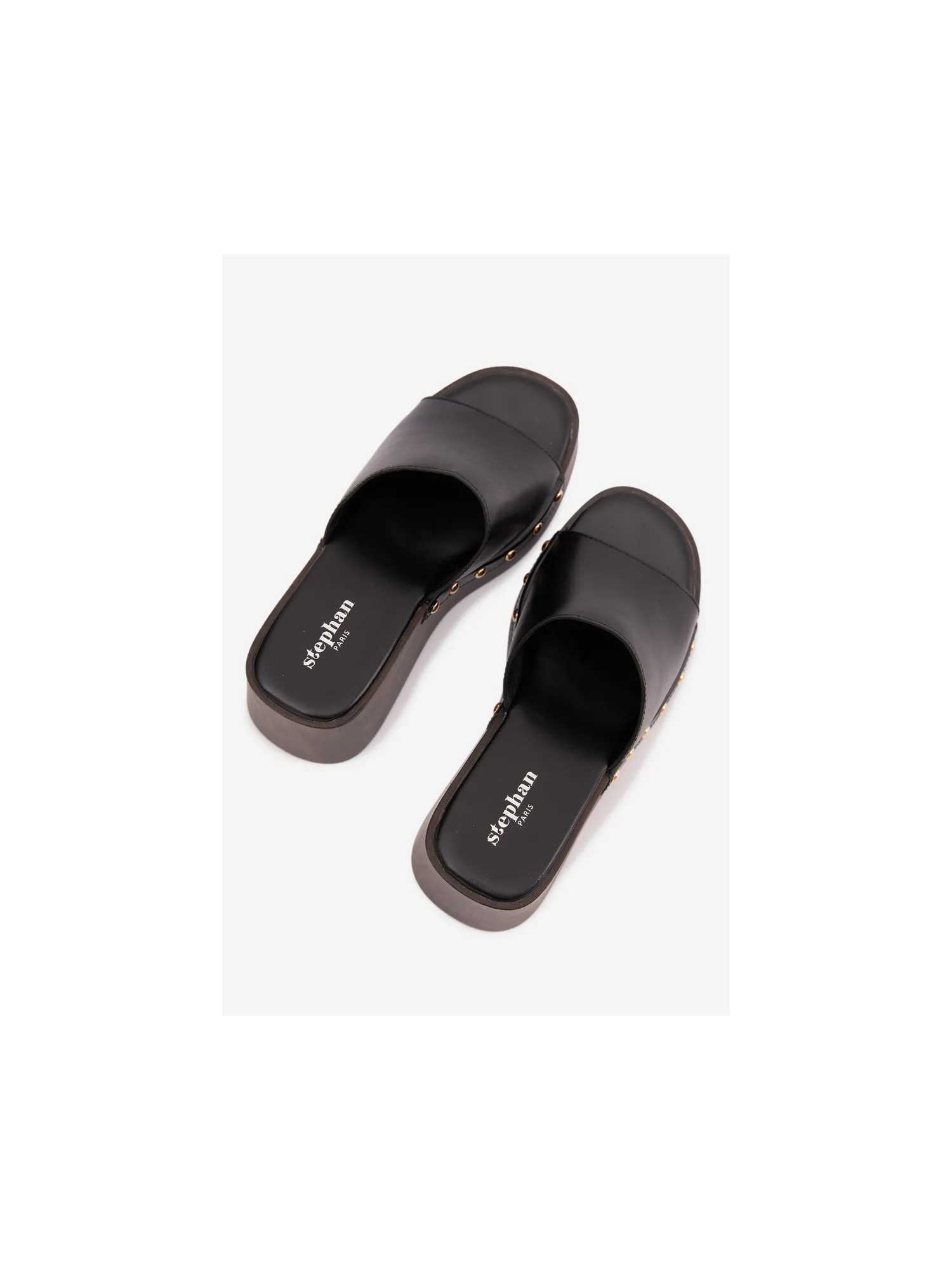 Moteriškos platforminės šlepetės su auksiniais kniedėmis, juodos Arionne