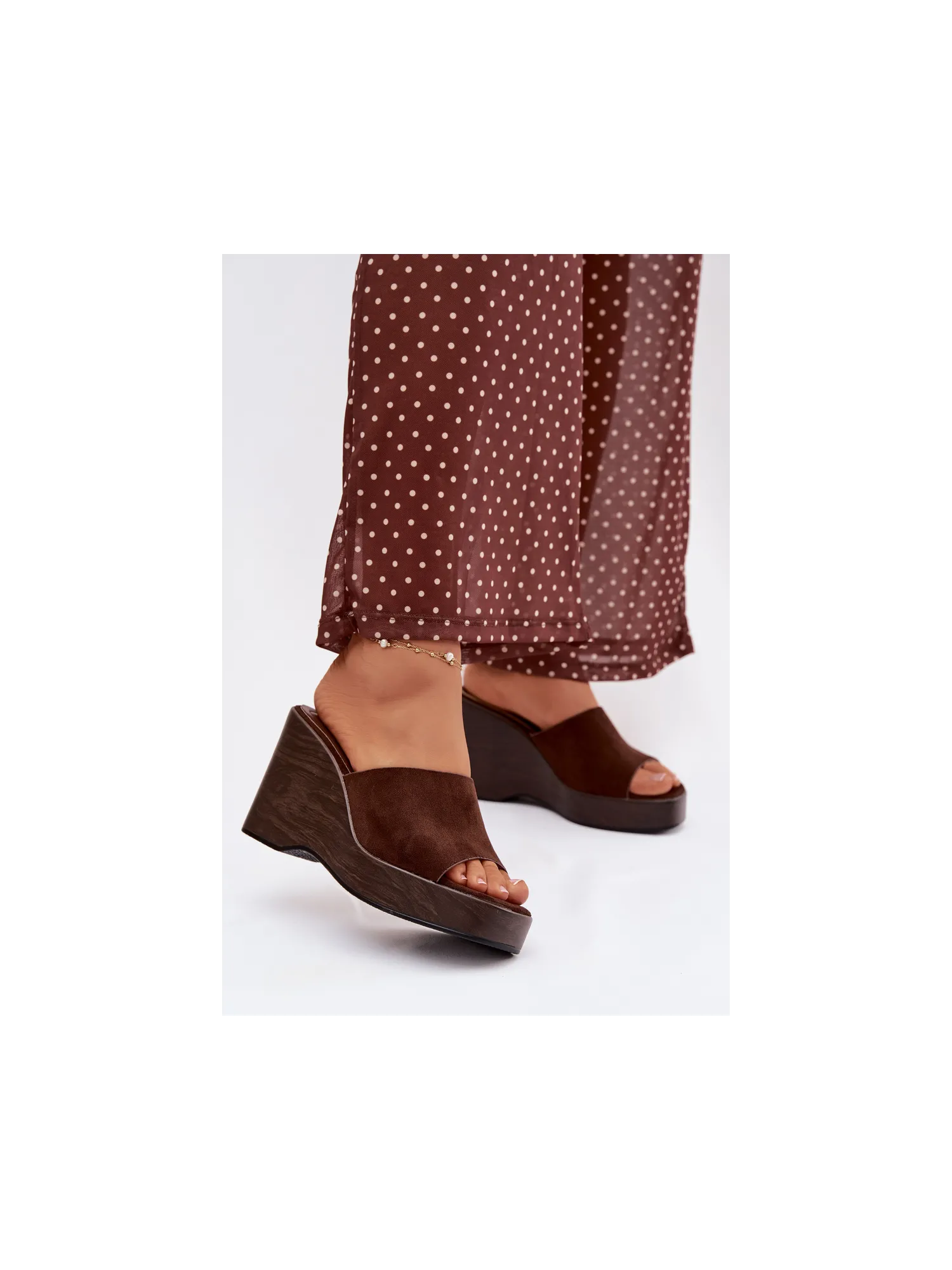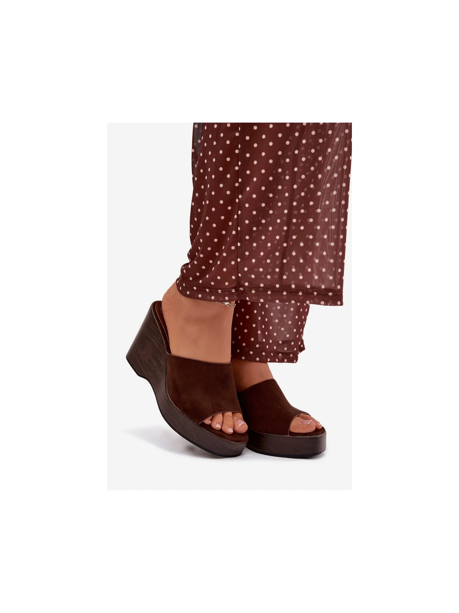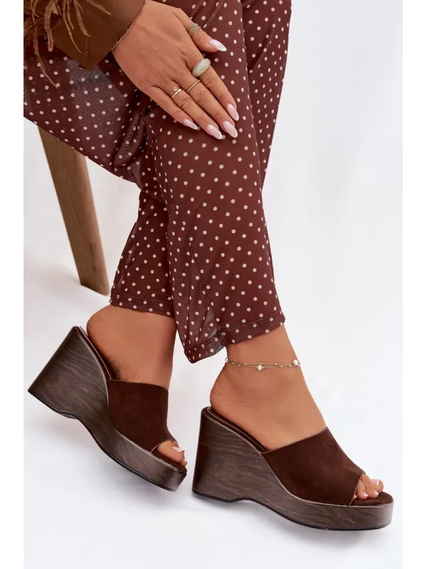 Women's platform slides are a stylish and comfortable choice for warm days. The strap is made of eco-suede. The platform provides stability and comfort, while subtly accentuating the silhouette. These slides are perfect for summer outfits – both for everyday wear and evening outings. When choosing a size, please refer to the size chart.