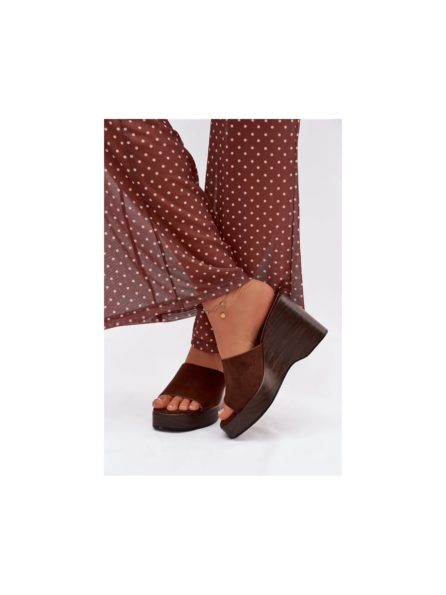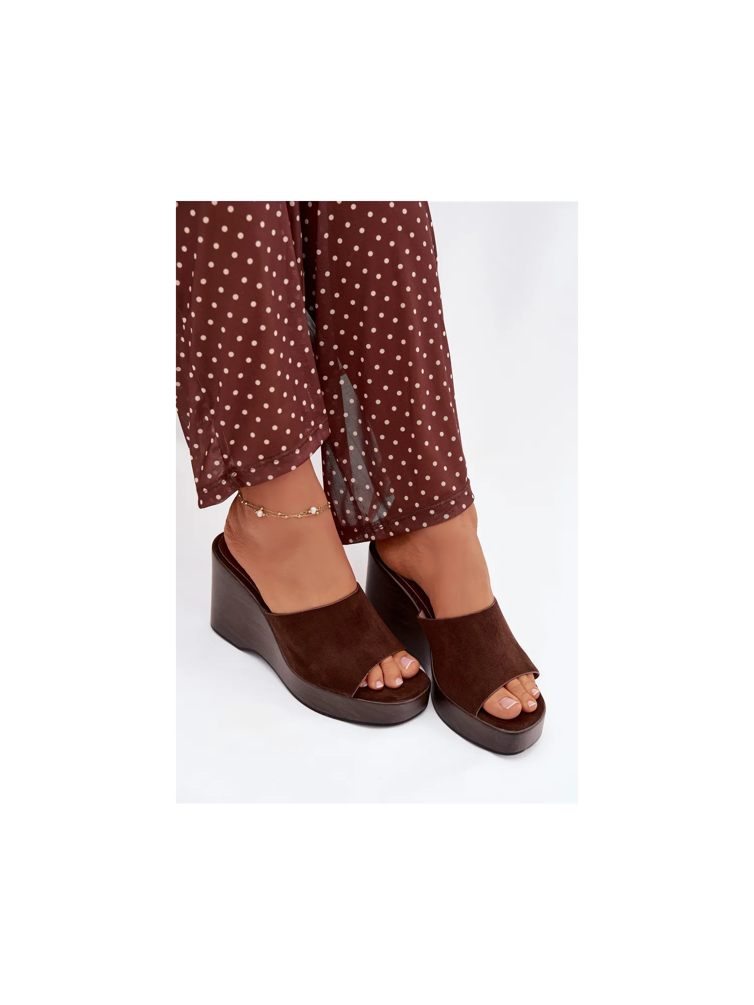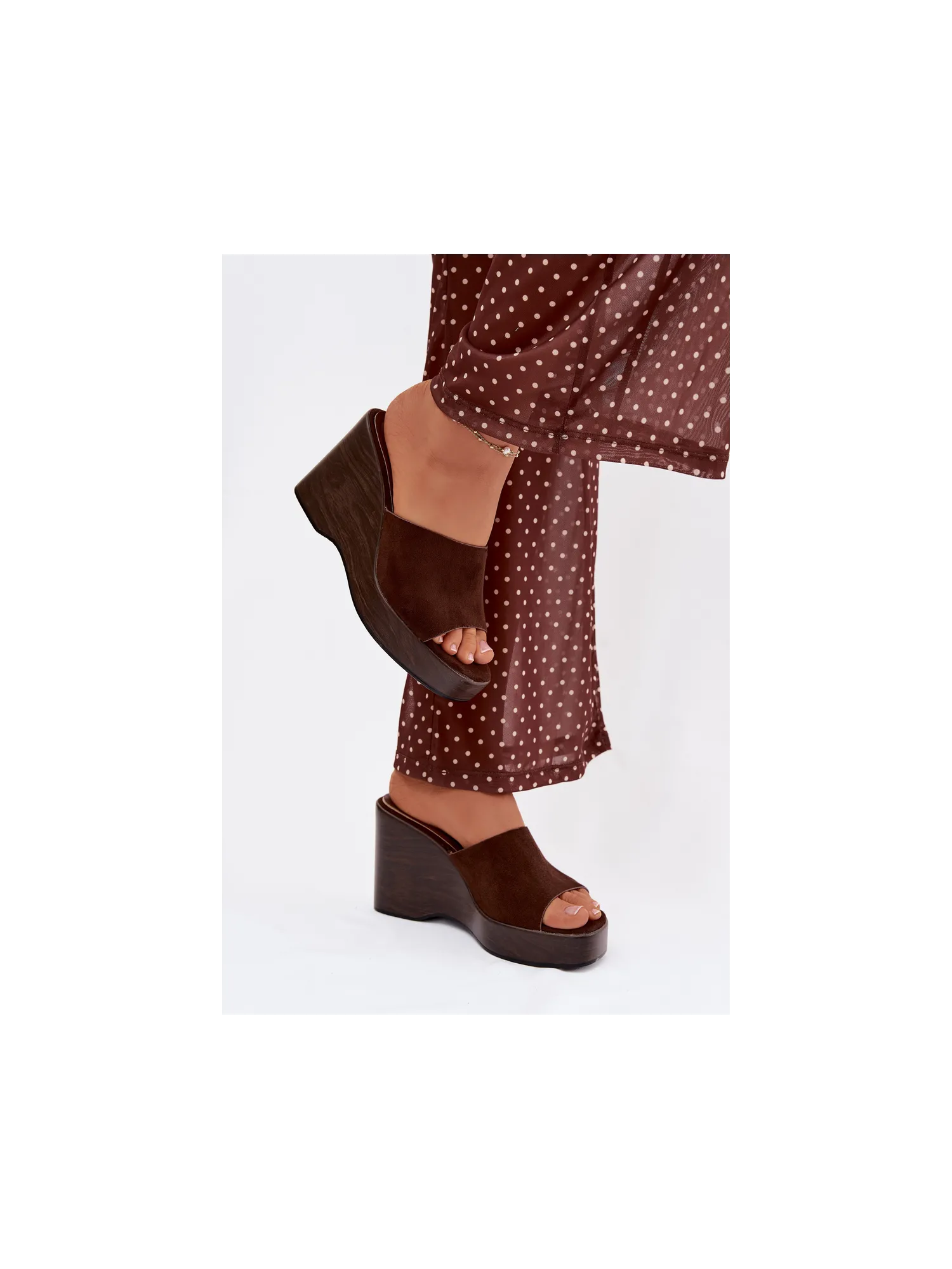 Women's platform slides are a stylish and comfortable choice for warm days. The strap is made of eco-suede. The platform provides stability and comfort, while subtly accentuating the silhouette. These slides are perfect for summer outfits – both for everyday wear and evening outings. When choosing a size, please refer to the size chart.