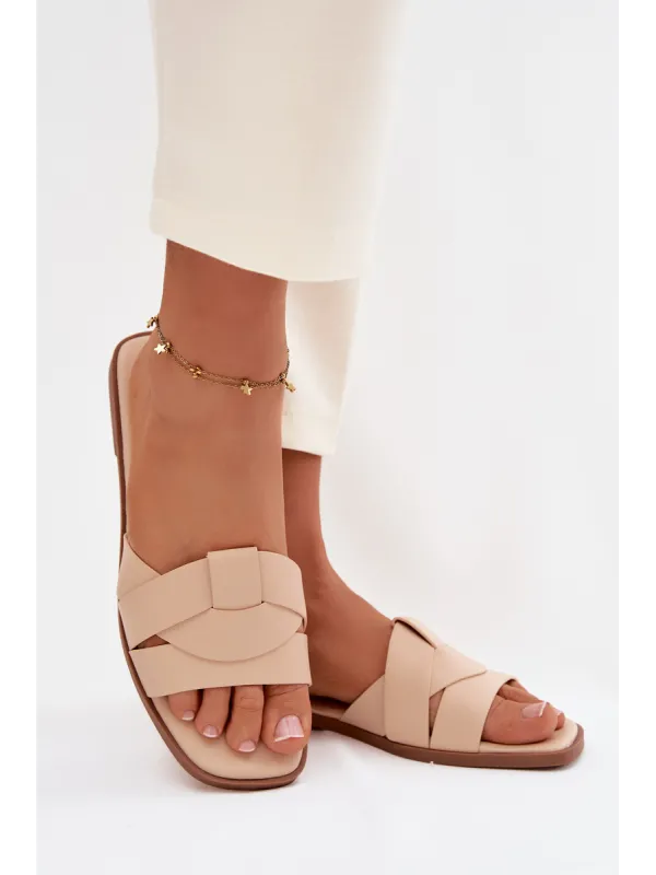 Moteriškos plokščiapadžiai smėlio spalvos šlepetės su dirželiais Marissae