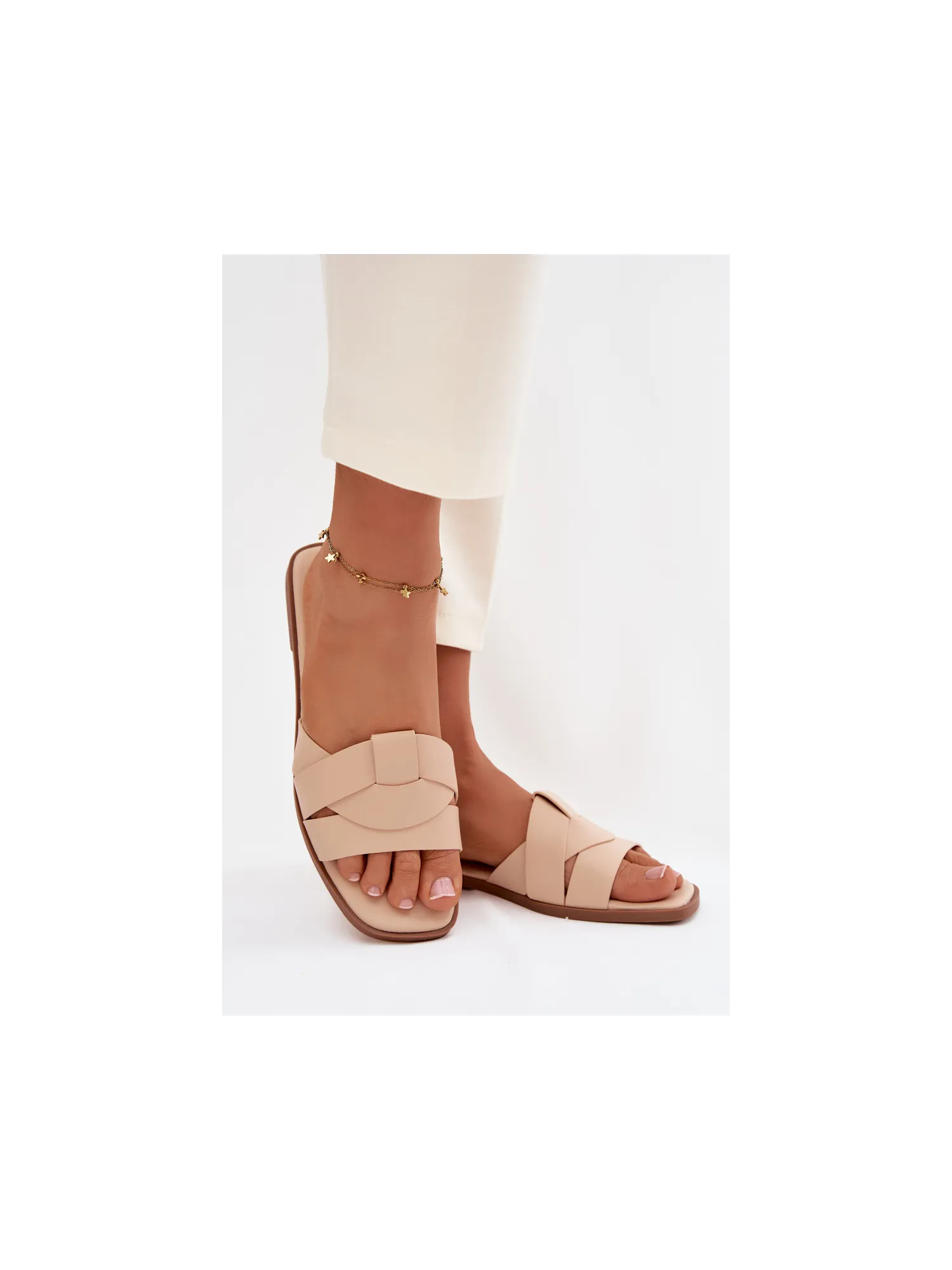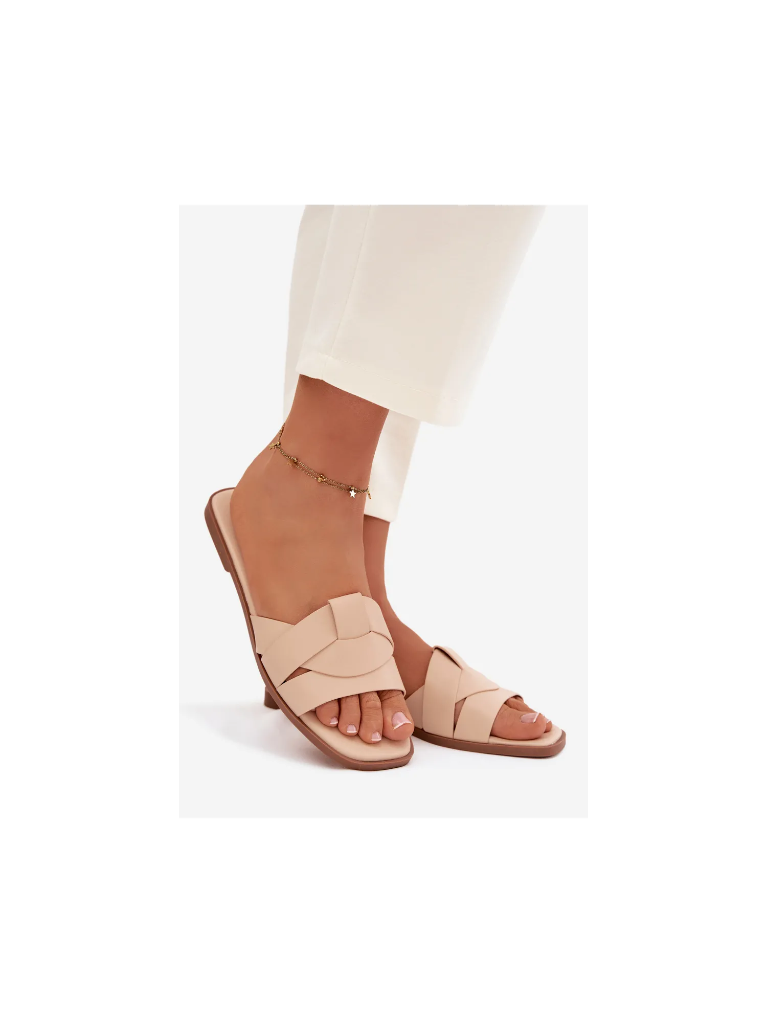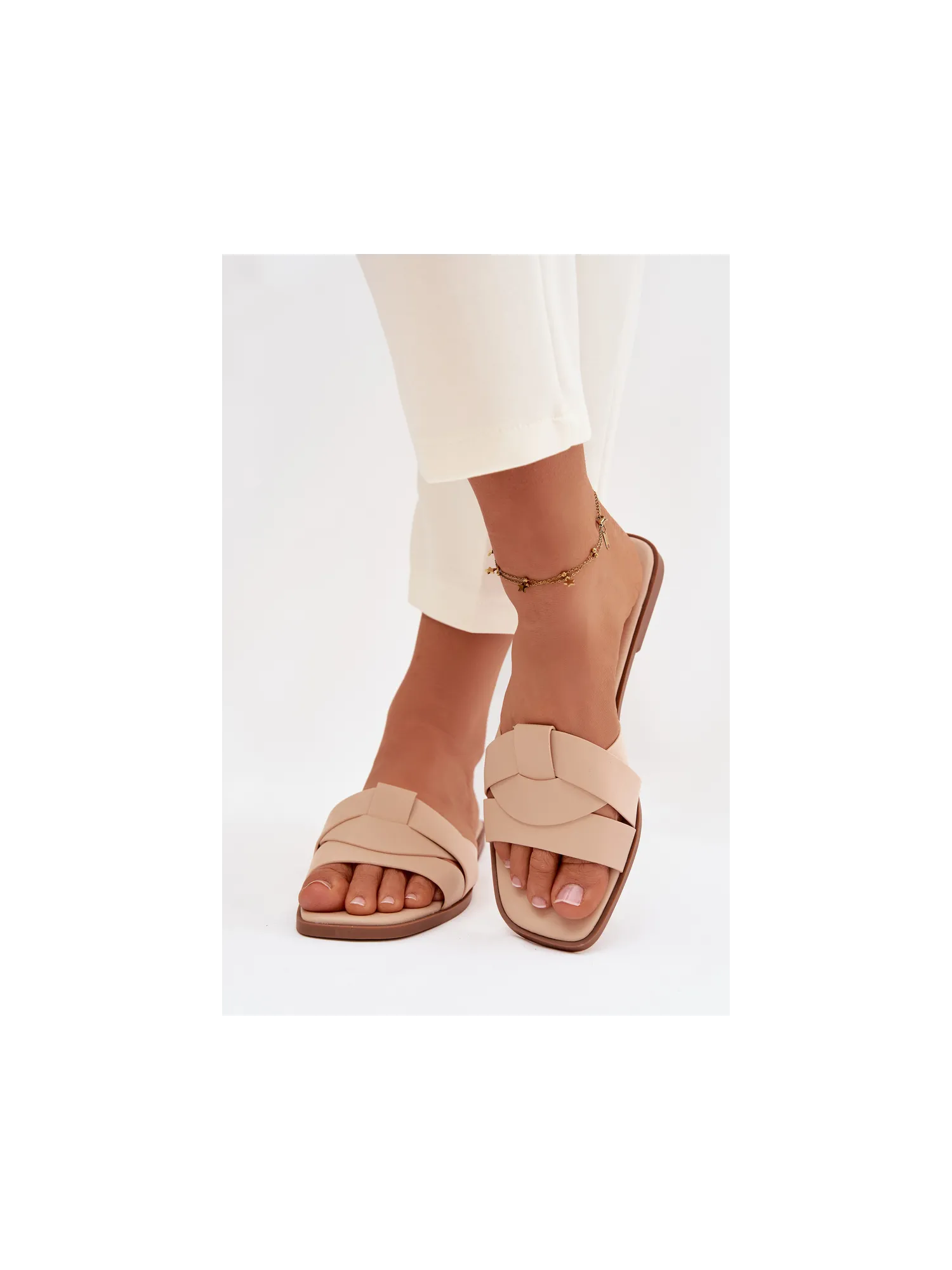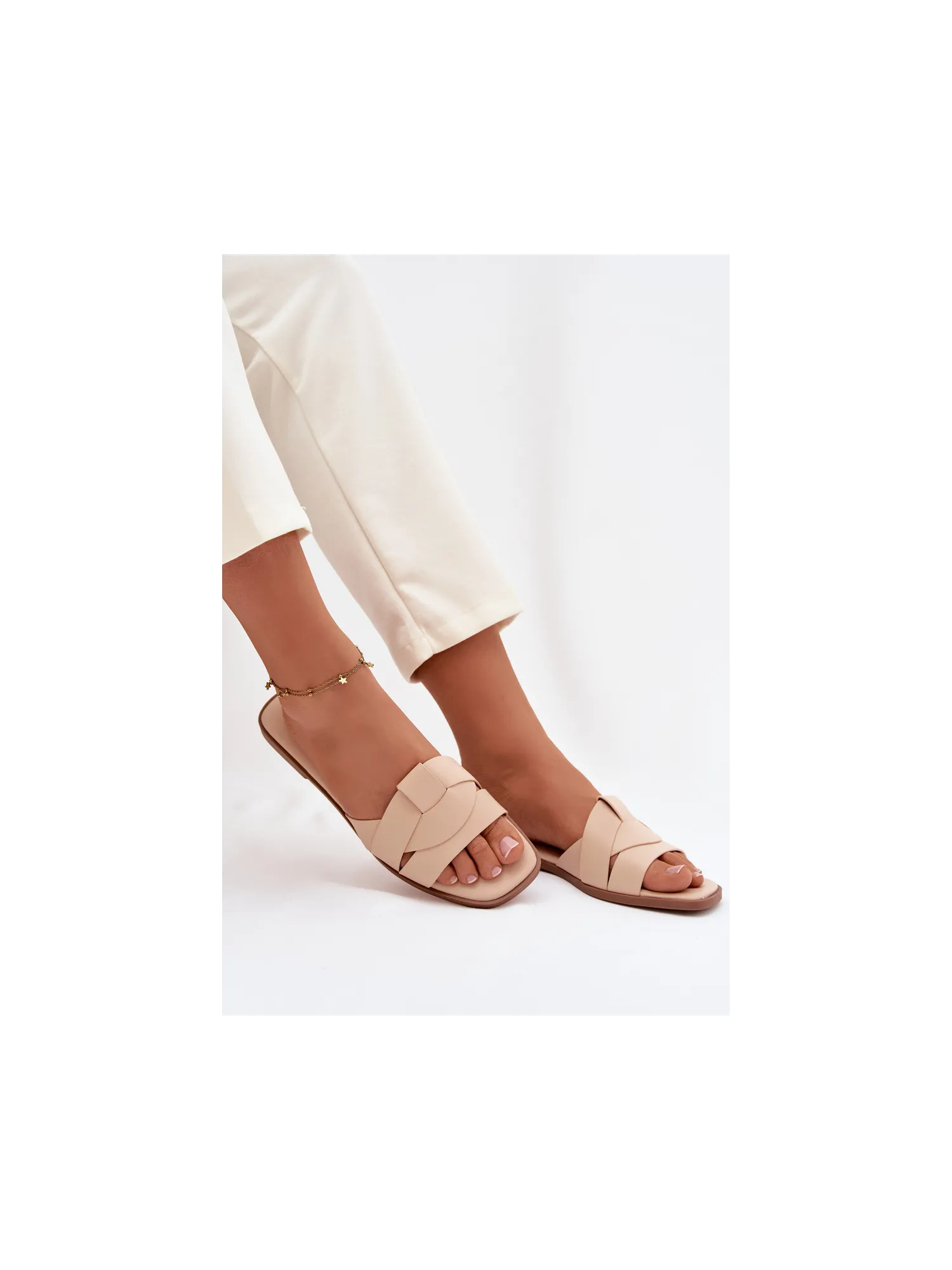 Stylish women's slippers made of eco leather are an excellent summer choice for women who value comfort and elegance. The flat sole guarantees comfort while walking, and the front straps subtly accentuate the foot and give the overall look a fashionable touch. The classic yet elegant design makes these slippers a perfect complement to both everyday and more formal outfits. Ideal for walks, shopping, and summer outings. When choosing a size, please refer to the size chart.