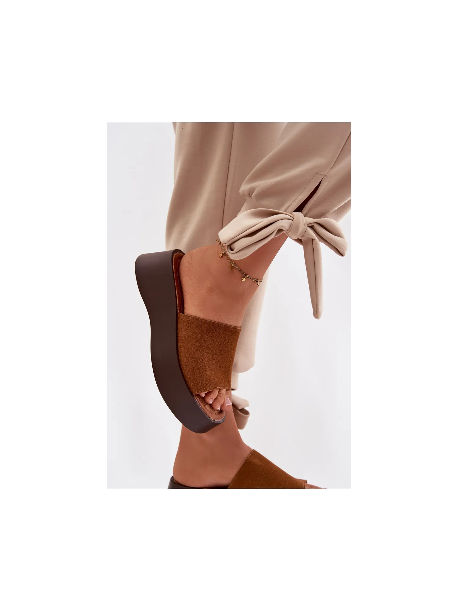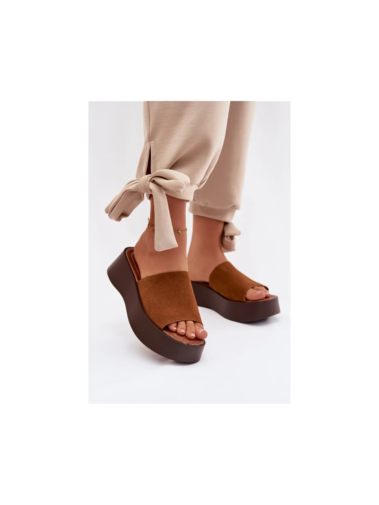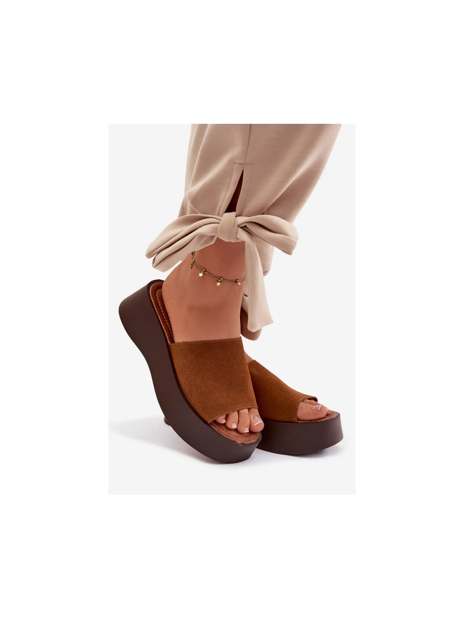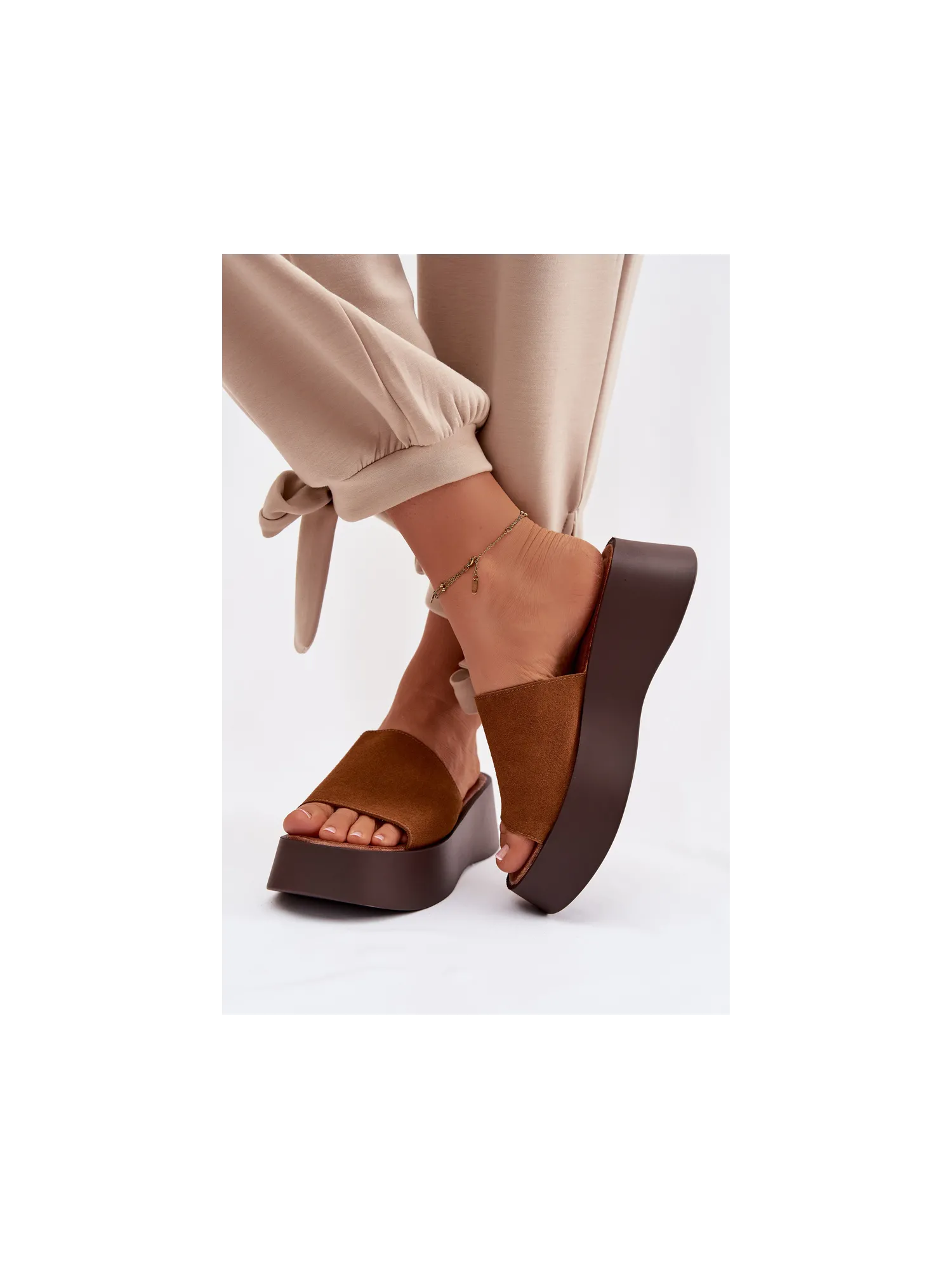 Moteriškos platforminės šlepetės – patogus ir stilingas pasirinkimas šiltoms dienoms. Dirželis pagamintas iš ekologiškos zomšos. Minkštas vidpadis užtikrina komfortą visą dieną. Stabili platforma šiek tiek pakelia siluetą nepakenkdama komfortui. Šis modelis puikiai tinka kasdienei vasaros aprangai. Renkantis dydį, prašome žiūrėti dydžių lentelę.