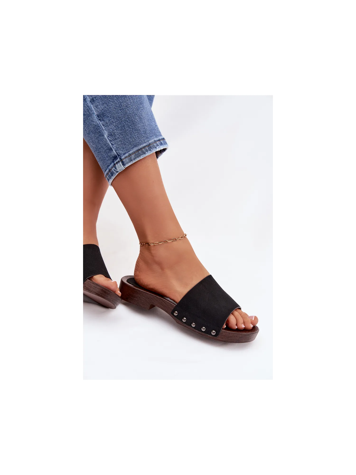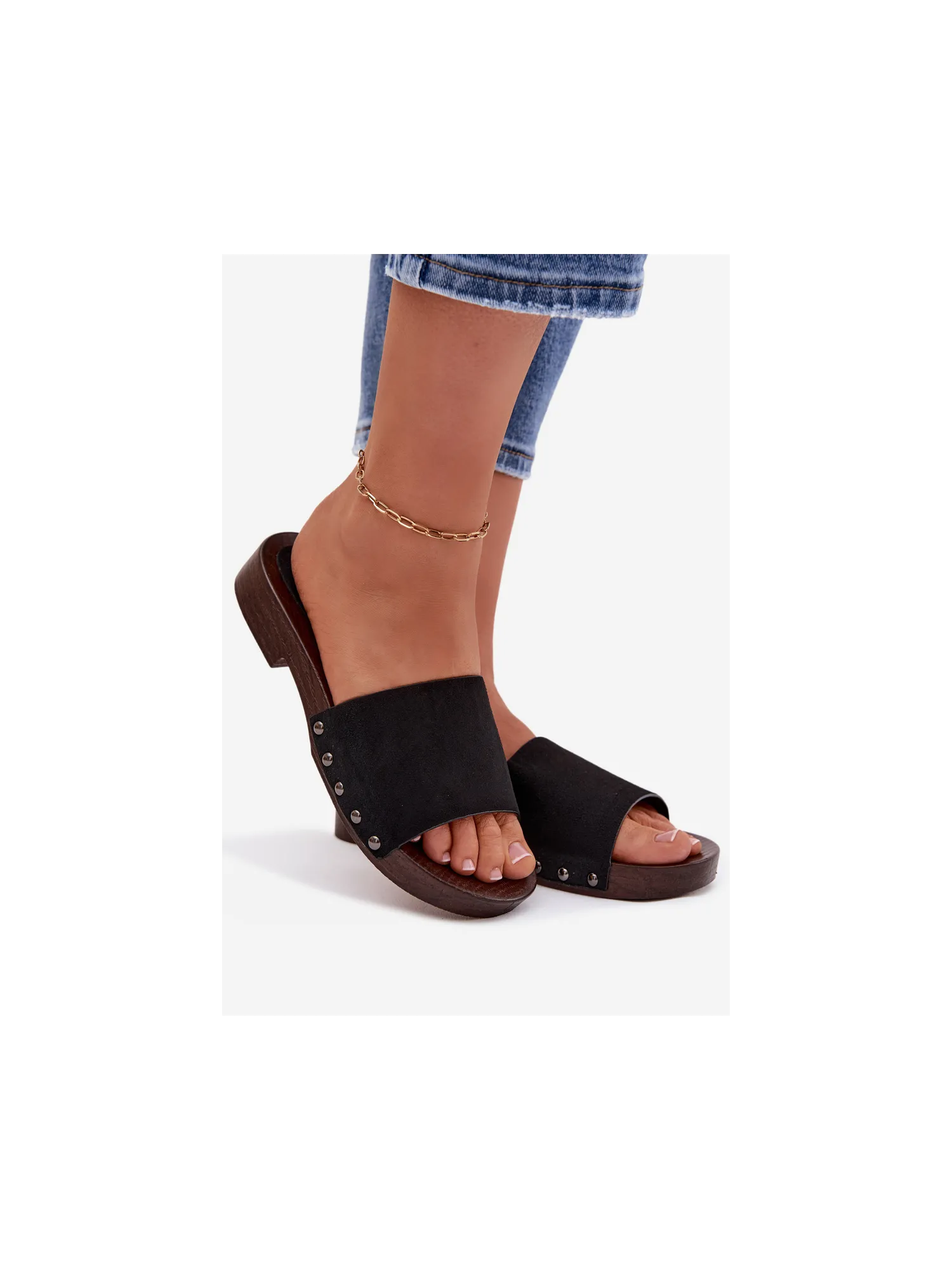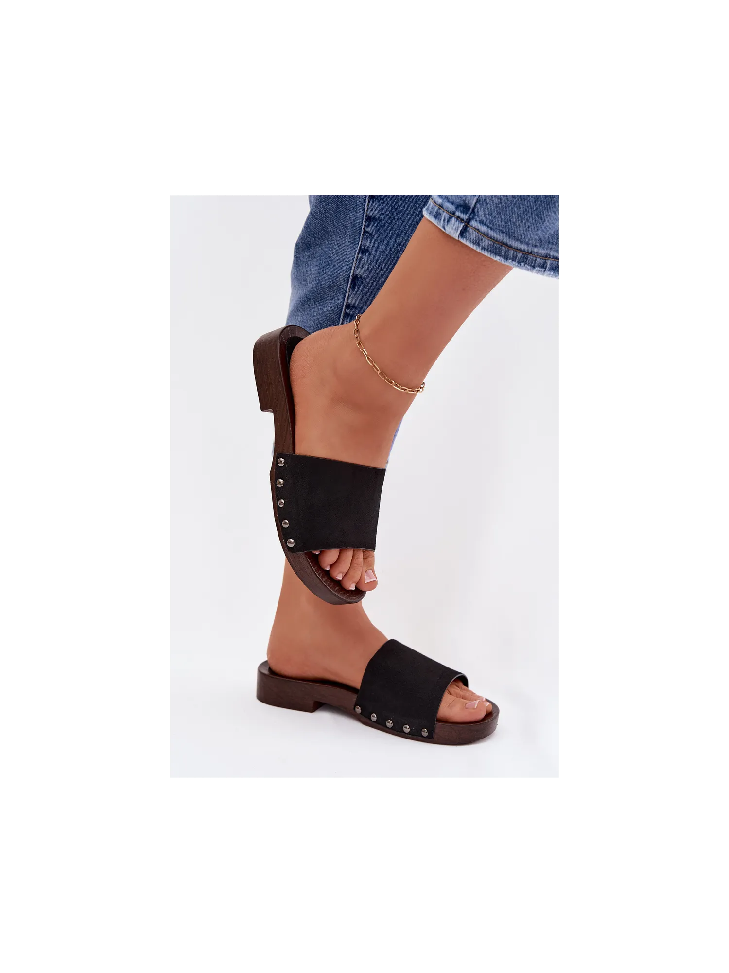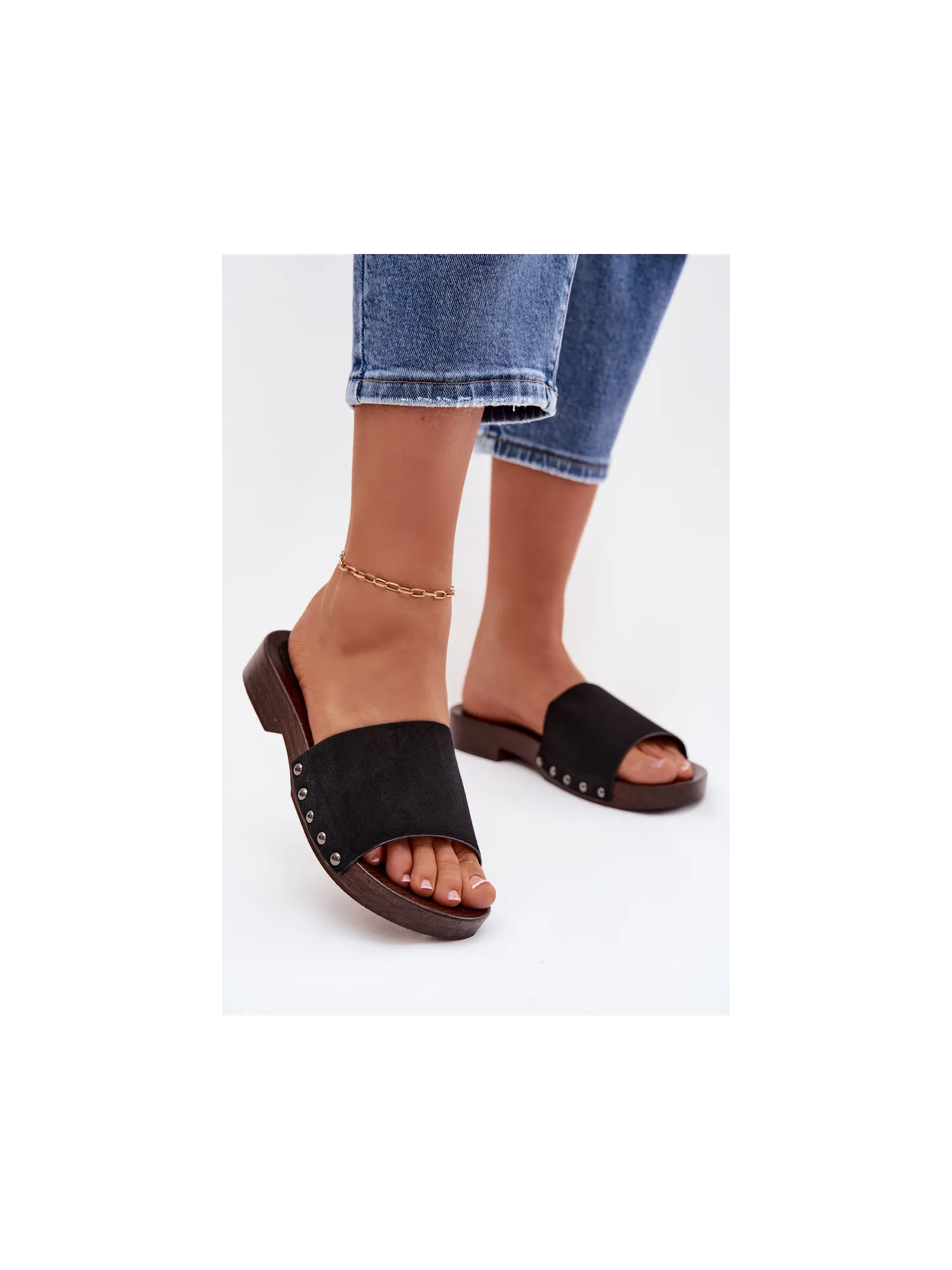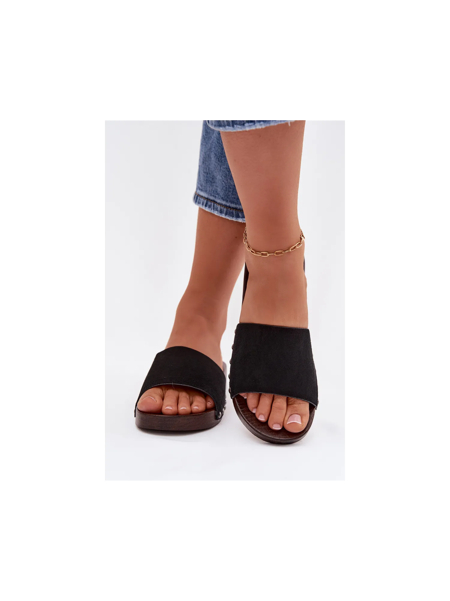 Stilingos moteriškos plokščiapadės basutės – patogus pasirinkimas šiltomis dienomis. Iš ekologiškos zomšos pagamintas dirželis, šonuose dekoruotas smeigėmis, suteikia drąsaus ir madingo akcento. Paprastas dizainas užtikrina patogumą, o dekoratyvinės detalės šias šlepetes paverčia puikiai tinkančiomis kasdienei vasaros aprangai papildyti. Renkantis dydį, prašome žiūrėti dydžių lentelę.