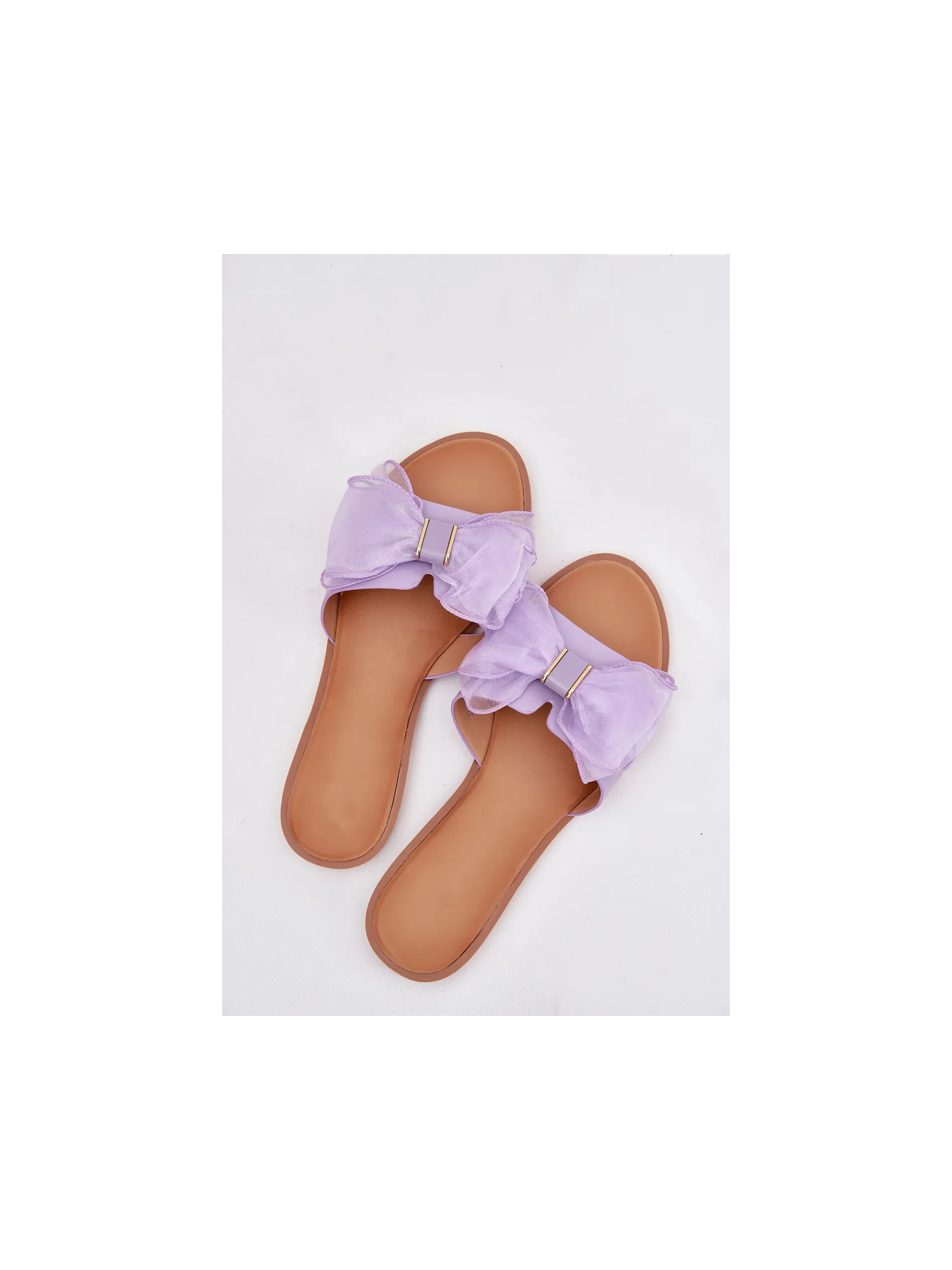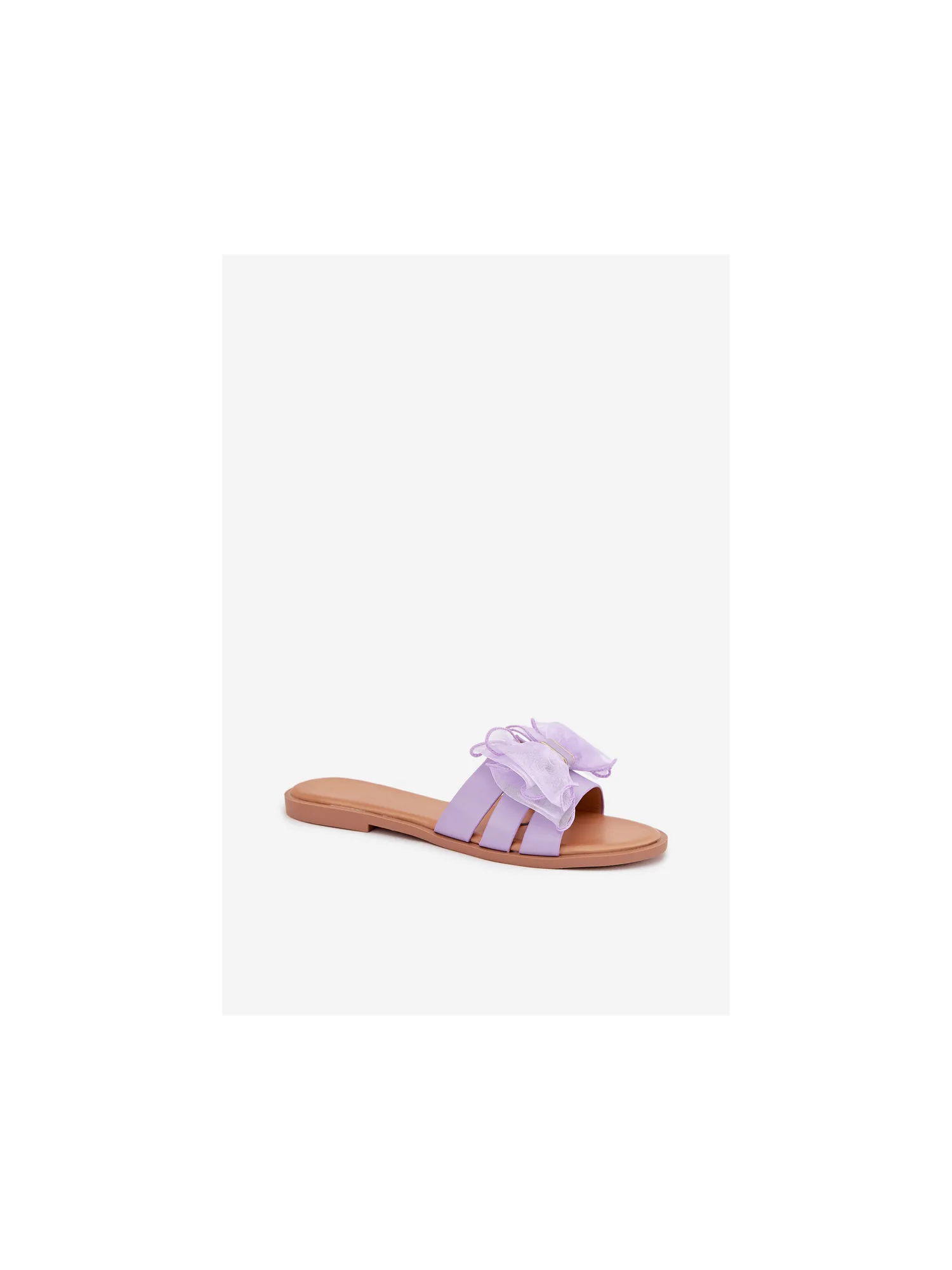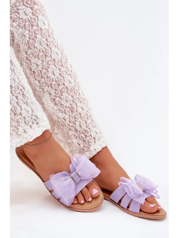Moteriškos šlepetės plokščiapadžiai kulniukai su tiulio kaspinu... violetinės spalvos... Tanira