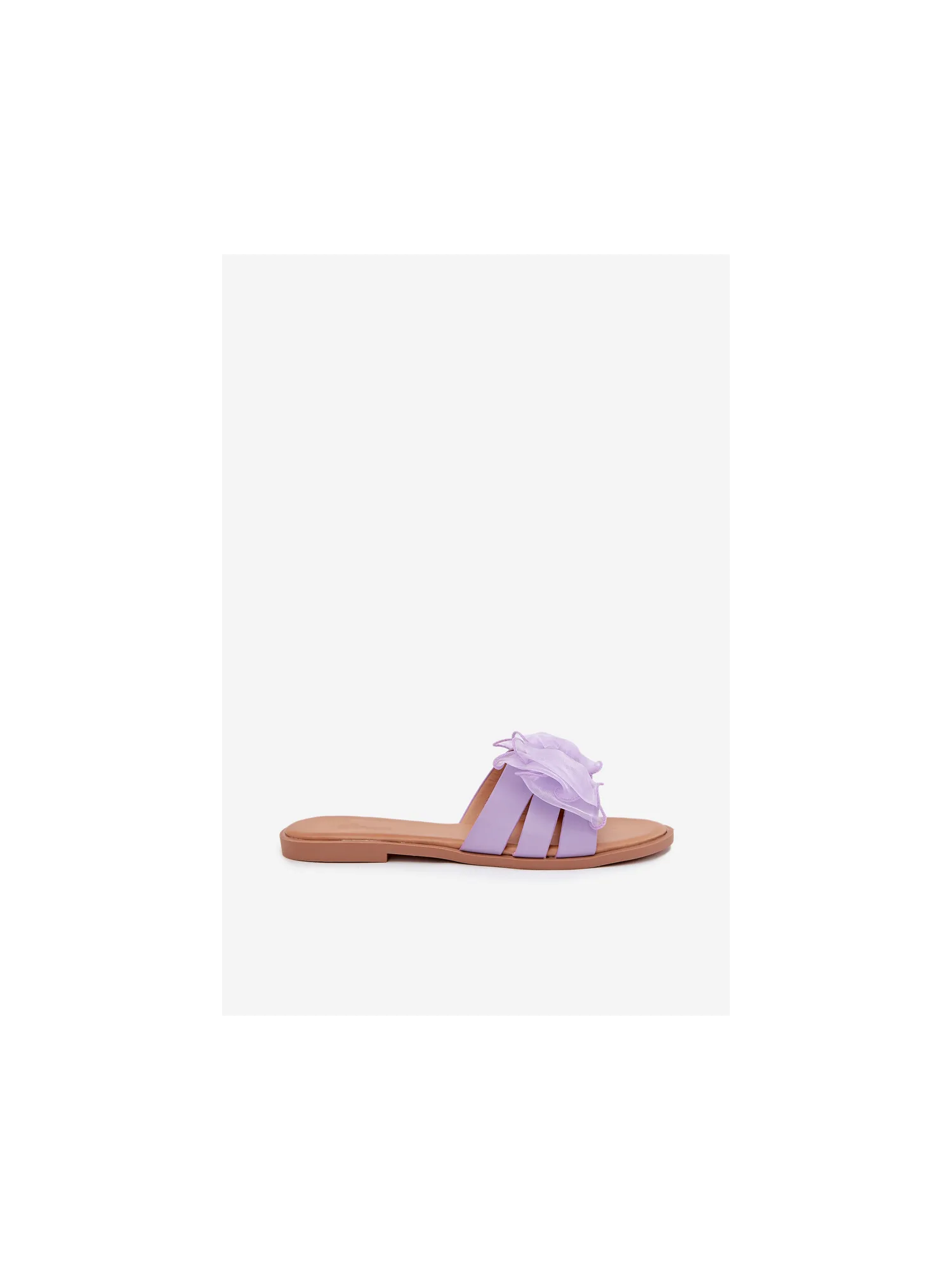 Women's sandals made of eco-leather, set on a flat heel, are an excellent everyday choice. They feature a tulle bow. Perfect for summer outfits, they pair beautifully with dresses, skirts, or pants, combining simplicity with subtle charm. When choosing a size, please refer to the size chart.