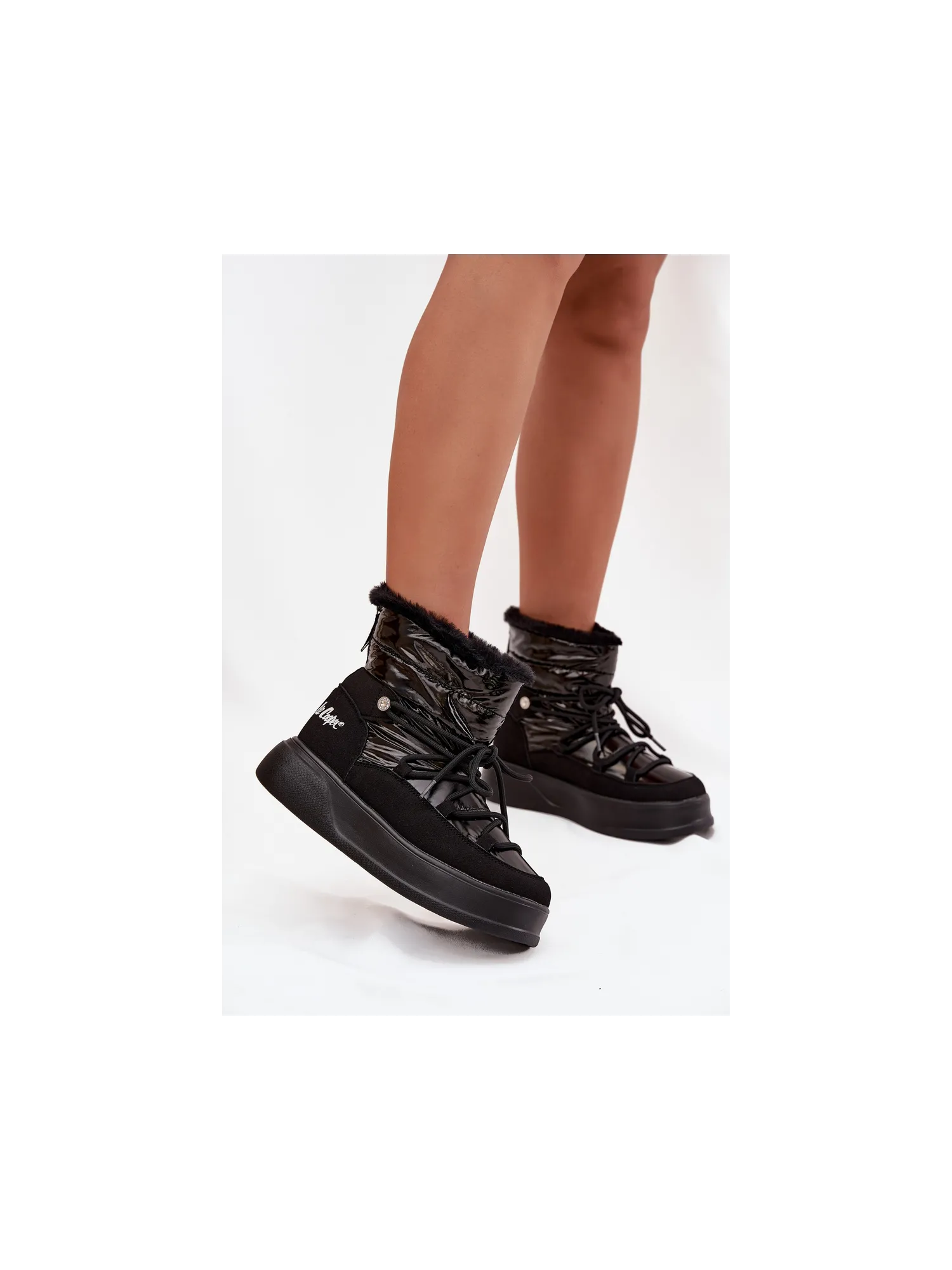 Lee CooperWomen's snow boots by Lee Cooper are the perfect choice for winter days. Made from high-quality materials resistant to wind and snow, they provide effective protection against cold and moisture. The model is lined with soft fur, ensuring warmth and comfort during wear. The platform sole excellently insulates from cold ground and provides stability while walking. The shoes feature laces at the front for a snug fit and a zipper at the back for easy putting on. These practical and stylish snow boots are suitable for winter walks as well as mountain trips. Ideal for women seeking a combination of comfort, warmth, and fashionable appearance. Please refer to the size chart when choosing your size. When choosing a size, please refer to the size chart.