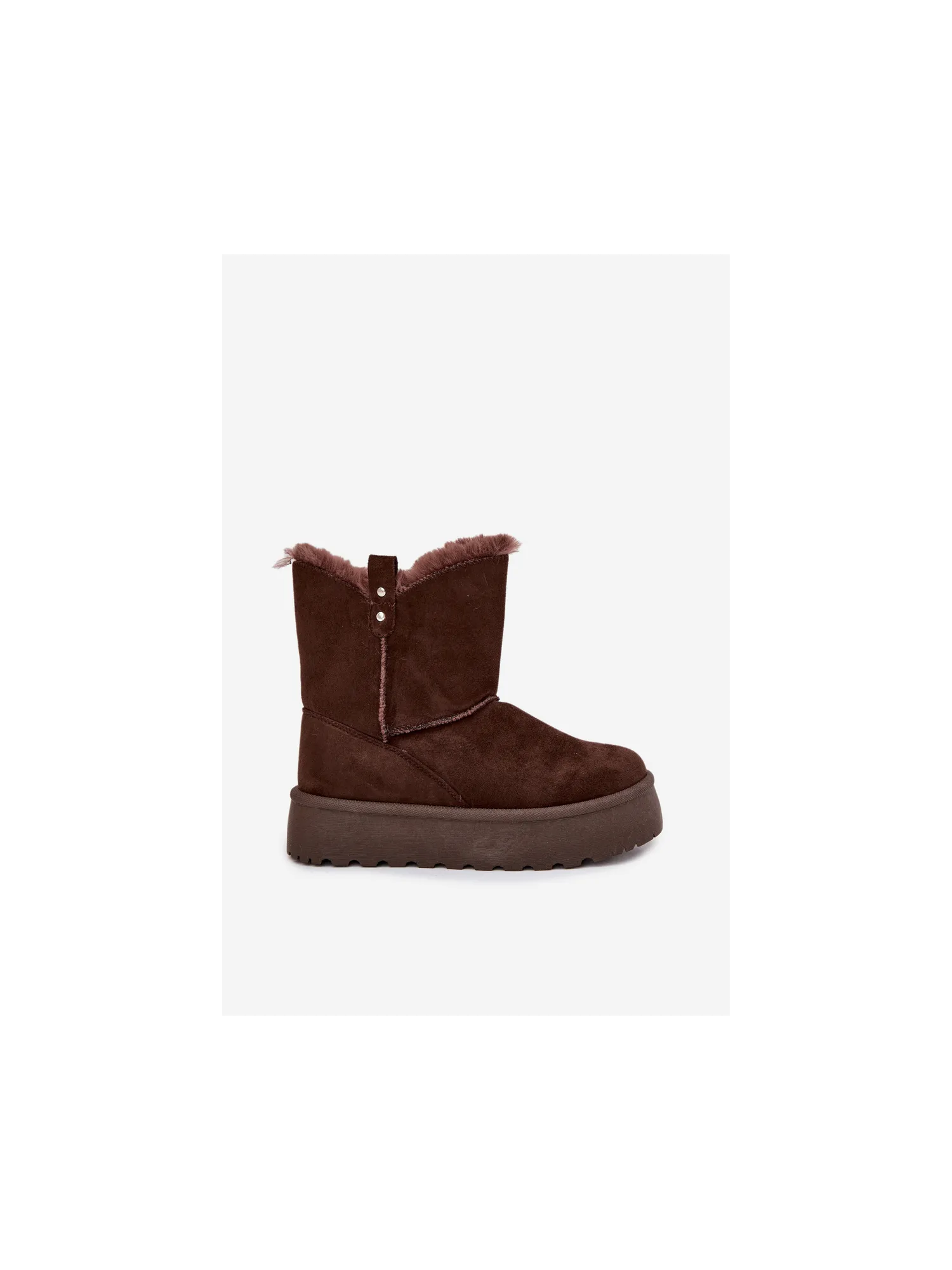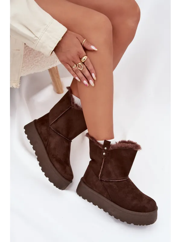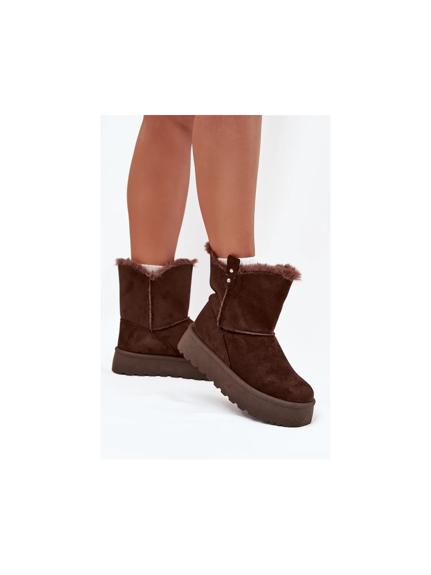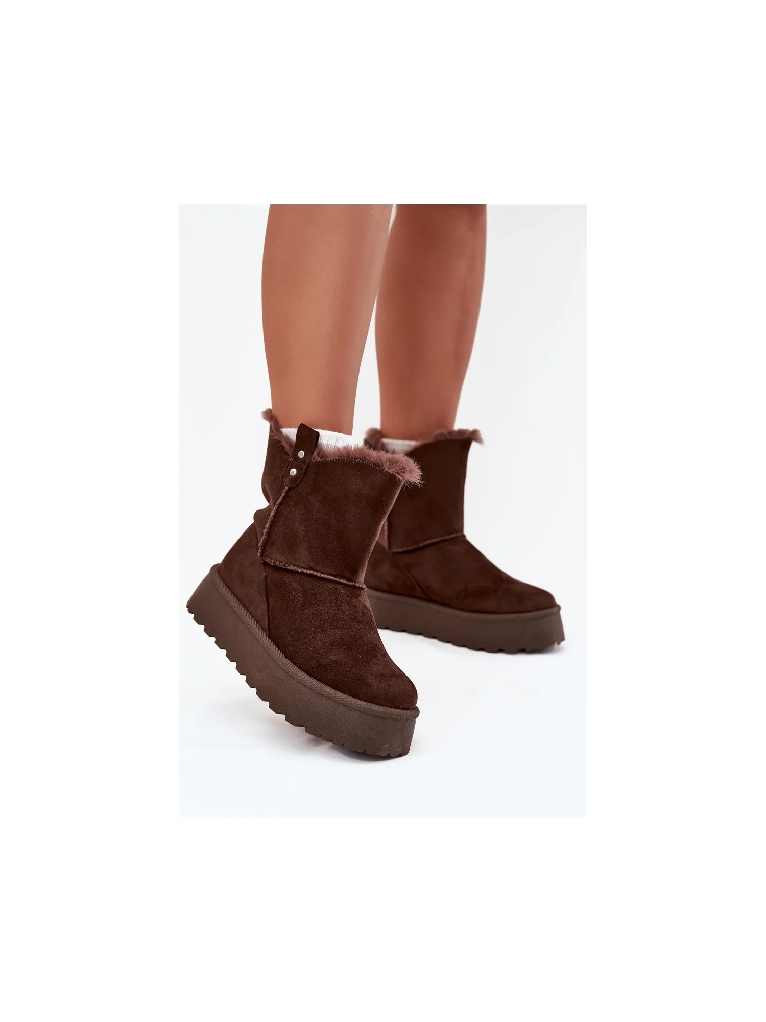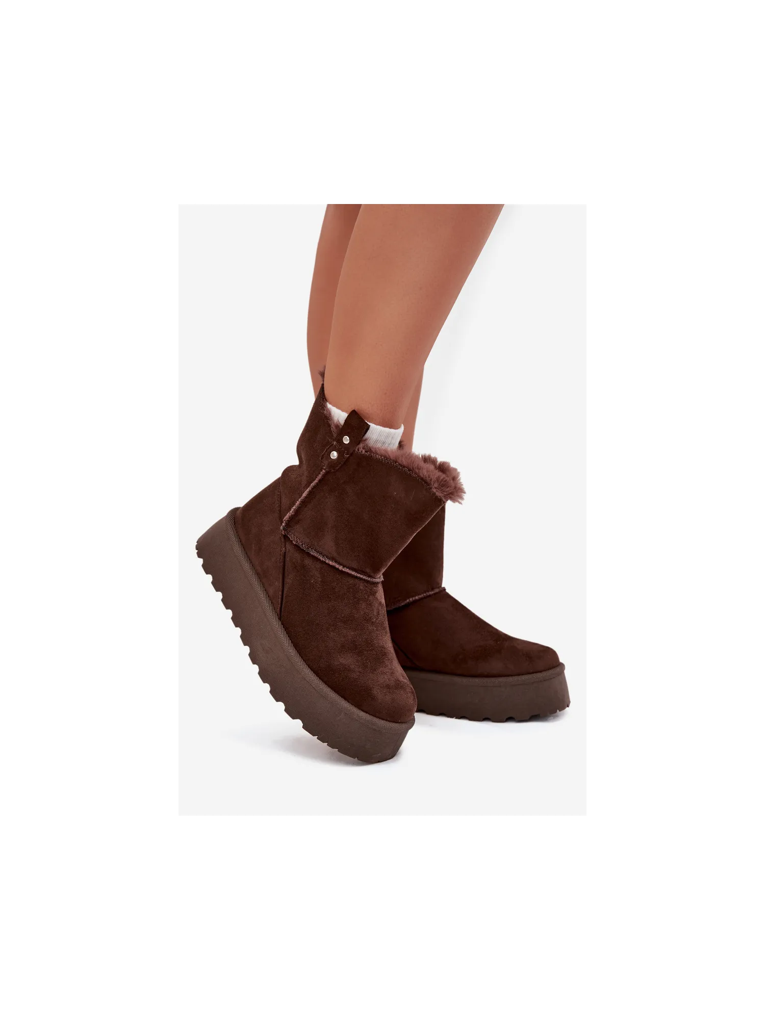 Moteriški sniego batai su platforma ir kailiu tamsiai smėlio spalvos Evelira