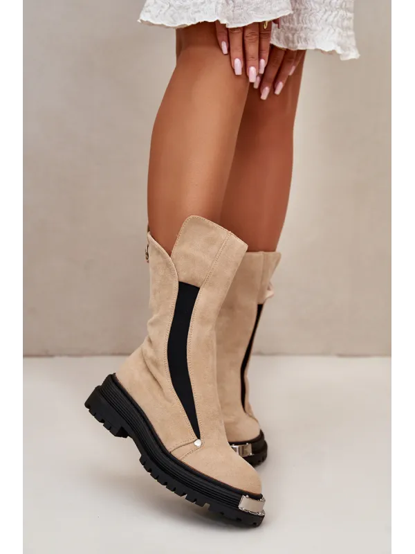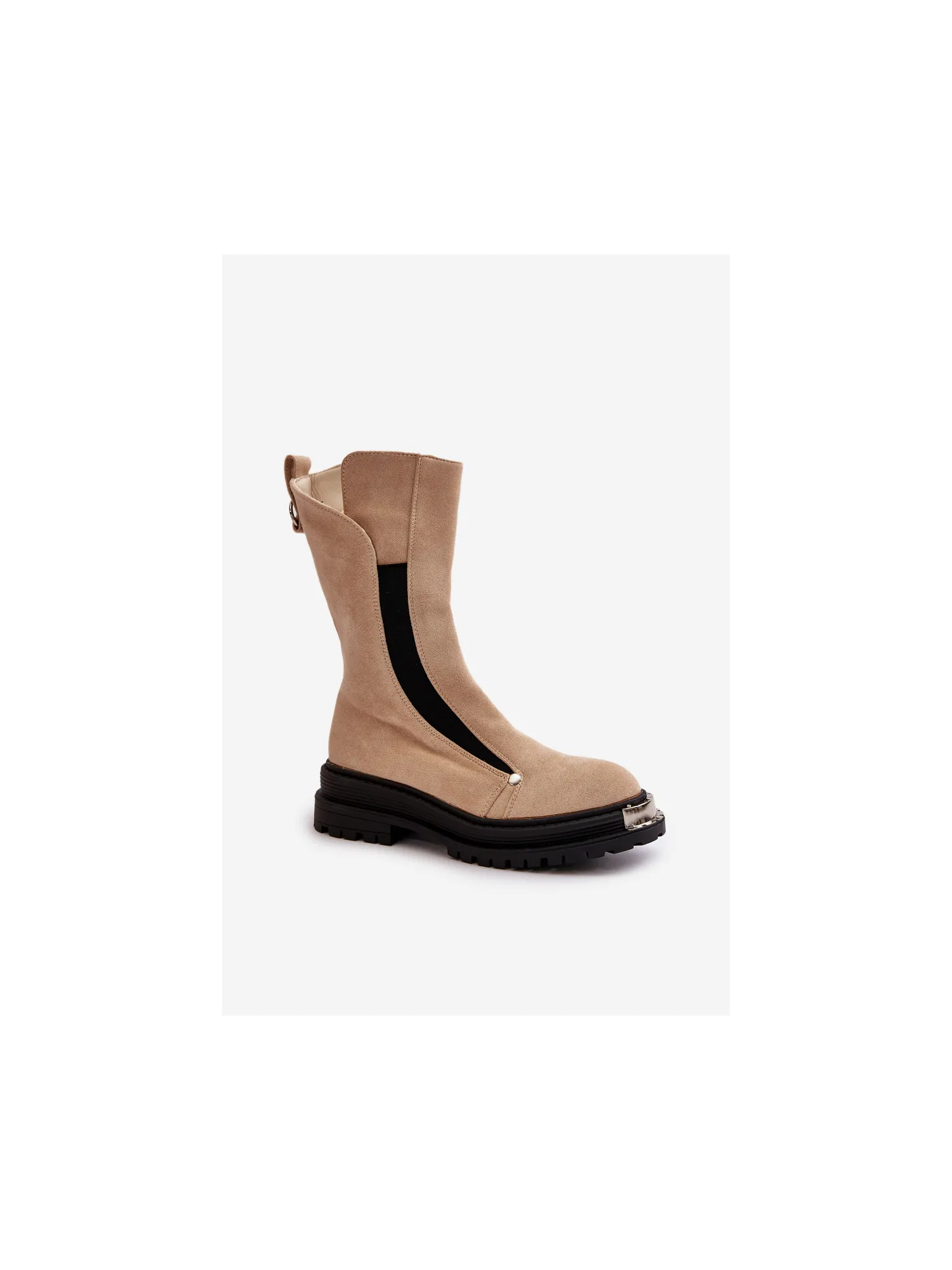 Zomšiniai batai ant plokščio kulno šviesiai smėlio spalvos Palimra