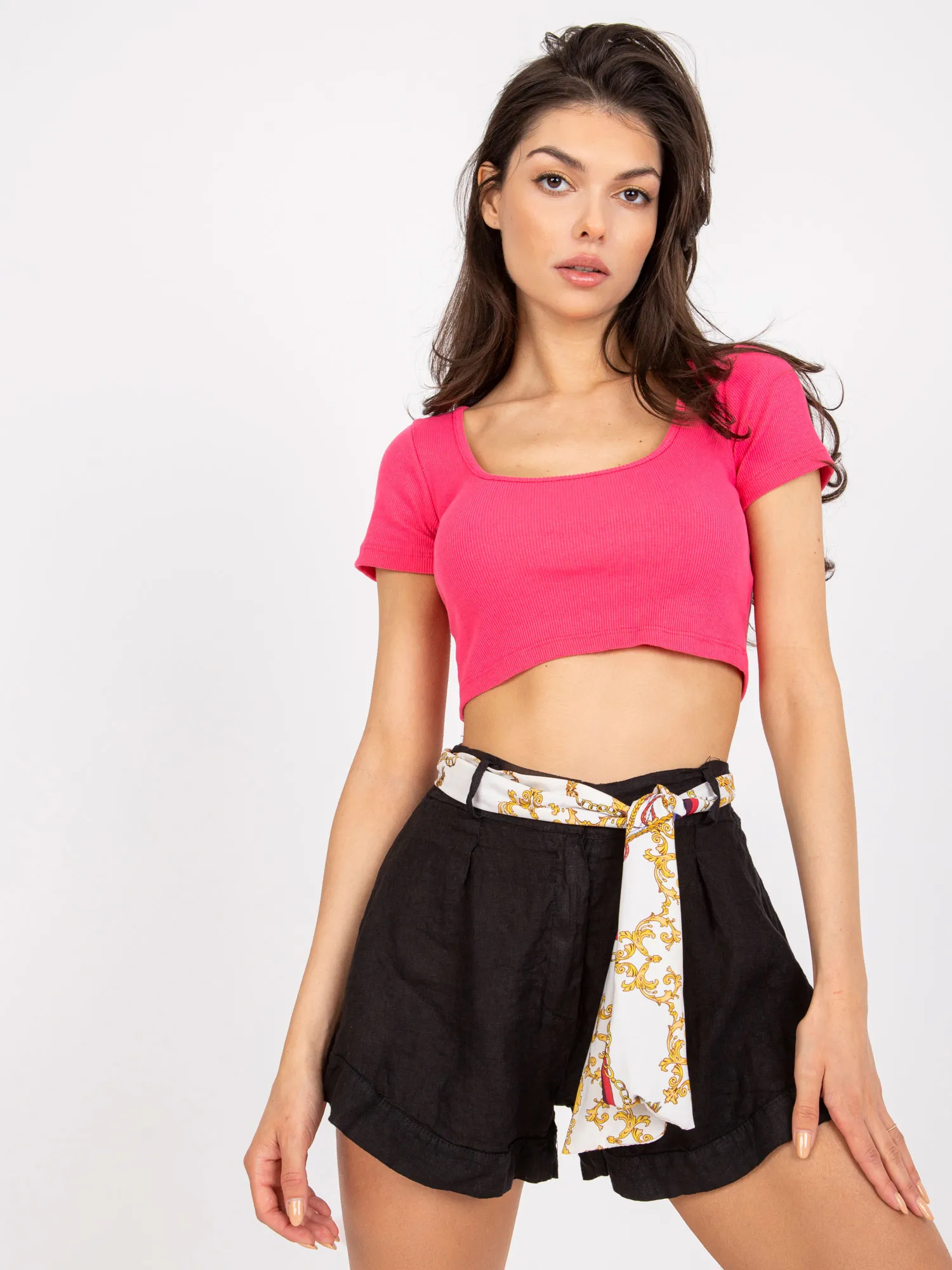 Vieno dydžio šortų matmenys, išmatuoti plokščiai: juosmens plotis - 33 cm, juosmens aukštis - 30 cm, bendras ilgis - 36 cm.