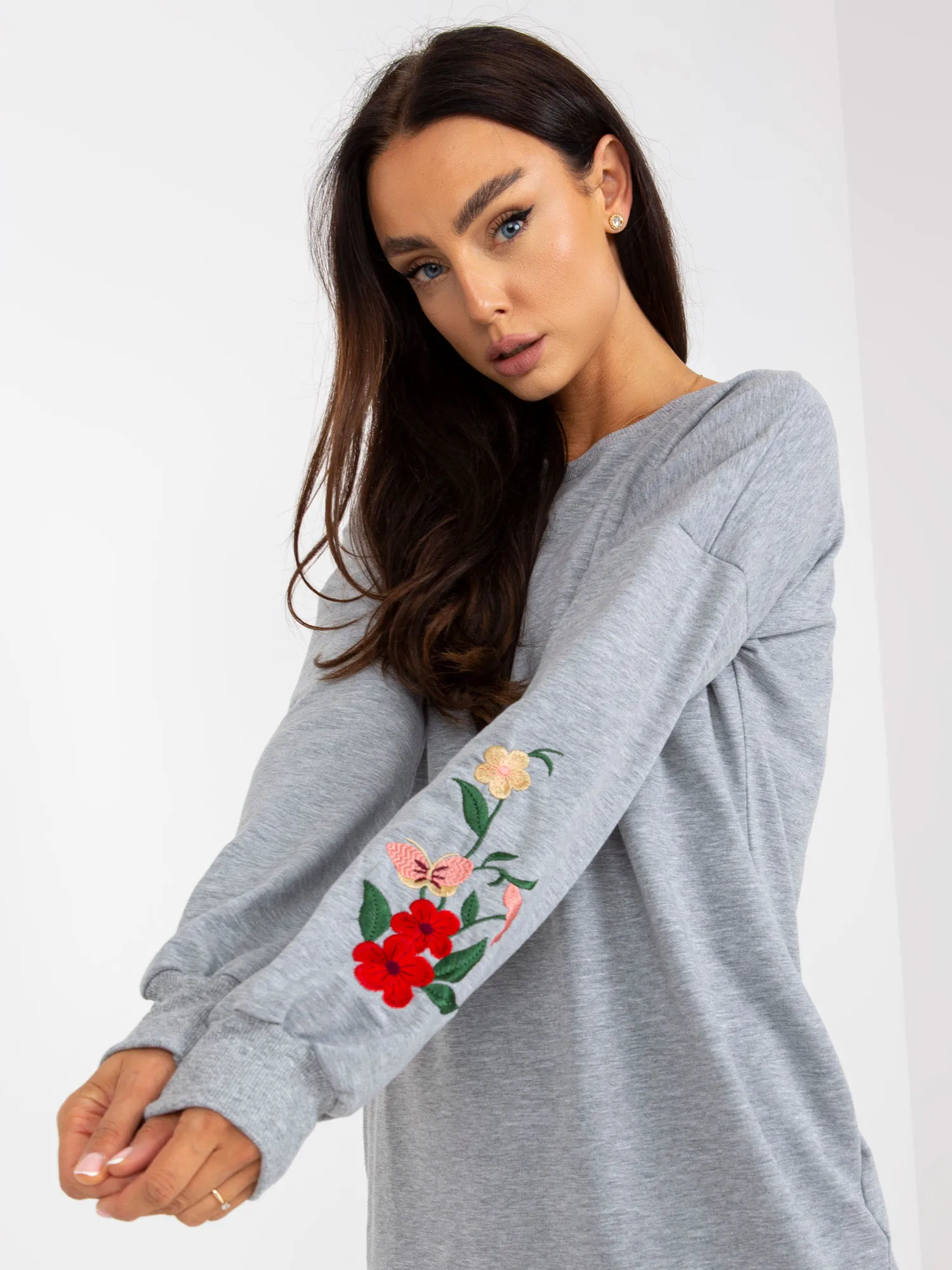 Pilka džemperio suknelė su siuvinėjimais ir kišenėmis RUE PARIS .