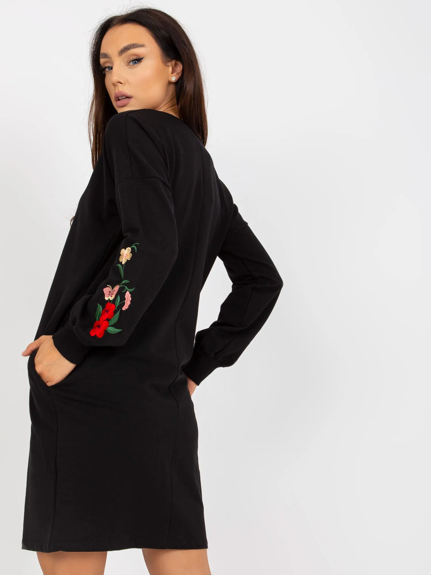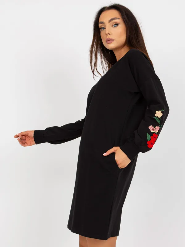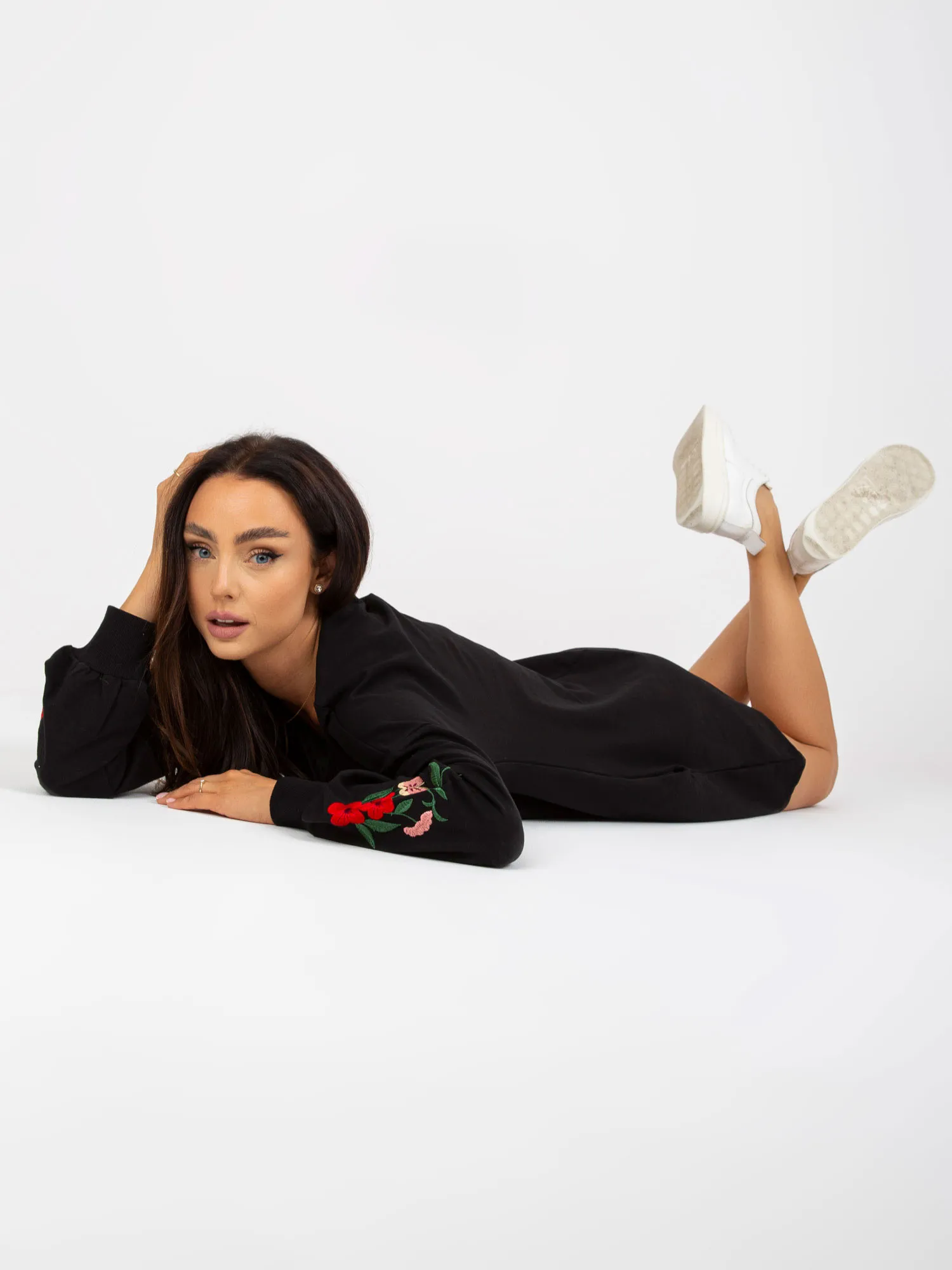 Czarna mini sukienka dresowa z haftem RUE PARIS .