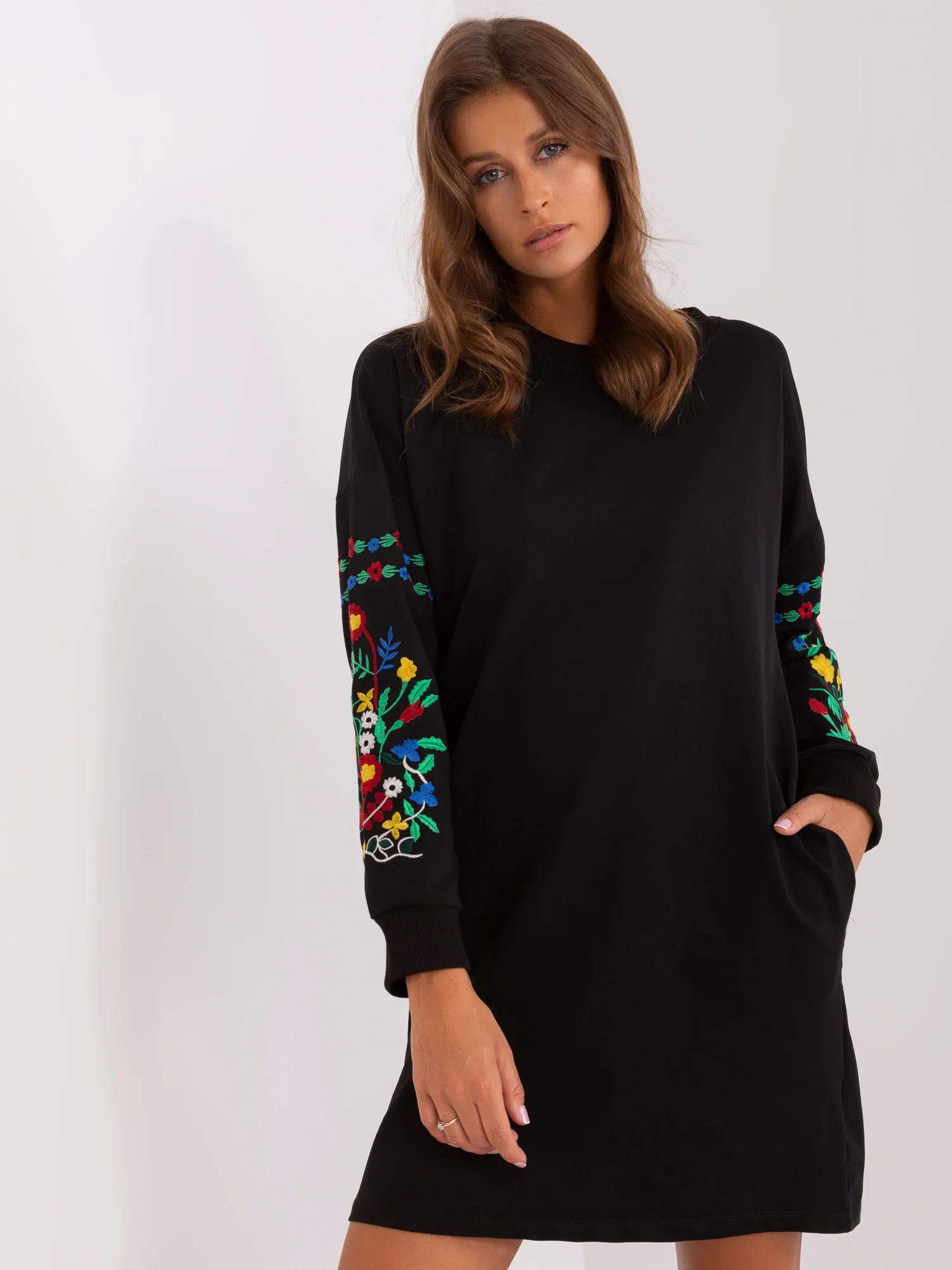 Czarna sukienka dresowa z kieszeniami RUE PARIS .
