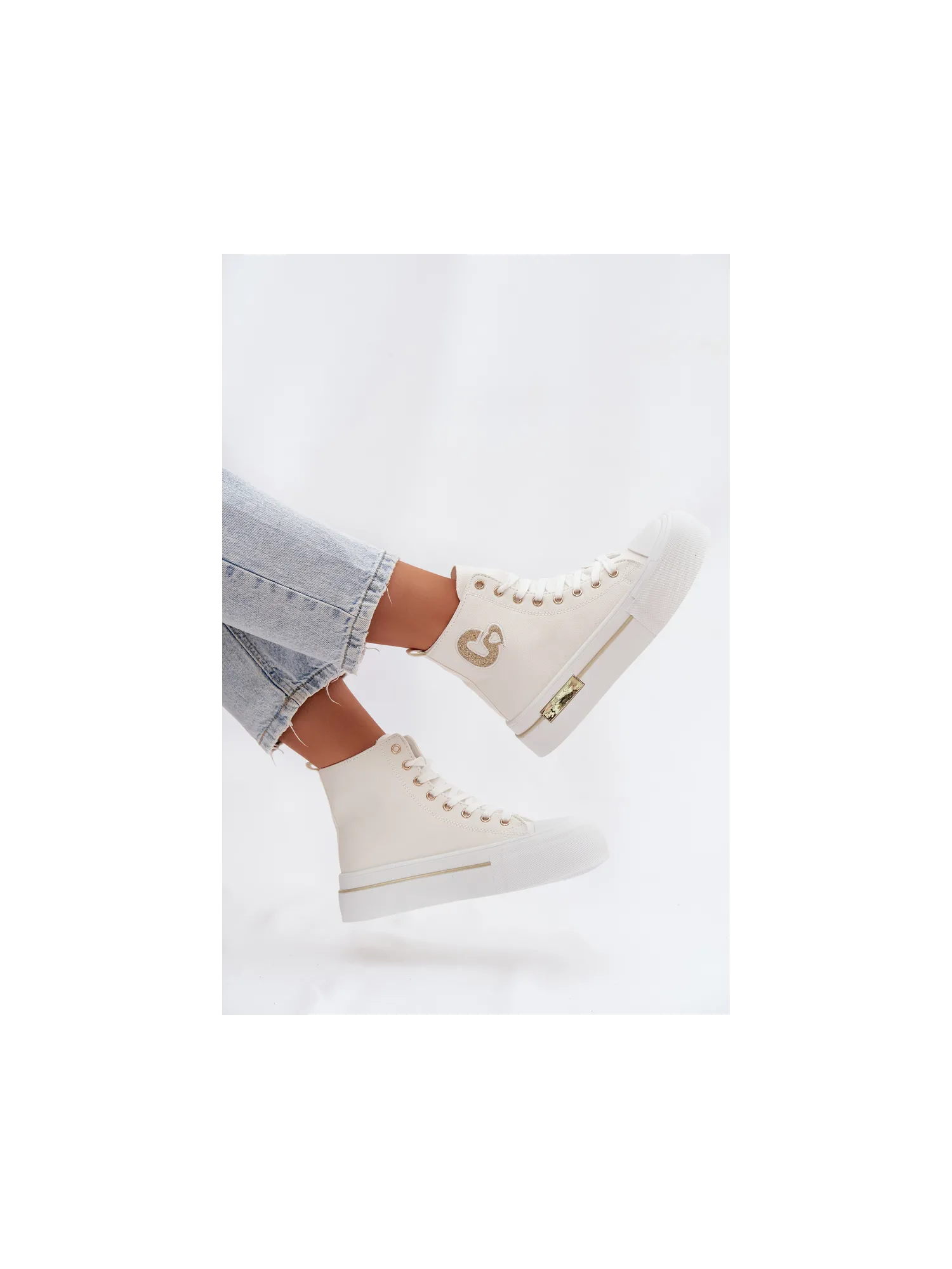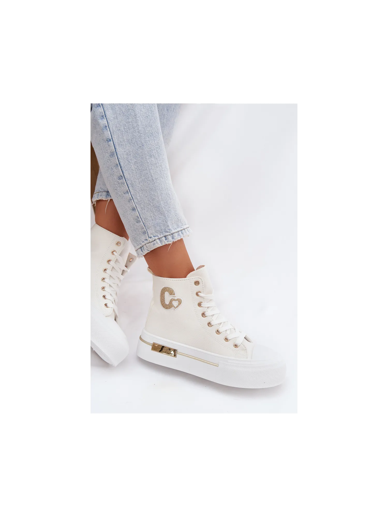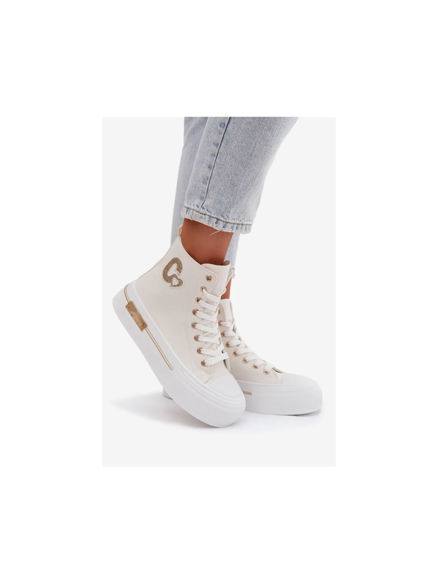 Women's sneakers with a chunky platform are a stylish everyday choice. The thick sole provides comfort and stability, and the gold element on the platform adds an elegant touch. On the side, there is a decorative patch that highlights the trendy character of the model. When choosing a size, please refer to the size chart.