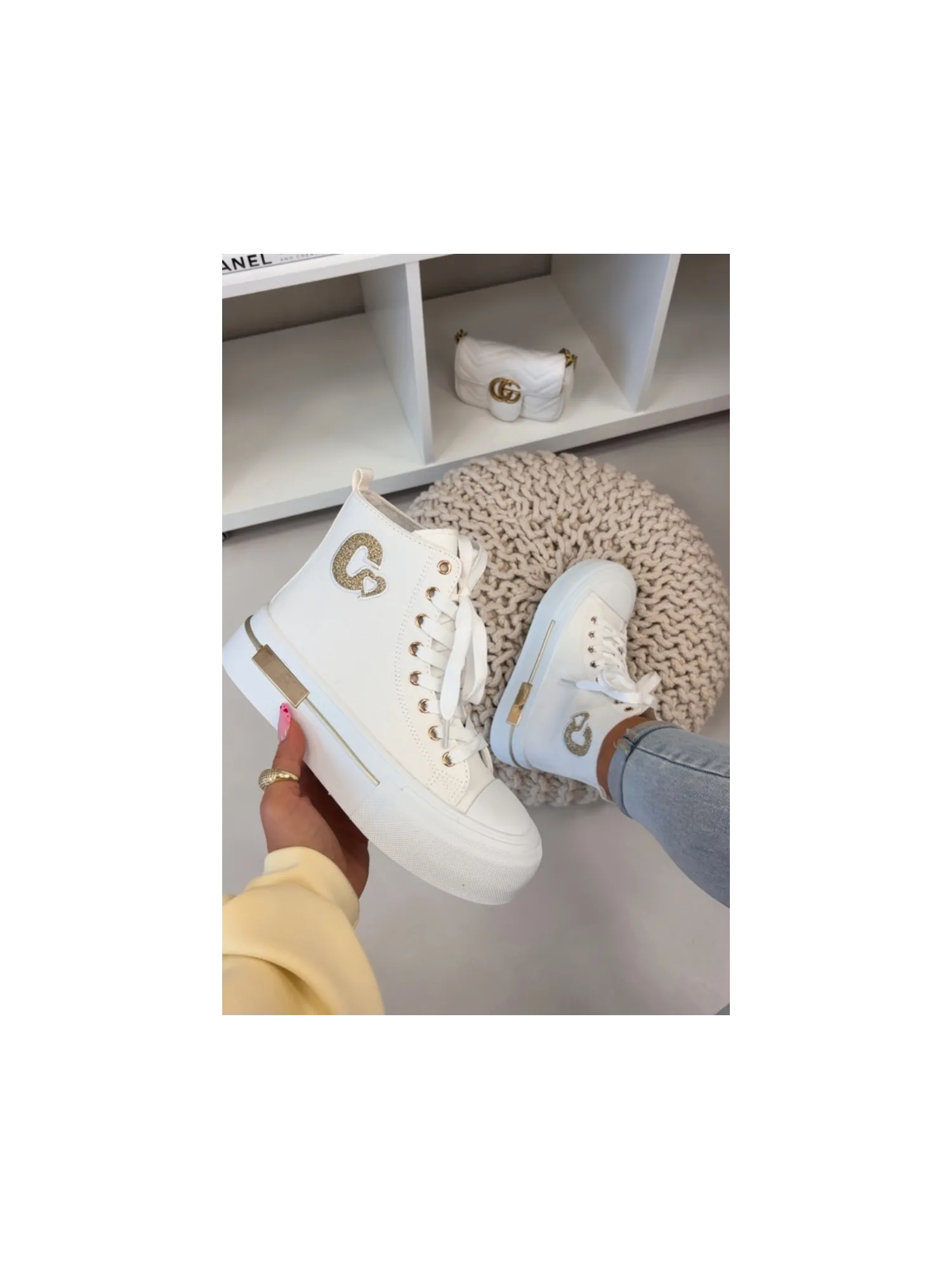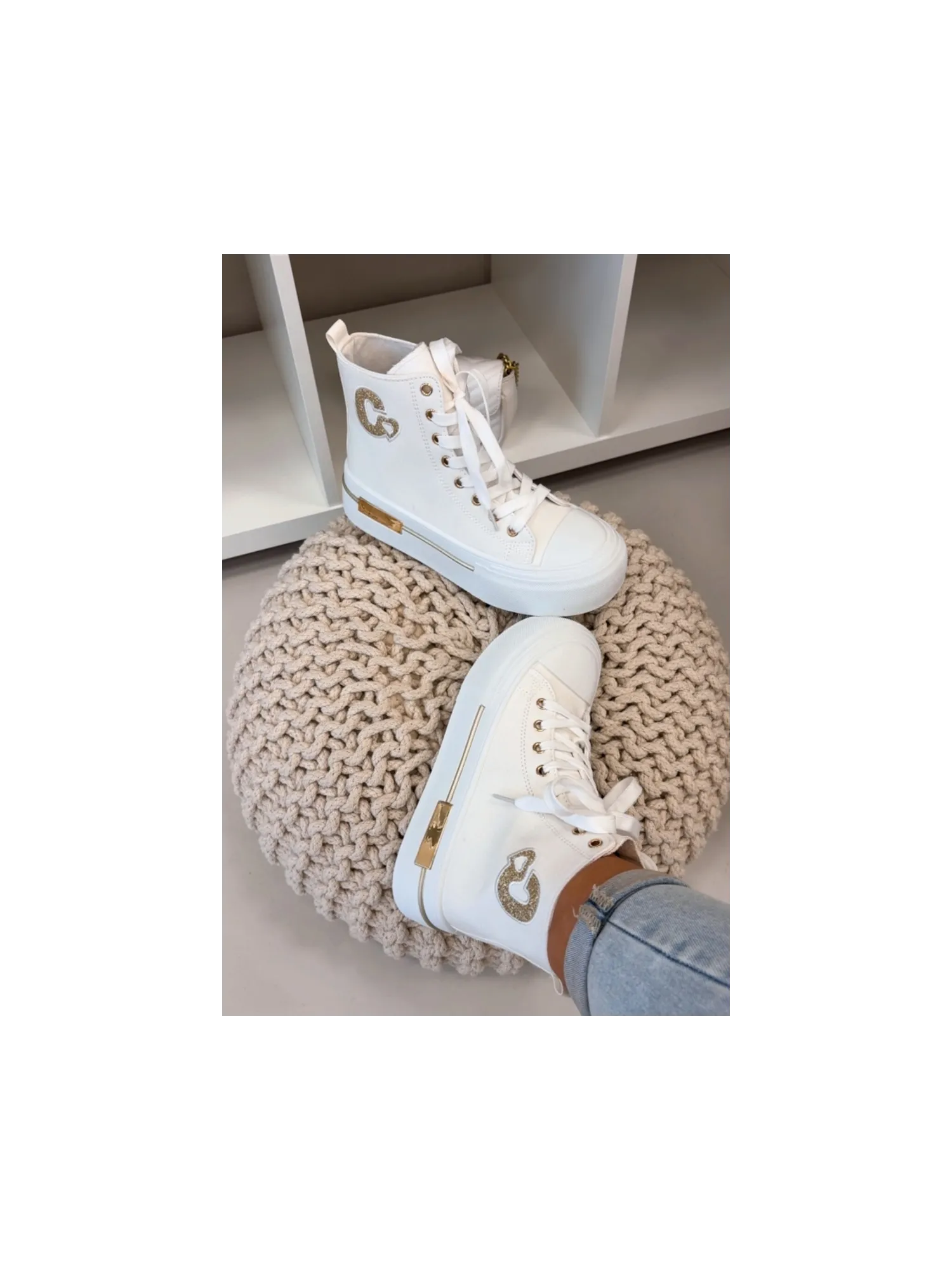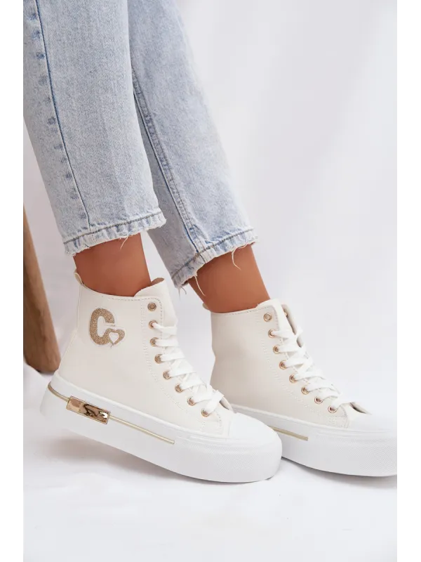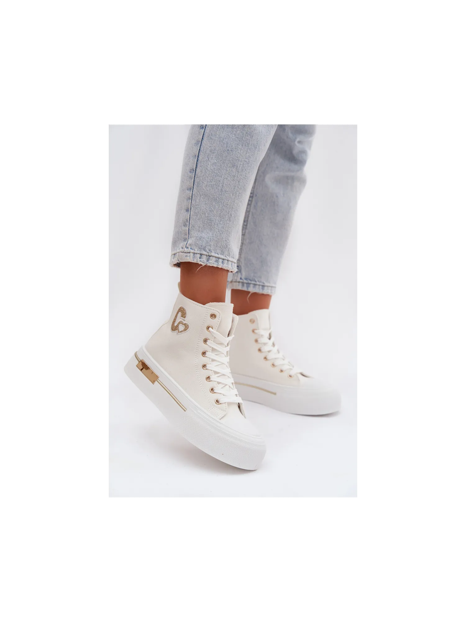 Women's sneakers with a chunky platform are a stylish everyday choice. The thick sole provides comfort and stability, and the gold element on the platform adds an elegant touch. On the side, there is a decorative patch that highlights the trendy character of the model. When choosing a size, please refer to the size chart.