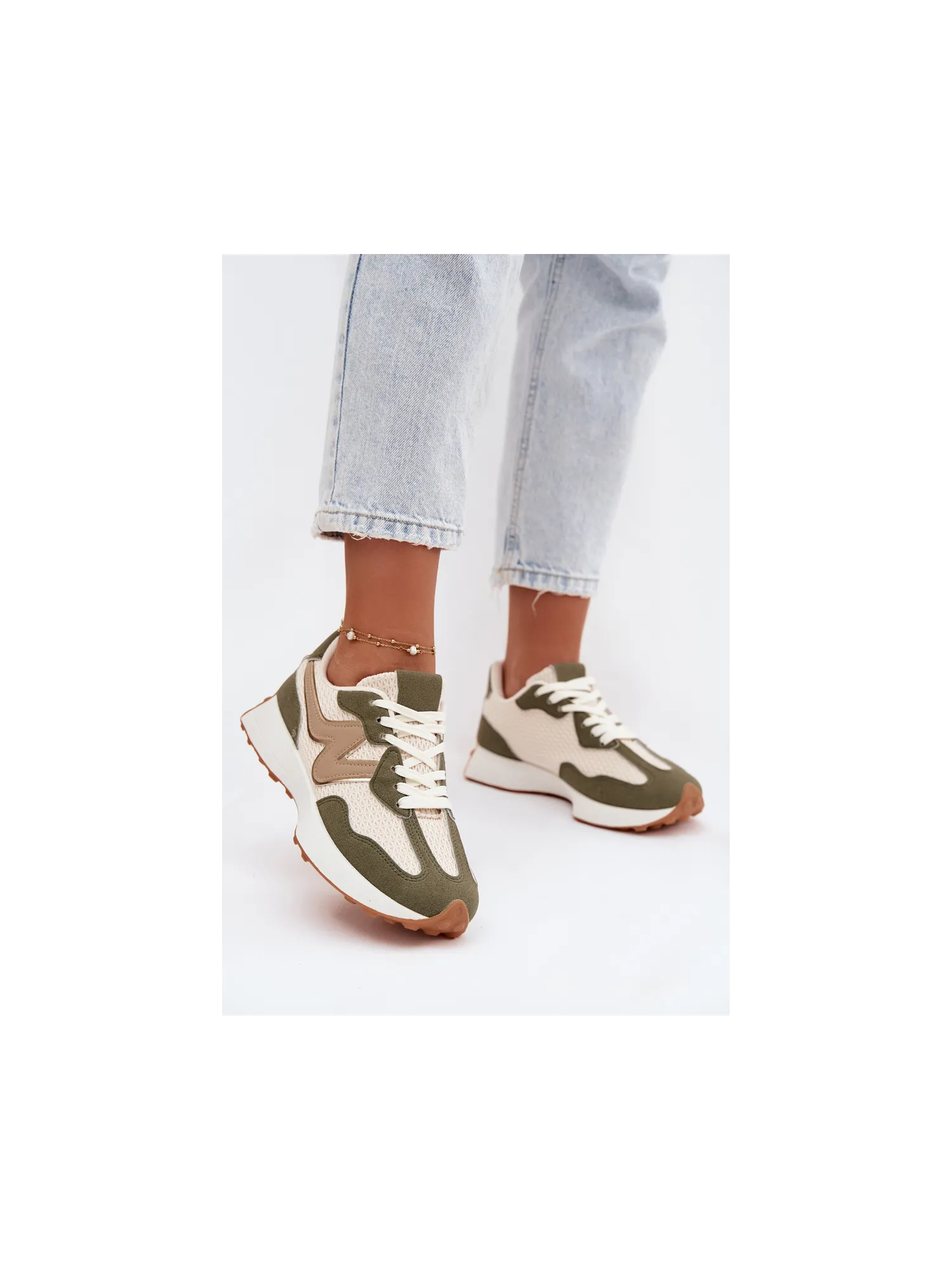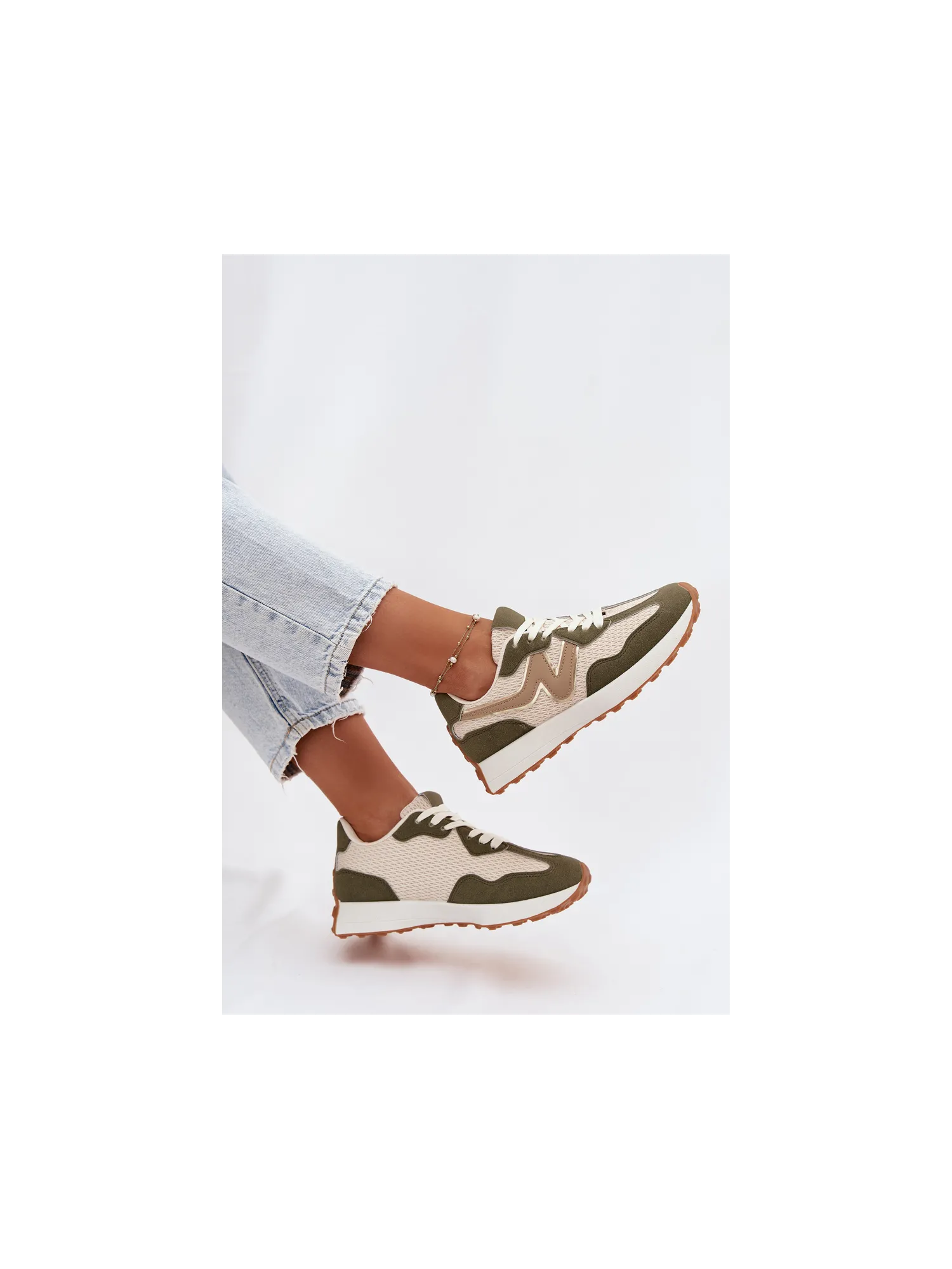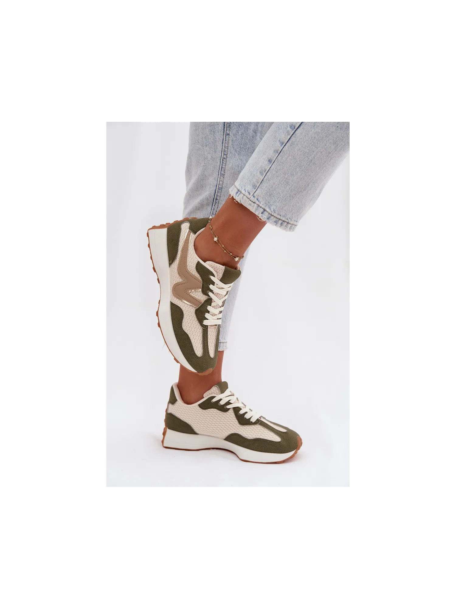 Women's sports shoes made from a combination of eco leather and textile material are a comfortable and stylish everyday option. The lacing allows for a perfect fit to the foot, ensuring stability while walking. The removable, soft insole increases comfort. The model is perfect for everyday sporty-casual styles, combining functionality with a fashionable look. When choosing a size, please refer to the size chart.