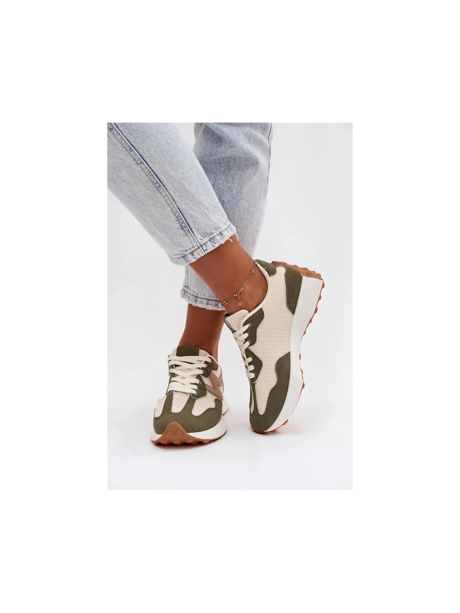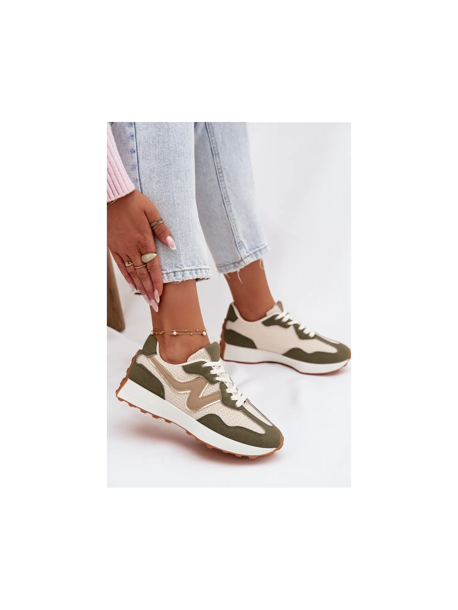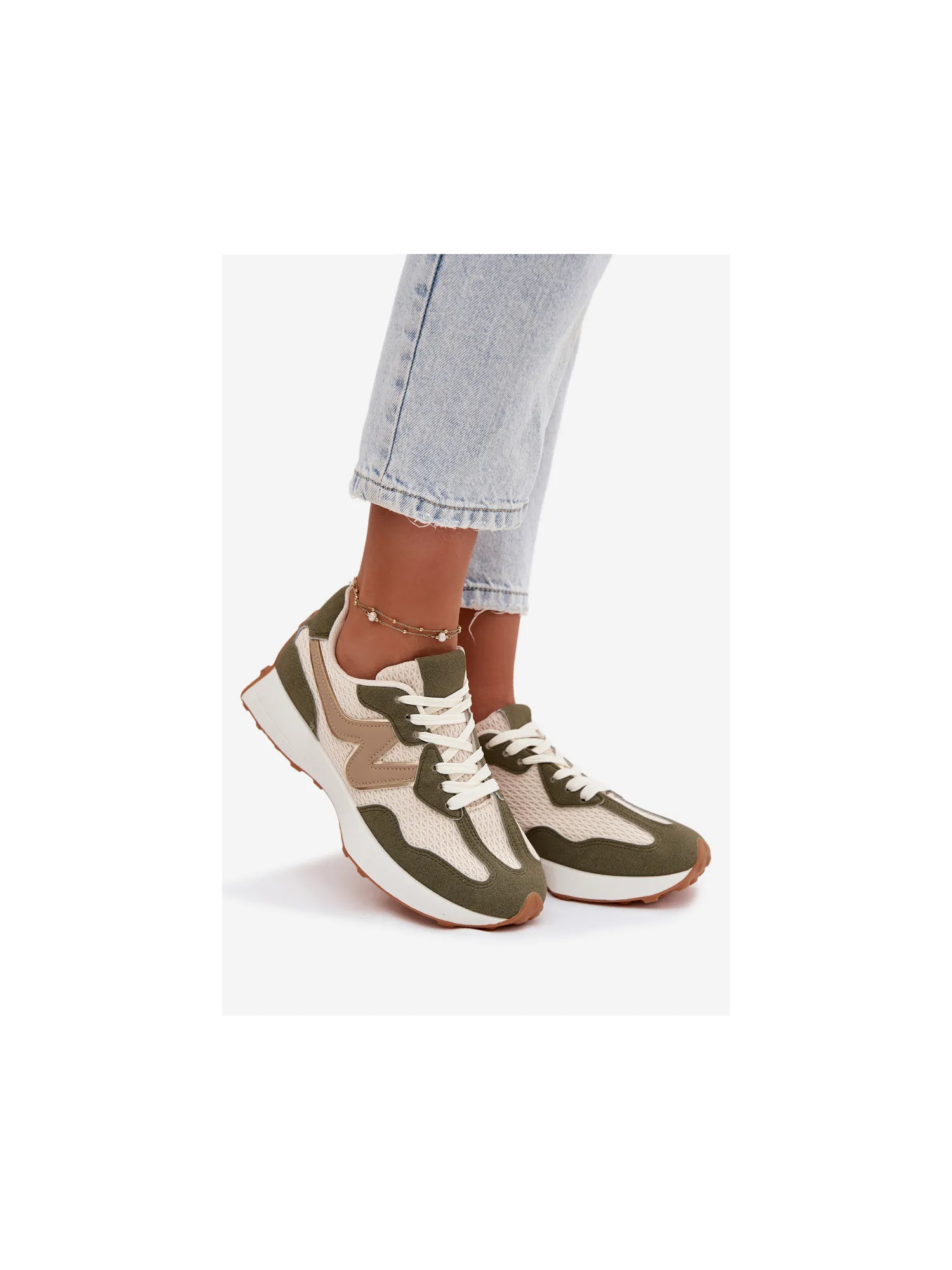 Women's sports shoes made from a combination of eco leather and textile material are a comfortable and stylish everyday option. The lacing allows for a perfect fit to the foot, ensuring stability while walking. The removable, soft insole increases comfort. The model is perfect for everyday sporty-casual styles, combining functionality with a fashionable look. When choosing a size, please refer to the size chart.