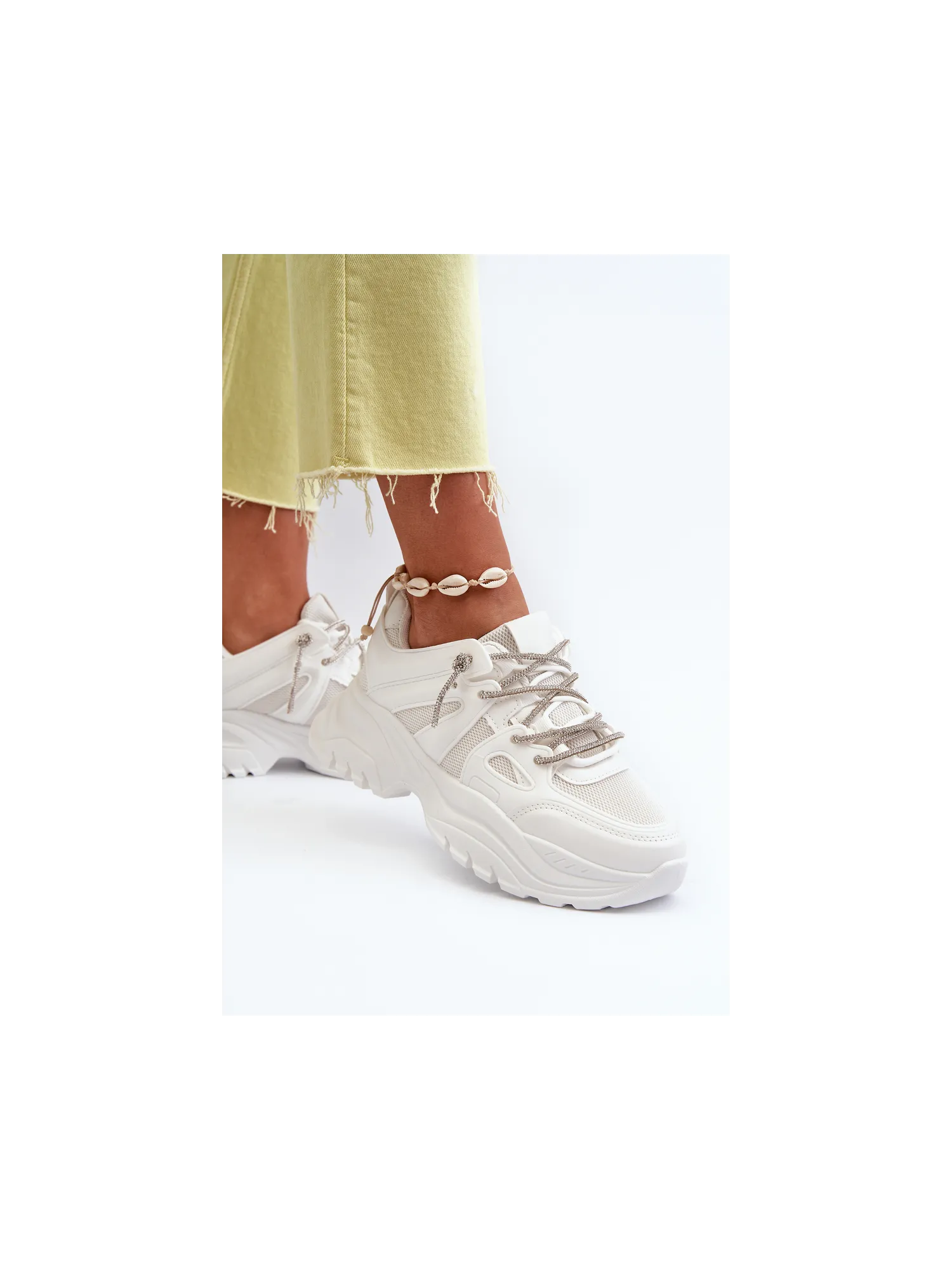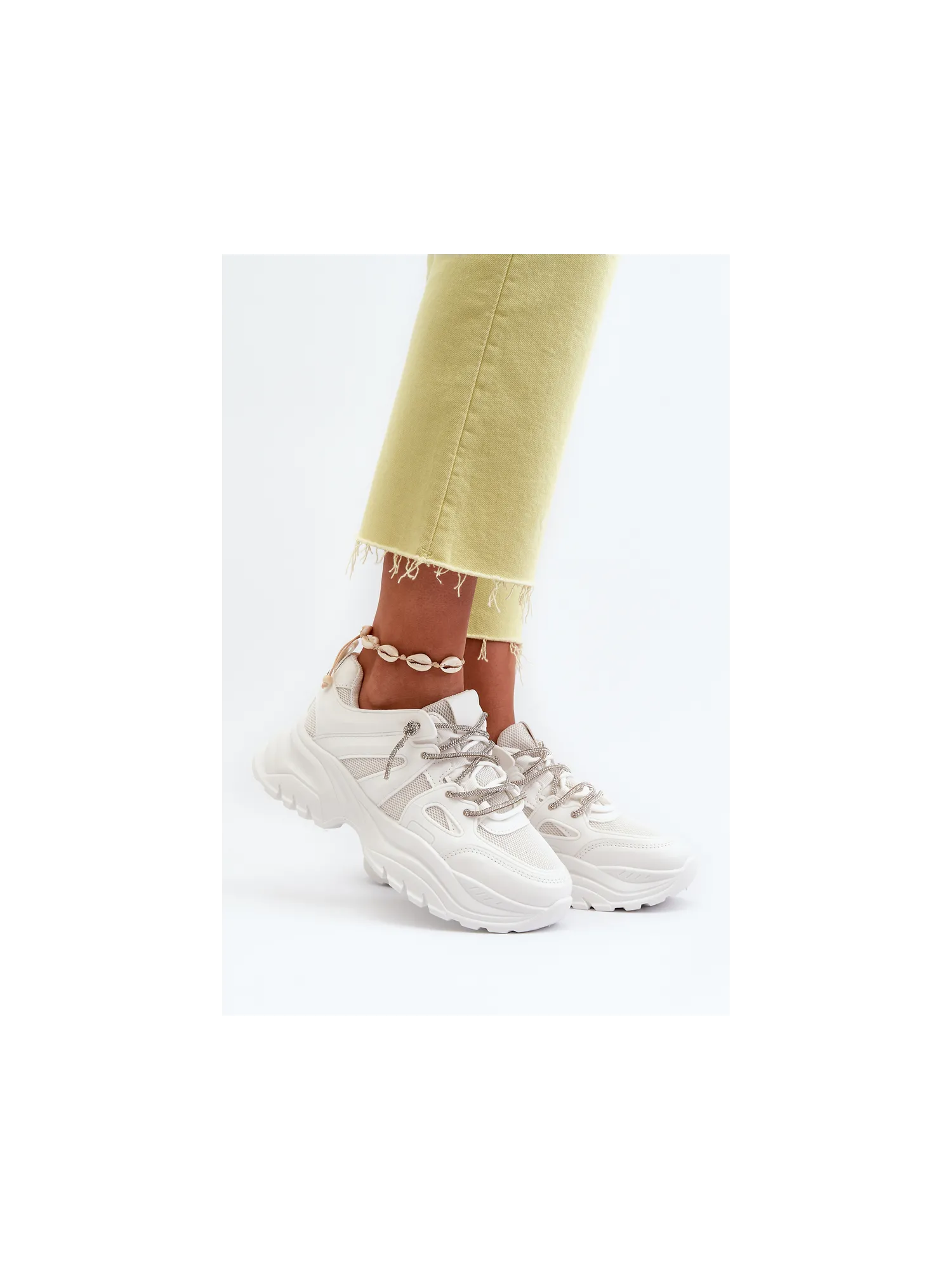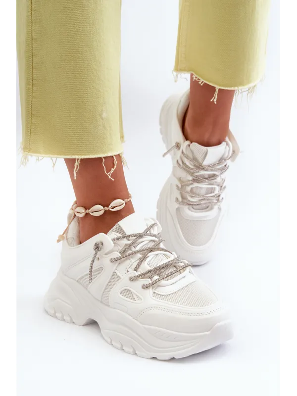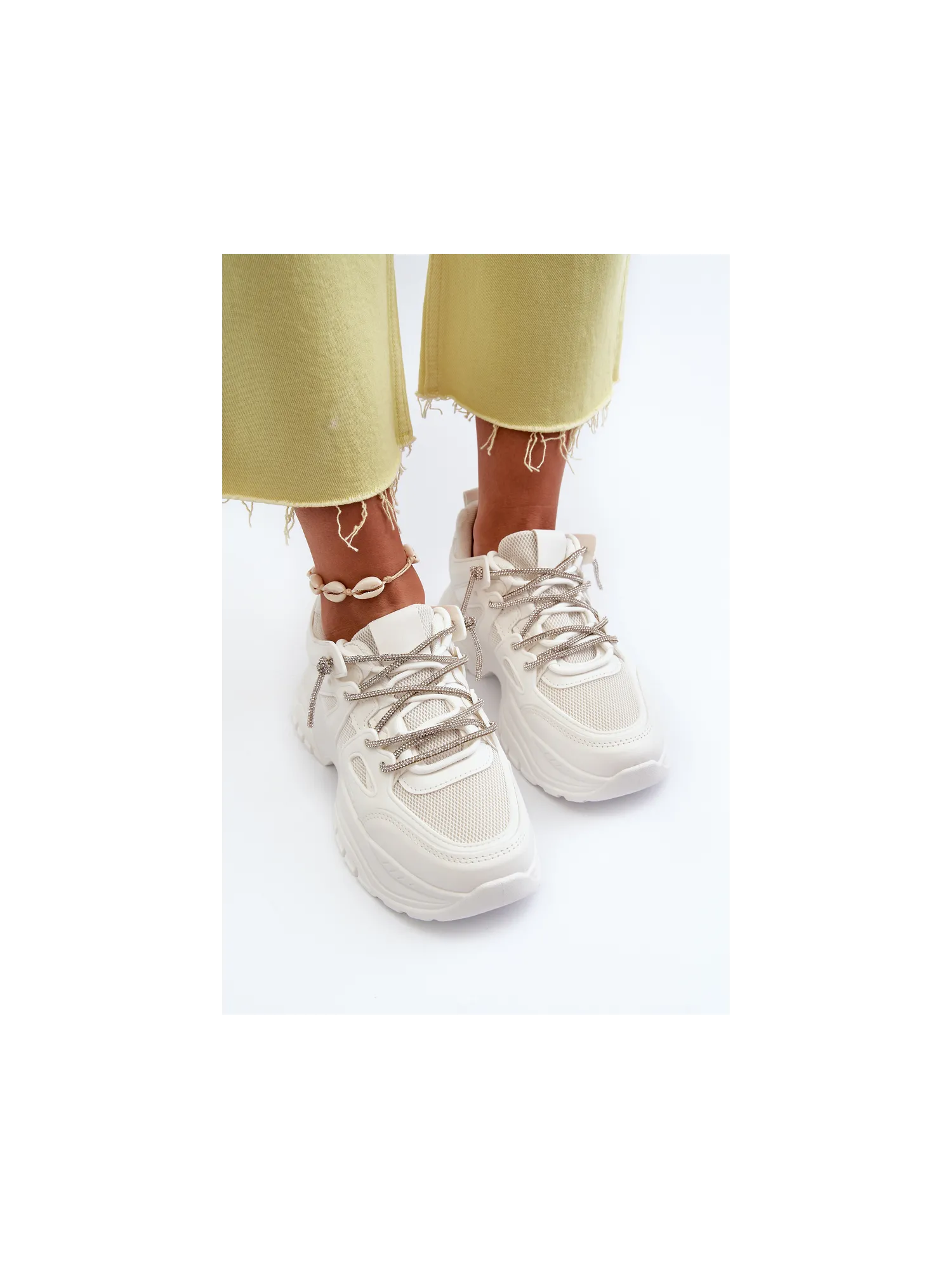 Moteriški sportbačiai su storu padu ir dekoratyviniu suvarstymu smėlio spalvos Relissa