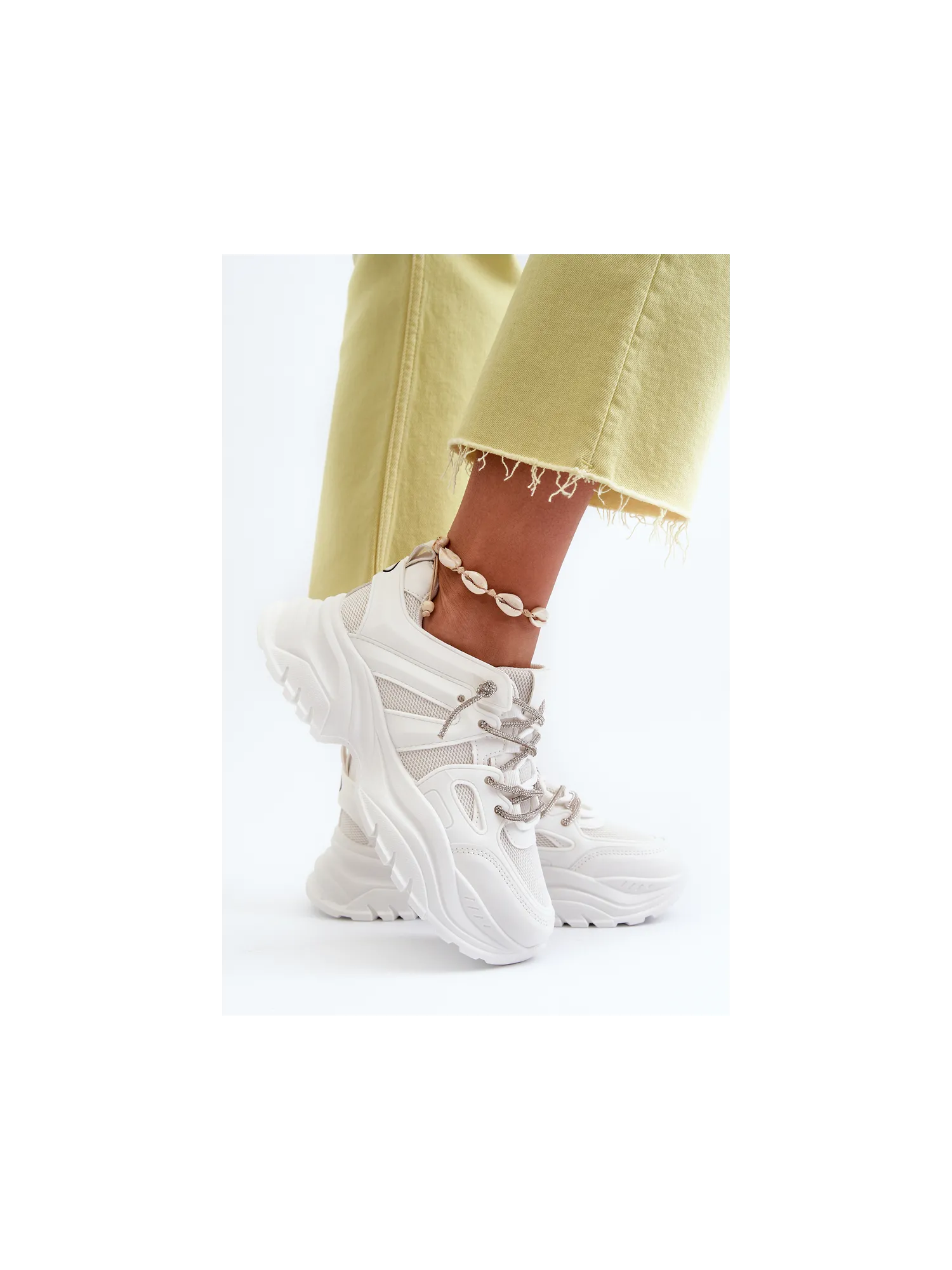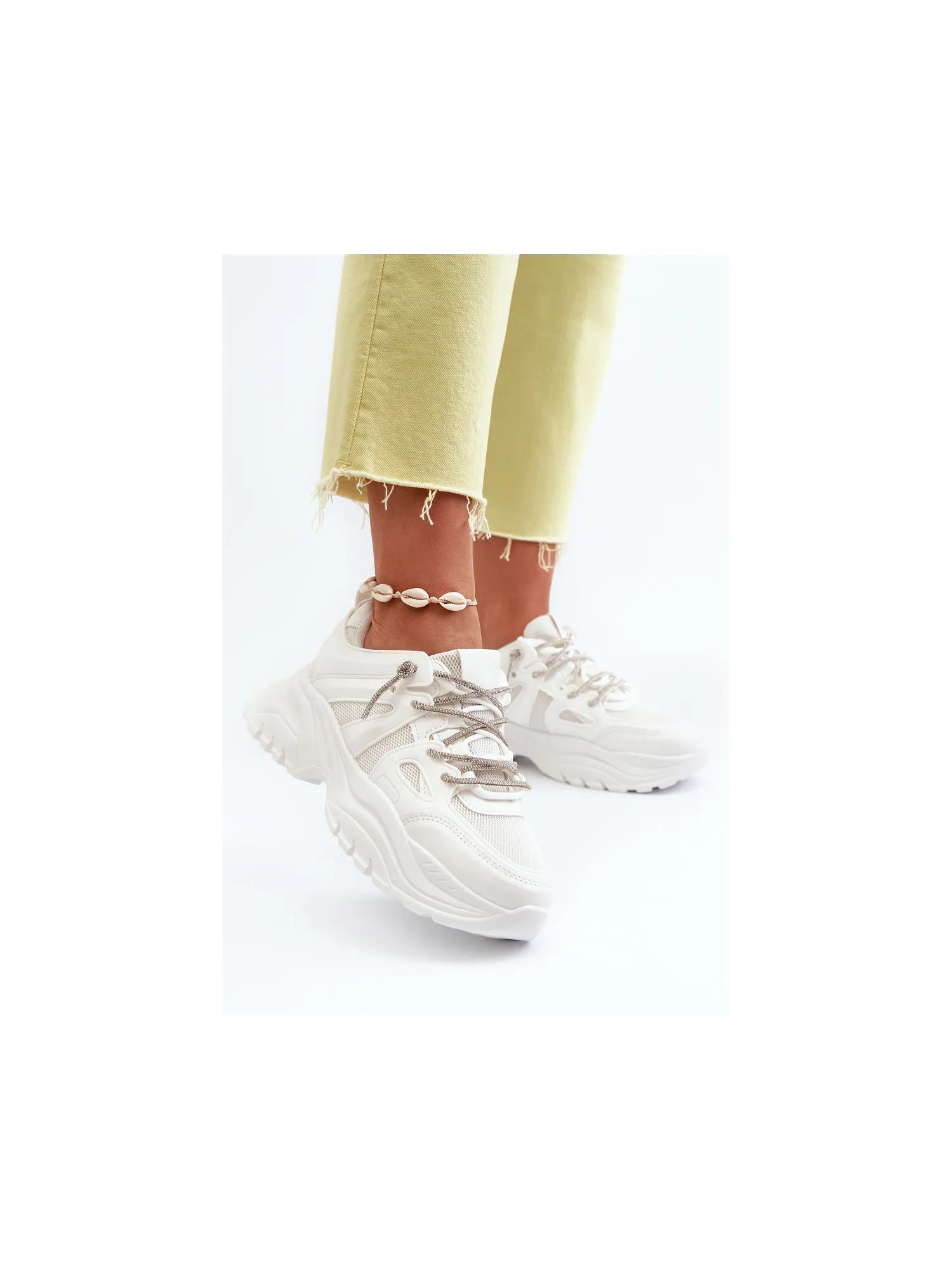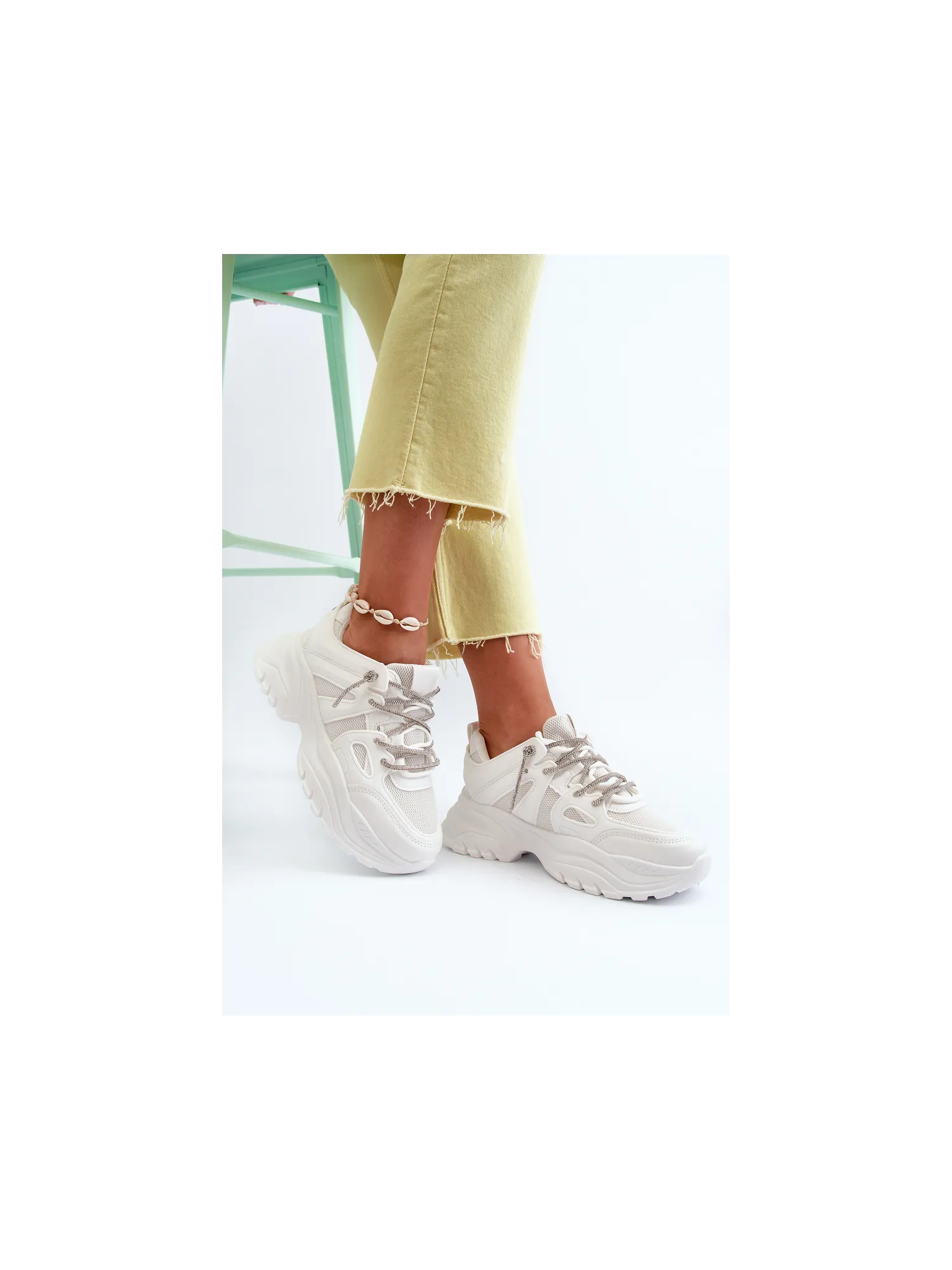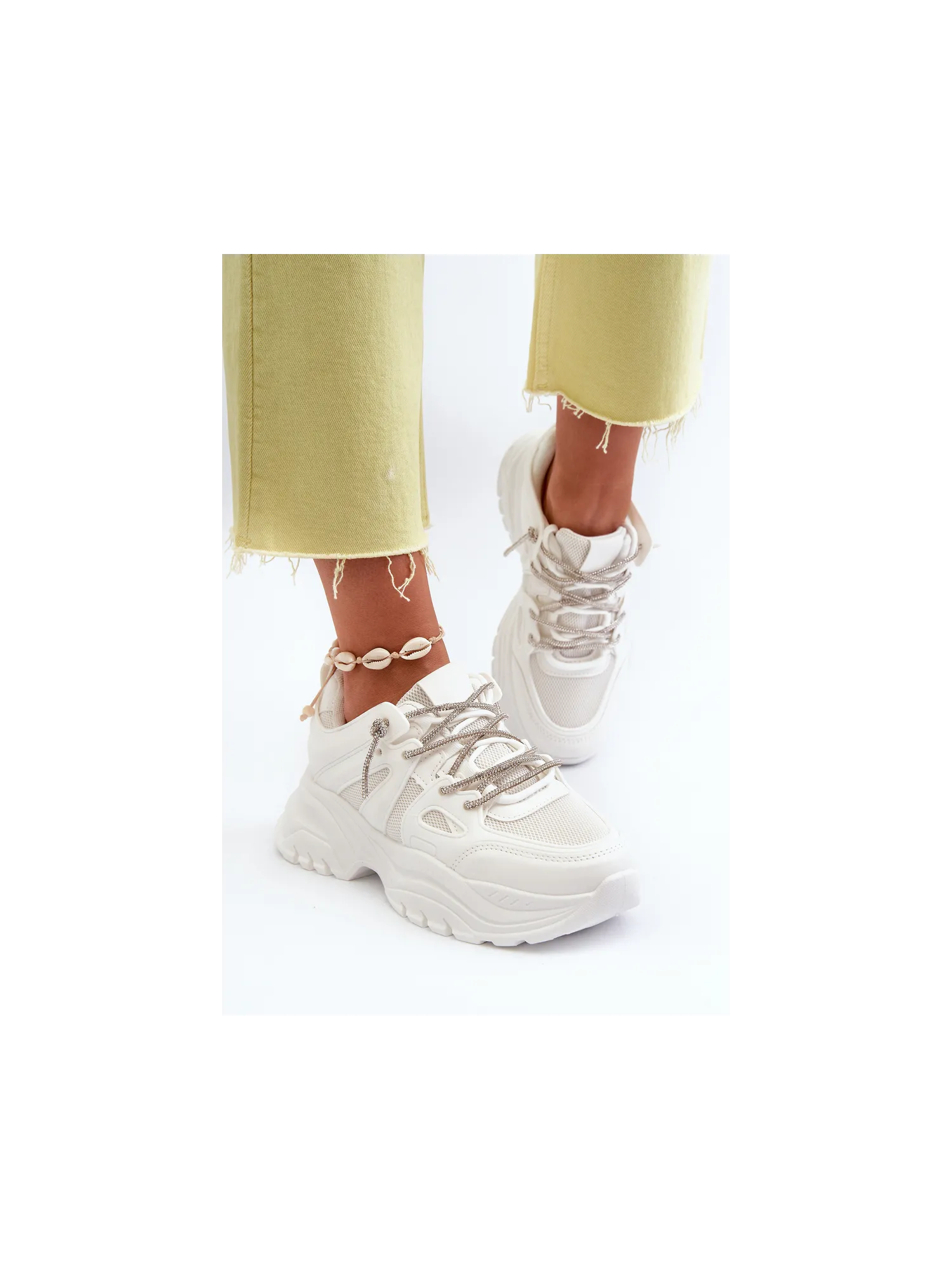Moteriški sportbačiai su storu padu ir dekoratyviniu suvarstymu smėlio spalvos Relissa