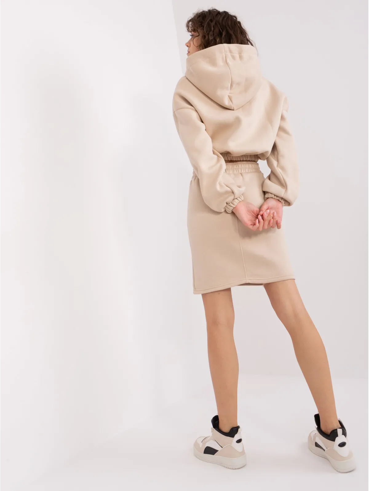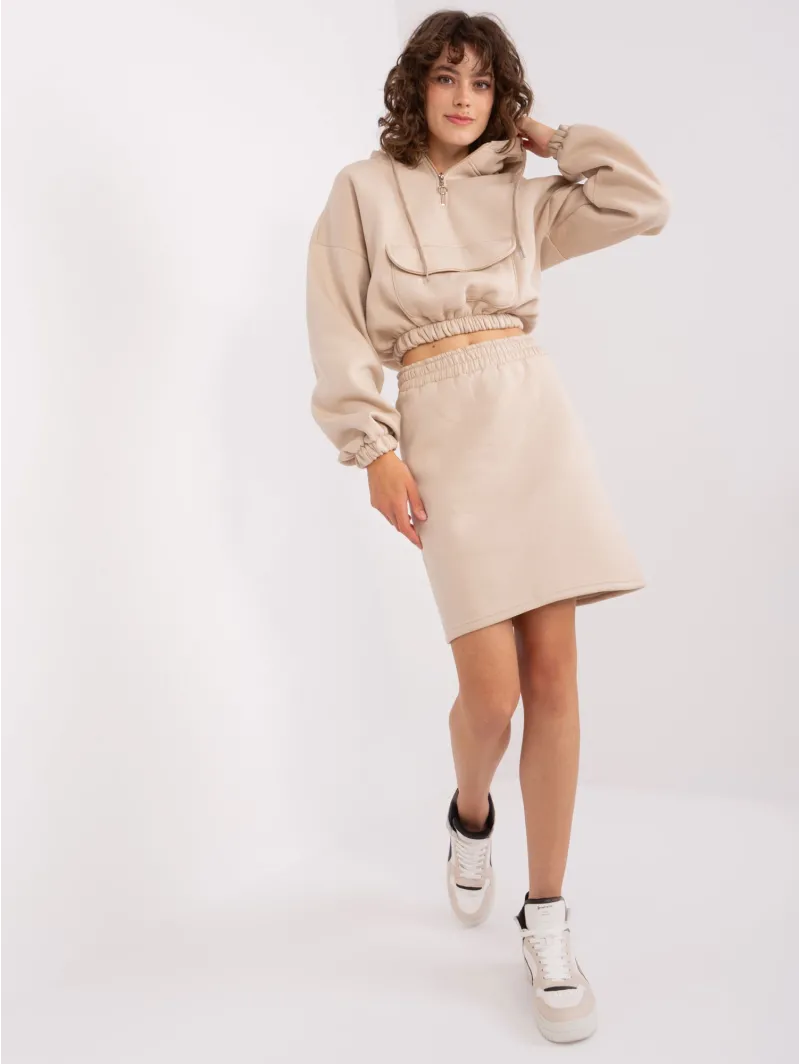 Komplekto one size dydžio išmatavimai: krūtinė - 58 cm, bendras palaidinės ilgis - 47 cm, rankovių ilgis - 58 cm, juomsens plotis - 36 cm, bendras sijono ilgis - 48 cm.
