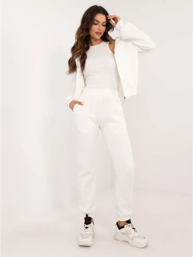 Vieno dydžio striukės matmenys matuojant plokščią: plotis po pažastimis - 58 cm, megztinio ilgis - 58 cm, rankovės ilgis - 67 cm, viršutinės dalies plotis po pažastimis - 42 cm, viršaus ilgis - 50 cm, kelnių plotis ties juosmeniu - 33 cm, kelnių ilgis - 98 cm.