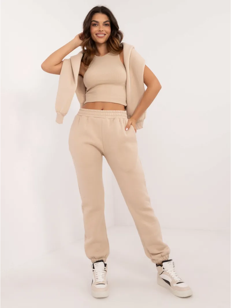 Vieno dydžio striukės matmenys matuojant plokščią: plotis po pažastimis - 58 cm, megztinio ilgis - 58 cm, rankovių ilgis - 67 cm, viršutinės dalies plotis po pažastimis - 42 cm, viršutinės dalies ilgis - 50 cm, kelnių plotis ties juosmeniu - 33 cm, kelnių ilgis - 98 cm.