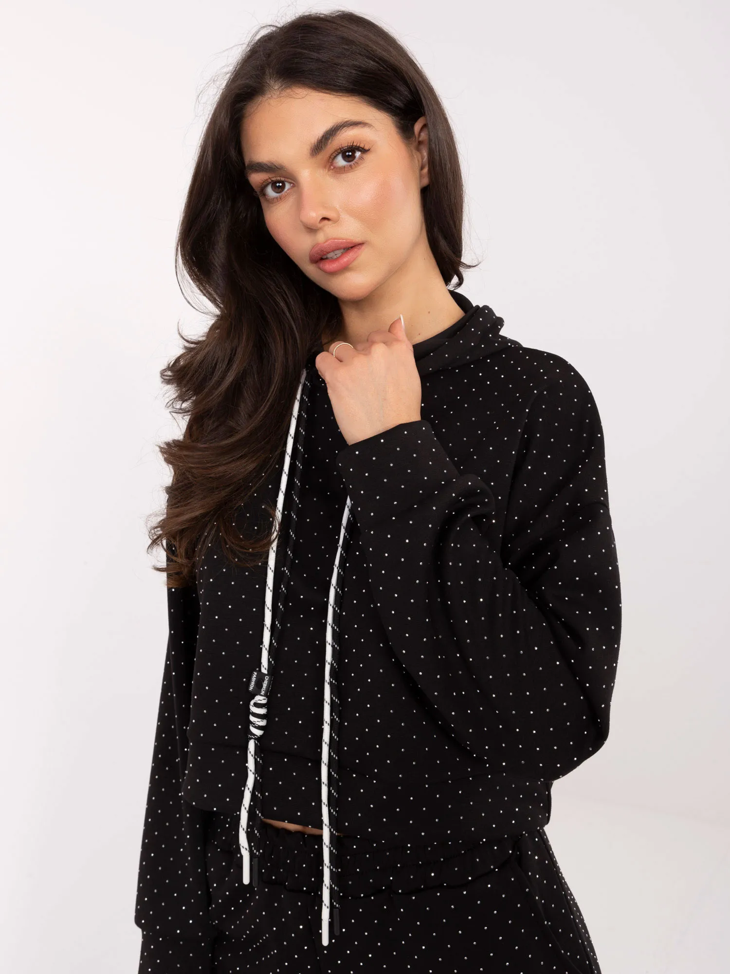 Modelis dėvi vieno dydžio dydį. Modelio išmatavimai: ūgis 173 cm, krūtinė 85 cm, juosmuo 62 cm, klubai 95 cm