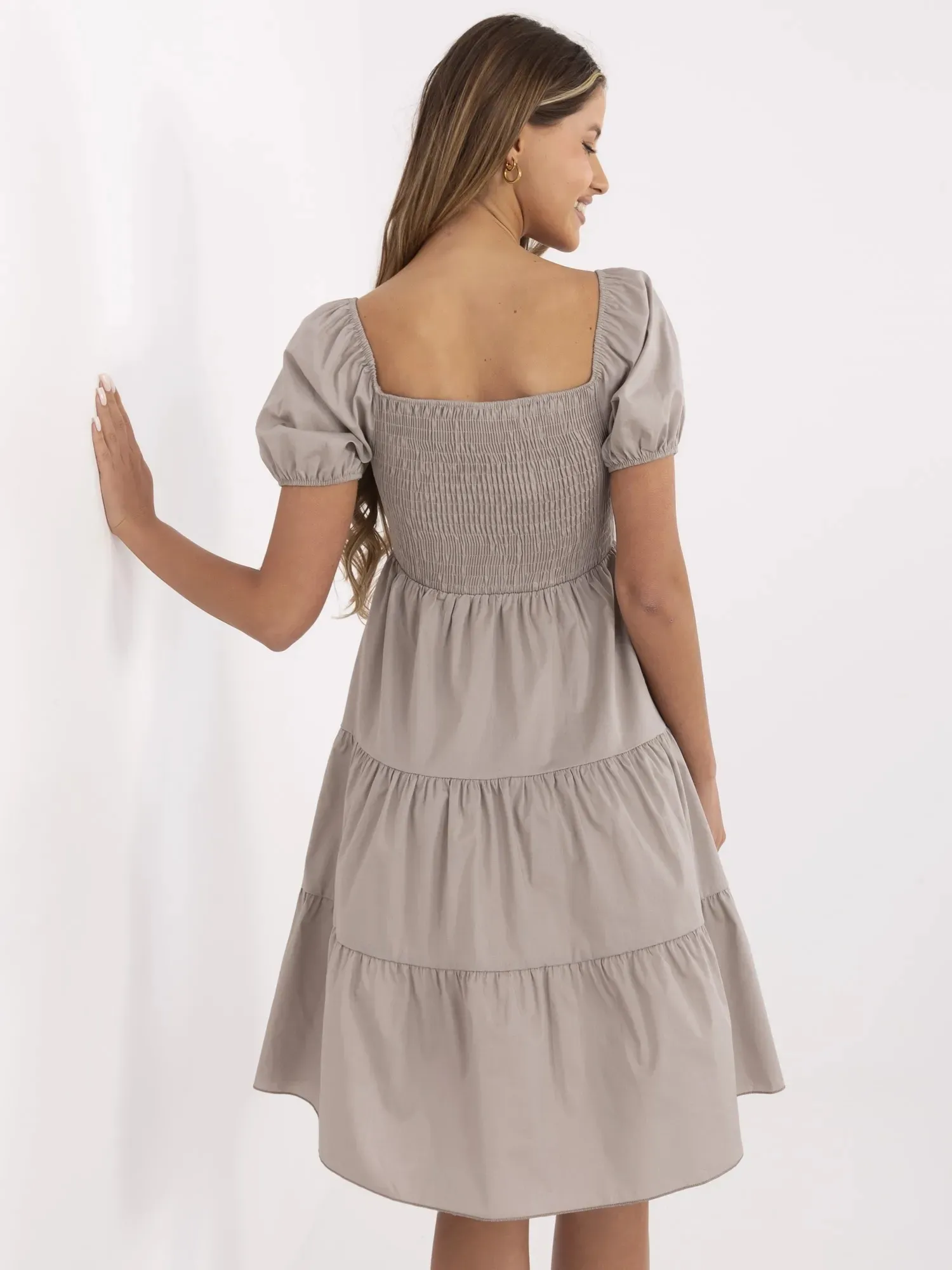 Suknelė-MI-SK-A2561.89-tamsiai smėlio spalvos