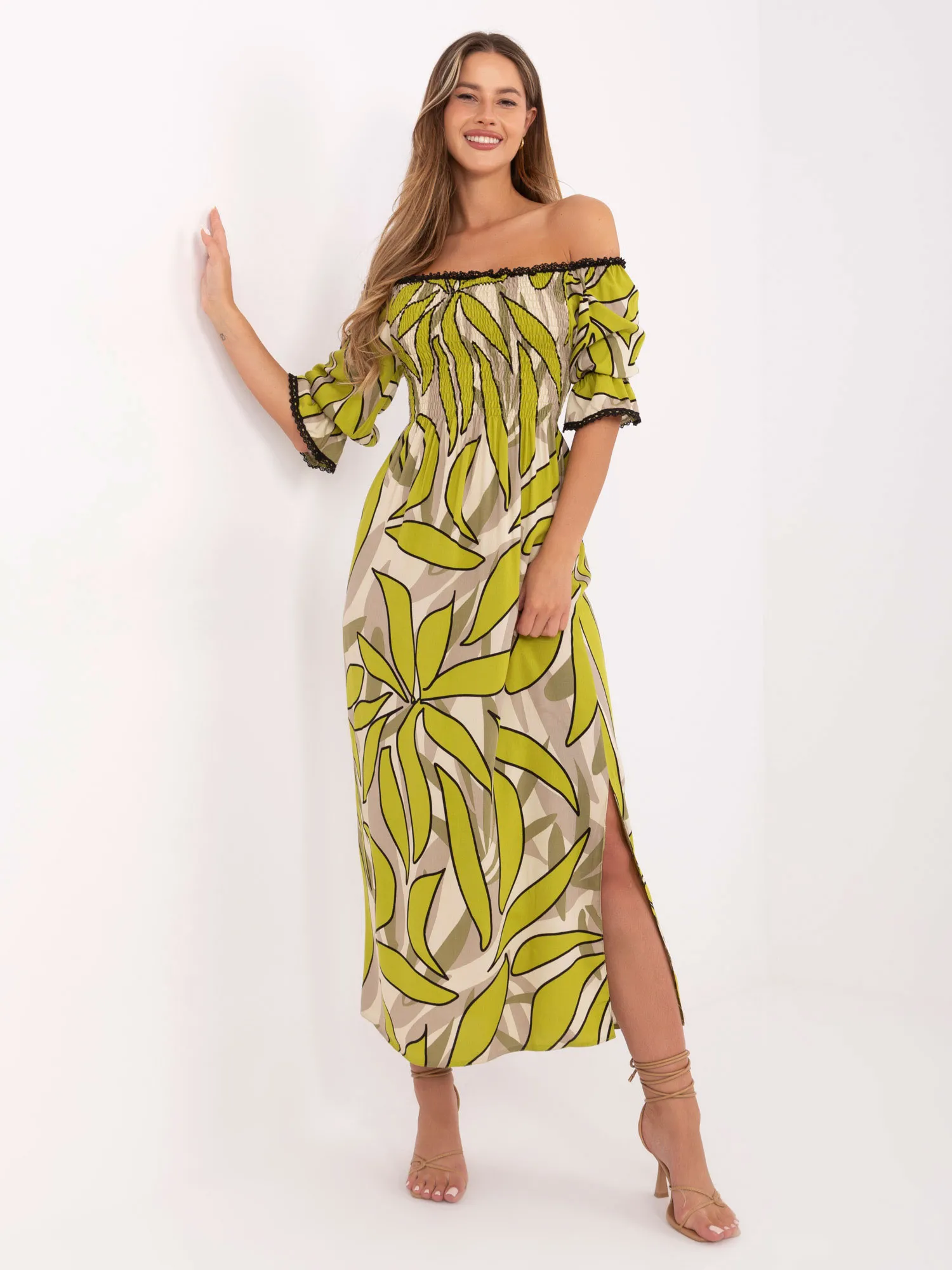 Wymiary sukienka w rozmiarze S/M: szerokość pod pachami - 22 cm (na płasko), szerokość pod pachami - 55 cm (po rozciągnięciu), szerokość w talii - 20 cm (na płasko), szerokość w talii - 20 cm (po rozciągnięciu), szerokość w biodrach - 59 cm, długość rękawa - 49 cm, długość całkowita - 132 cm .