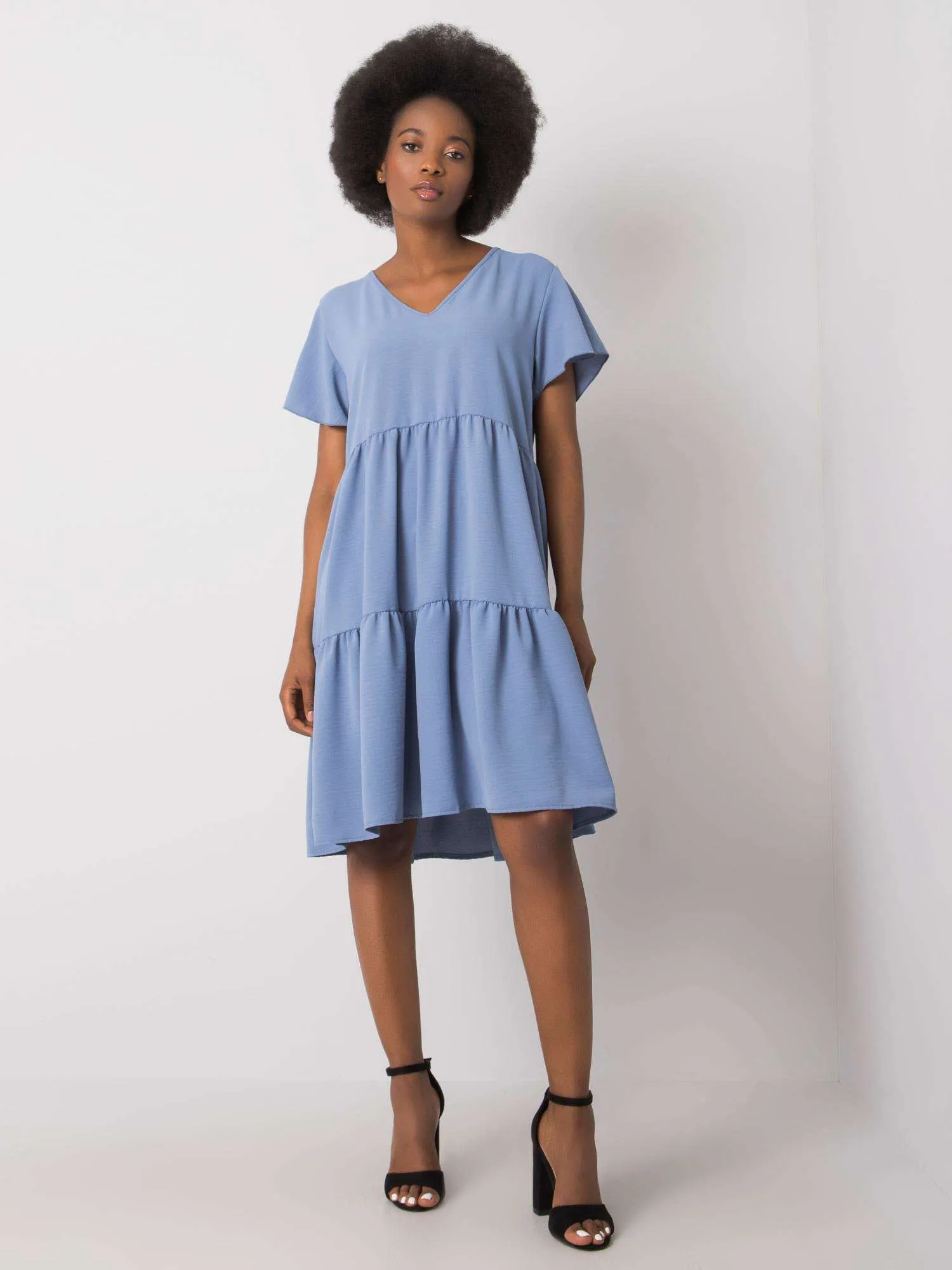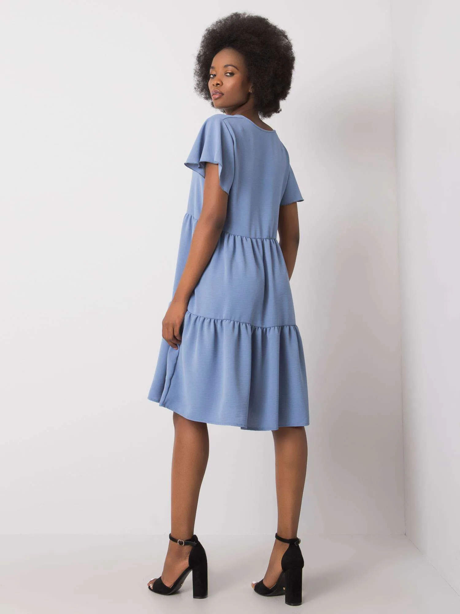 RUE PARIS Mėlyna moteriška suknelė su raukiniais .