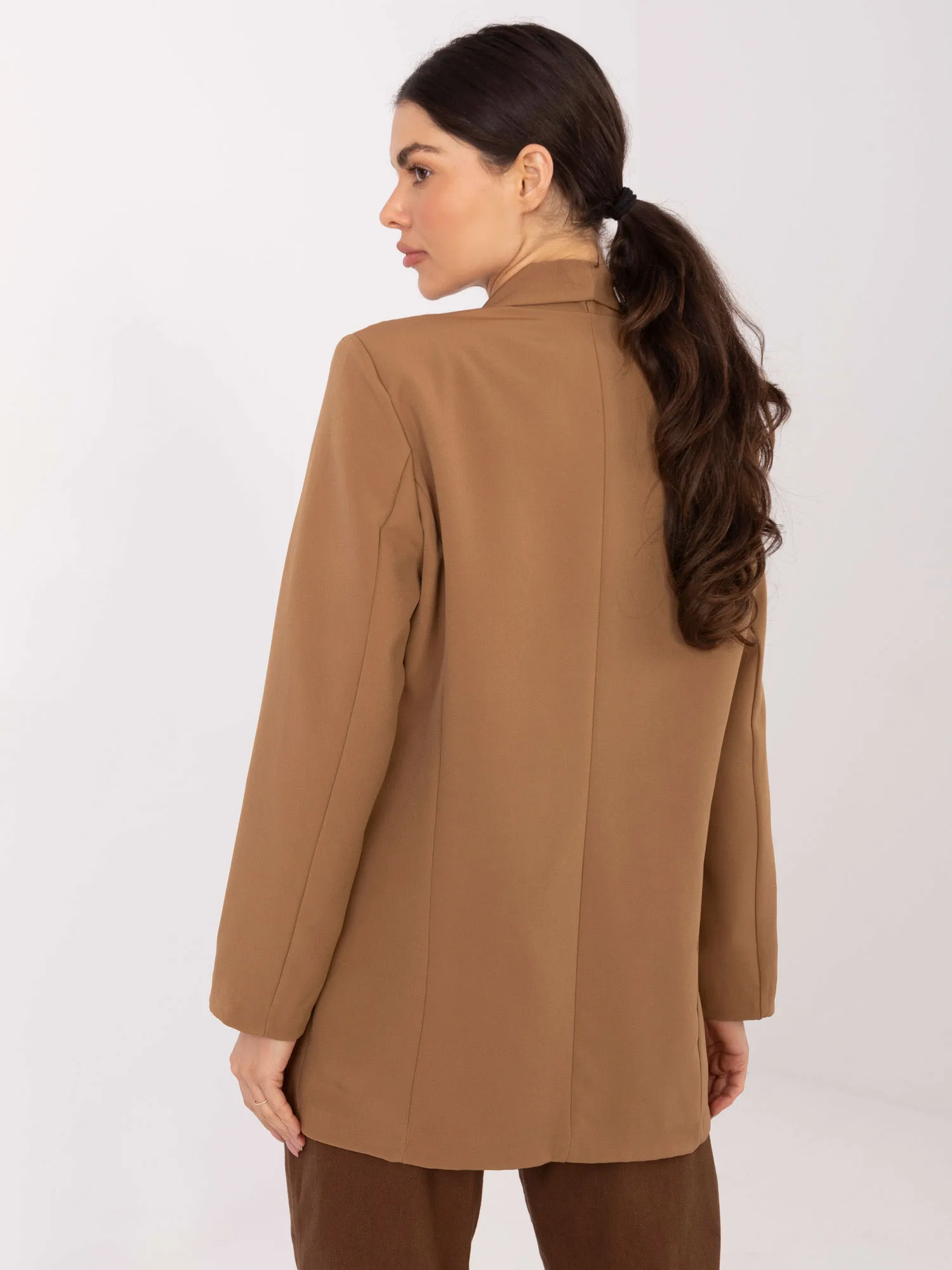 Wymiary marynarki w rozmiarze one size mierzone na płasko: szerokość pod pachami - 54 cm, długość rękawa - 59 cm, szerokość w biodrach -56 cm, długość całkowita - 76 cm.