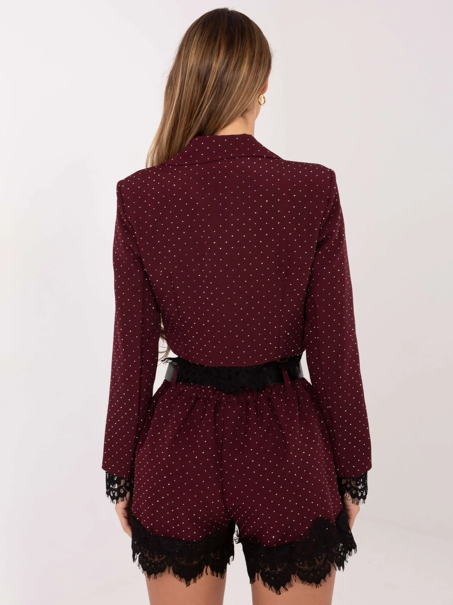 Modelis dėvi pirmąjį dydį. Modelio išmatavimai: ūgis 176 cm, krūtinės apimtis 90 cm, juosmuo 62 cm, klubai 94 cm .
