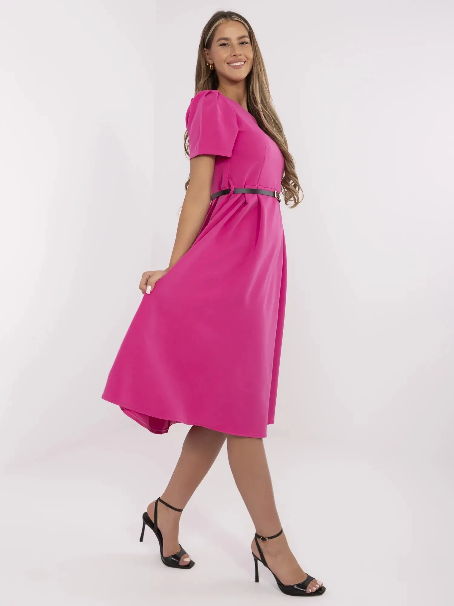 Wymiary sukienki w rozmiarze one size mierzone na płasko: szerokość pod pachami - 47 cm, szerokość w talii - 41 cm, długość rękawa - 23 cm, szerokość w biodrach - 65 cm, długość całkowita - 118 cm.