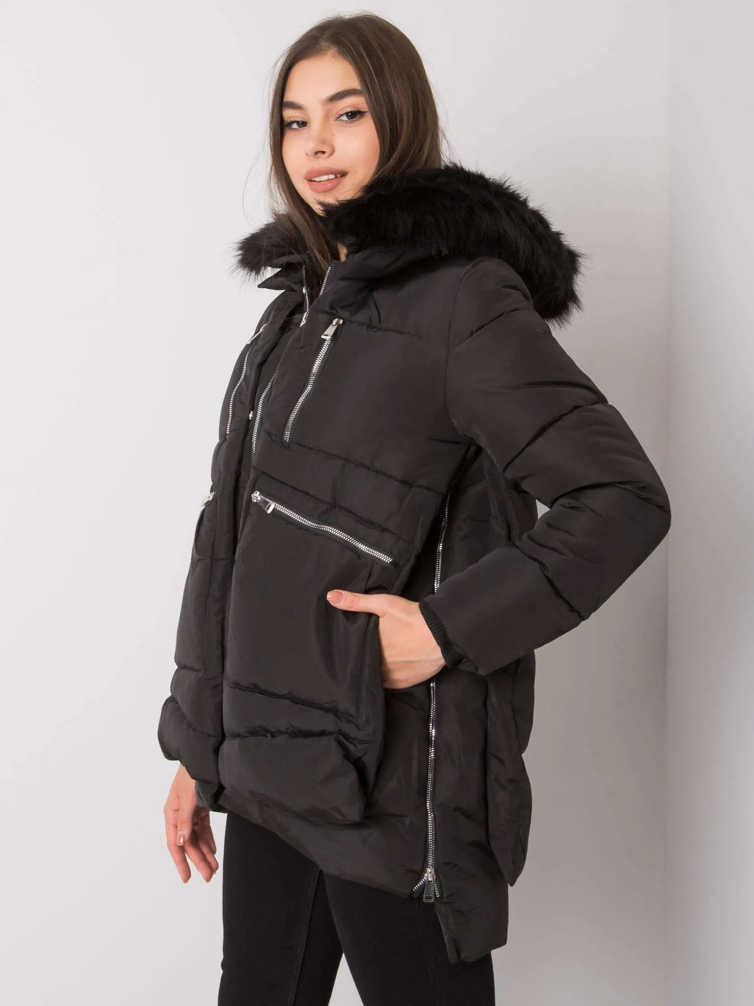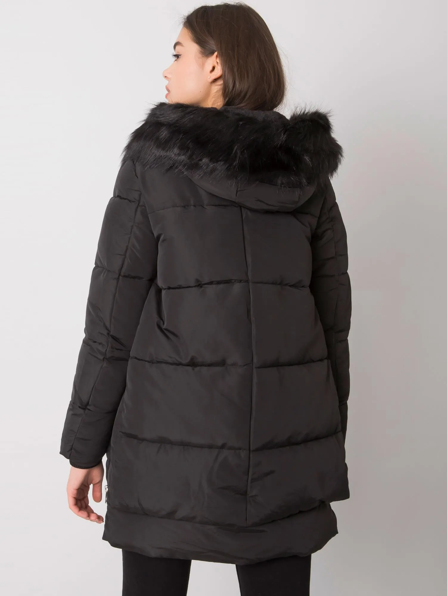 Czarna kurtka zimowa damska z kapturem.